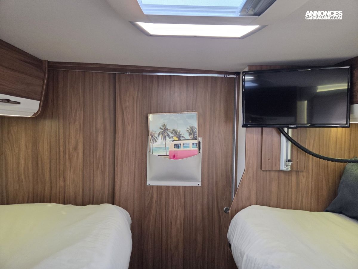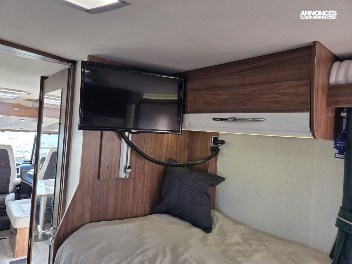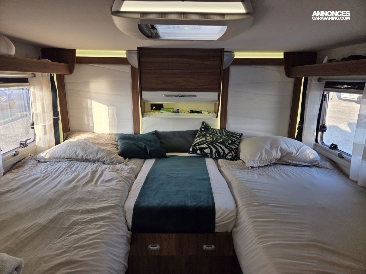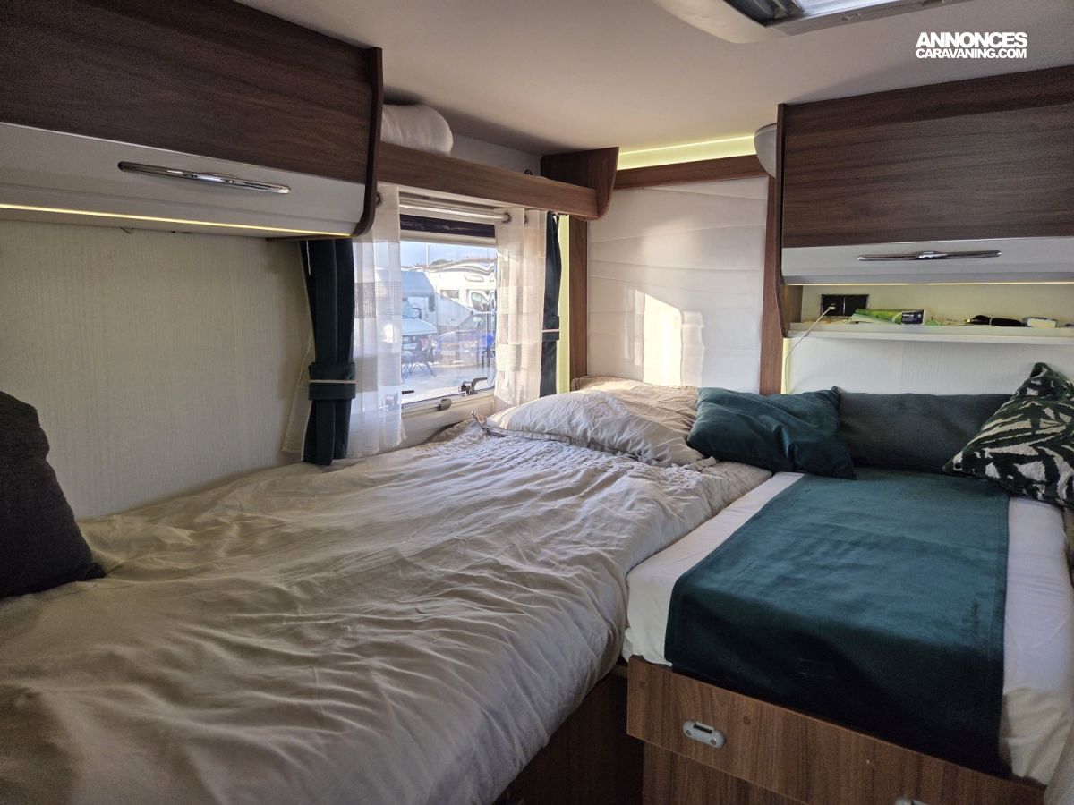 Le Pilote G741 FGJ Emotion est un intégral haut de gamme reposant sur un châssis AL‑KO robuste, basé sur un moteur Fiat 2,3 L 180 ch avec boîte automatique, offrant une conduite souple, puissante et confortable, d’autant plus appréciable avec son faible kilométrage. À l’intérieur, ce camping‑car dispose d’un salon à face convivial, parfait pour les repas ou les moments en famille, ainsi que d’un lit pavillon en complément des lits jumeaux, ce qui offre une capacité de couchage supplémentaire et modulable selon les besoins. Il est également équipé de deux télévisions 24 pouces pour le divertissement, ainsi que d’une installation énergétique performante comprenant deux panneaux solaires de 120 W et une batterie lithium de 280 Ah, garantissant une grande autonomie en voyage. Le confort thermique est assuré par un système complet combinant chauffage Alde, chauffage Truma et échangeur thermique pour une diffusion homogène et efficace de la chaleur en toutes saisons. L’ensemble est en excellent état, très bien entretenu et prêt à prendre la route sans frais à prévoir , un véhicule idéal pour des voyages confortables et sereins.