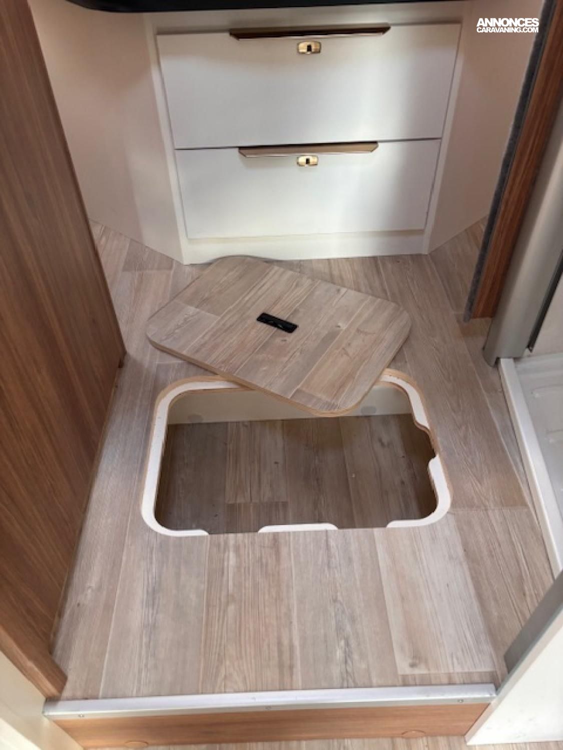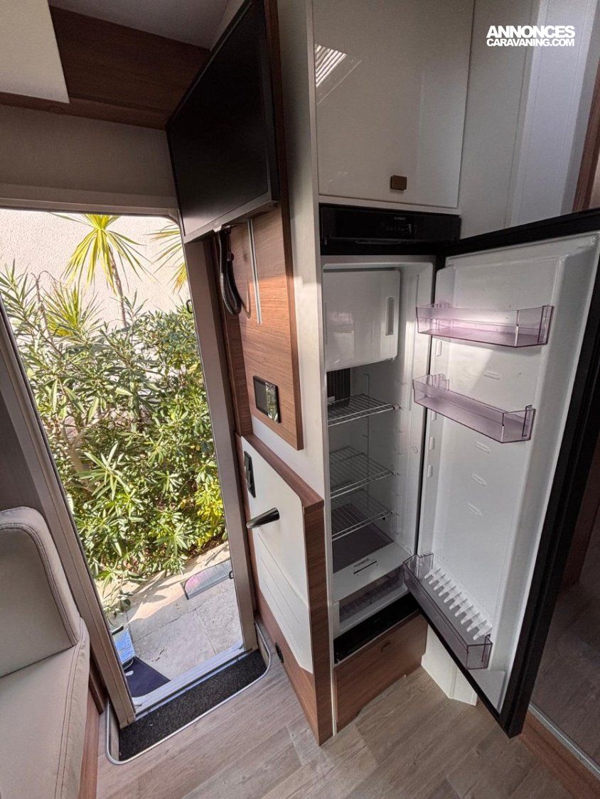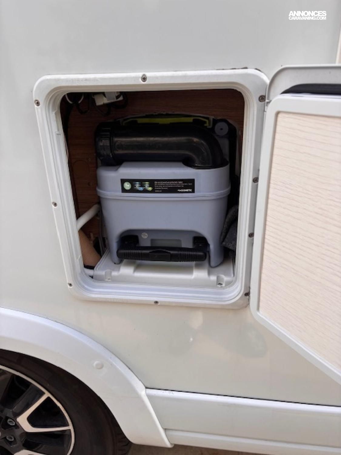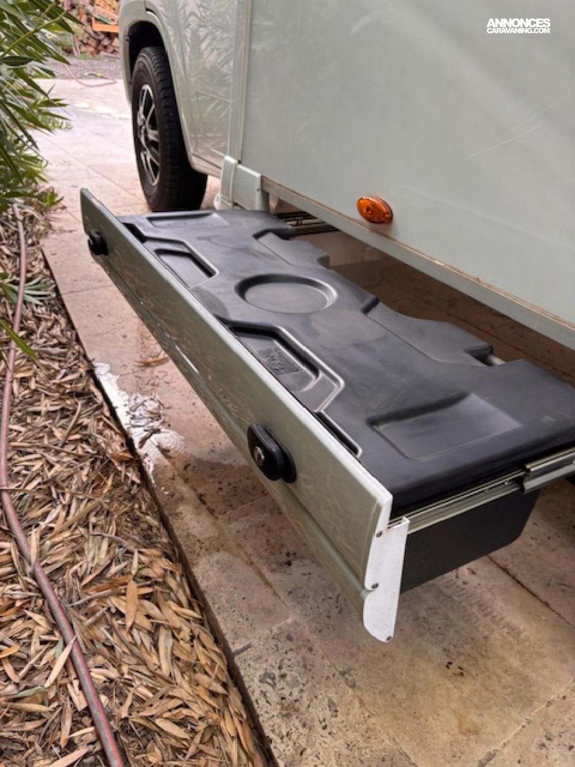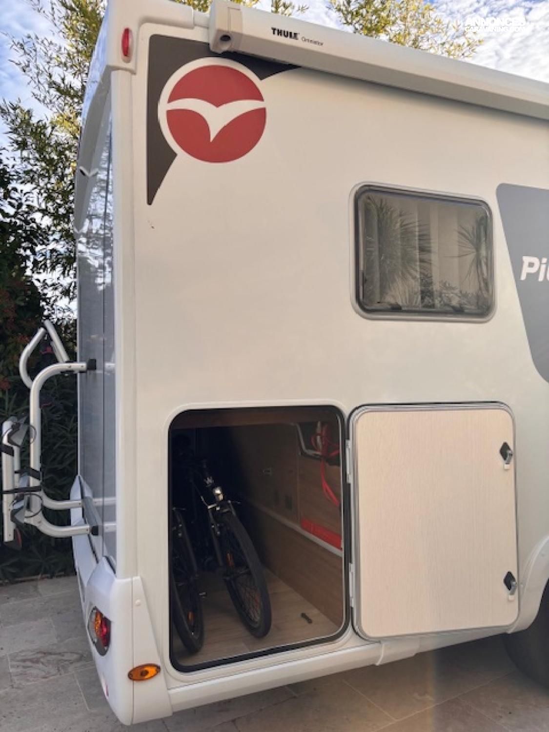 La grande soute traversante permet de stocker 2 vélo électriques pliants .