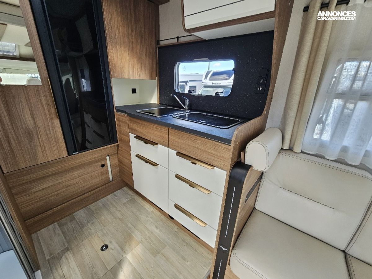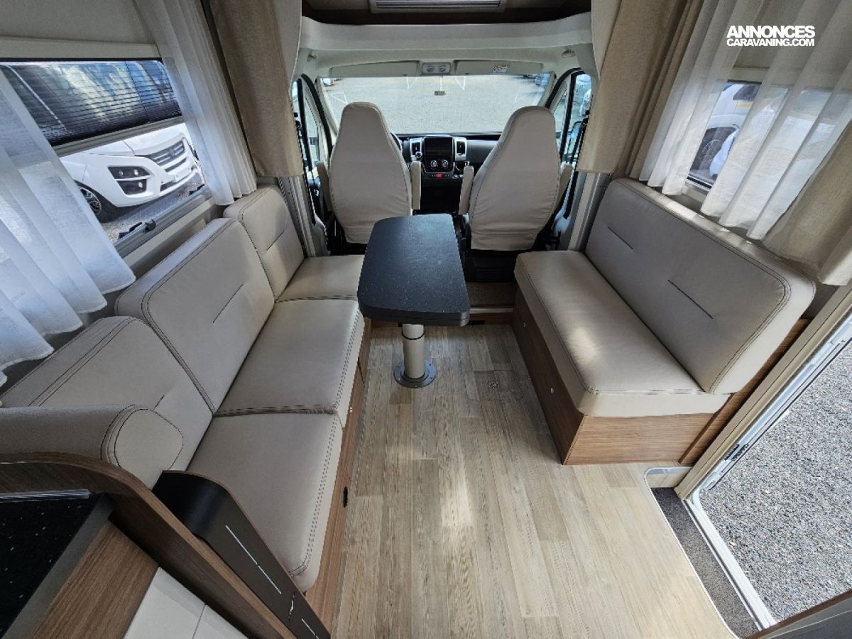 Avec seulement 6.20 m de long, le P 626 D offre tout le confort d’un grand camping-car dont un très grand salon. Un large espace intérieur, deux grandes banquettes face/face pouvant recevoir 7 personnes, une cuisine spacieuse, une salle d’eau astucieuse et son grand dressing, un grand lit de pavillon et une large soute.