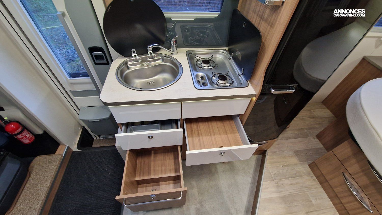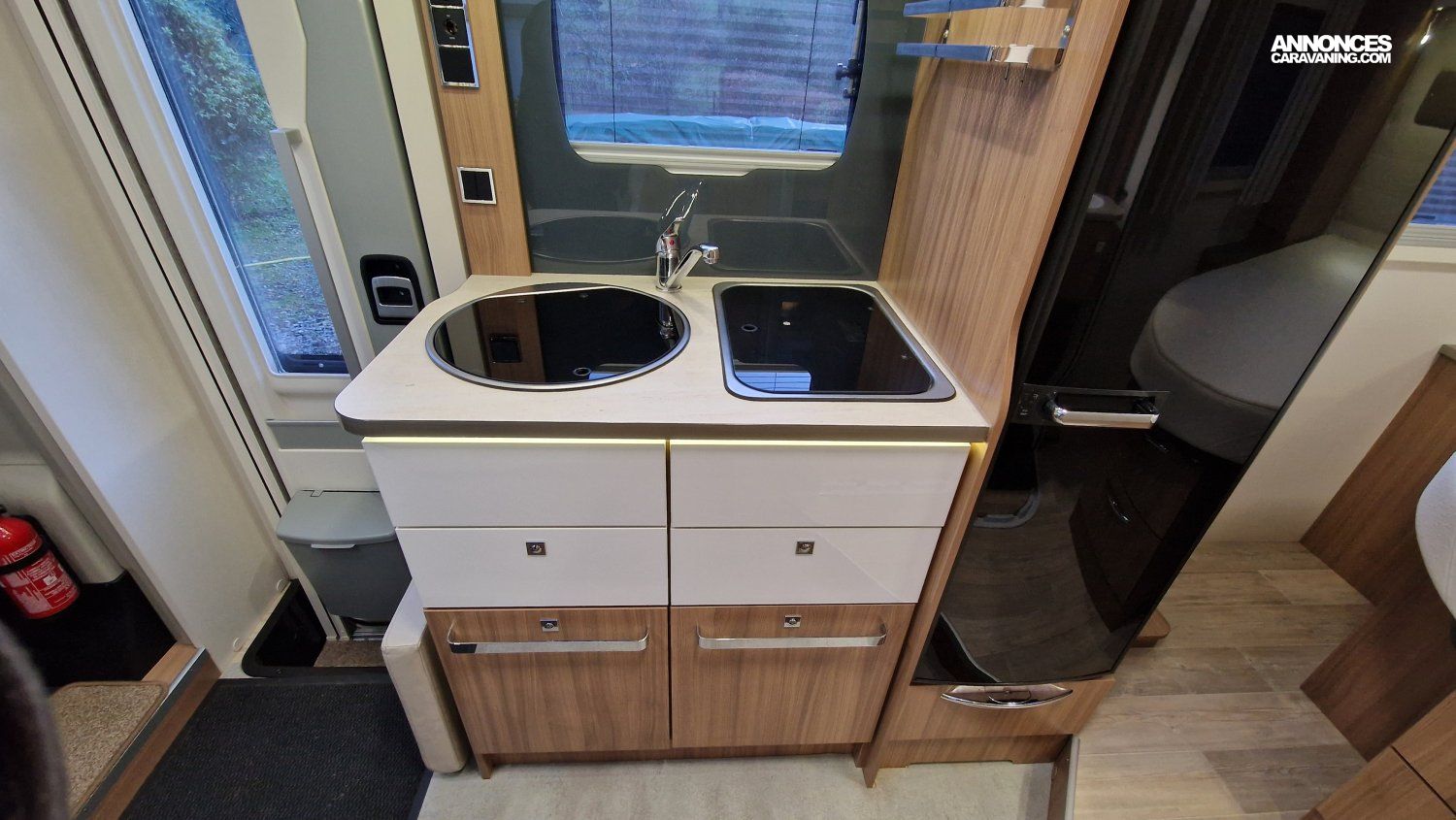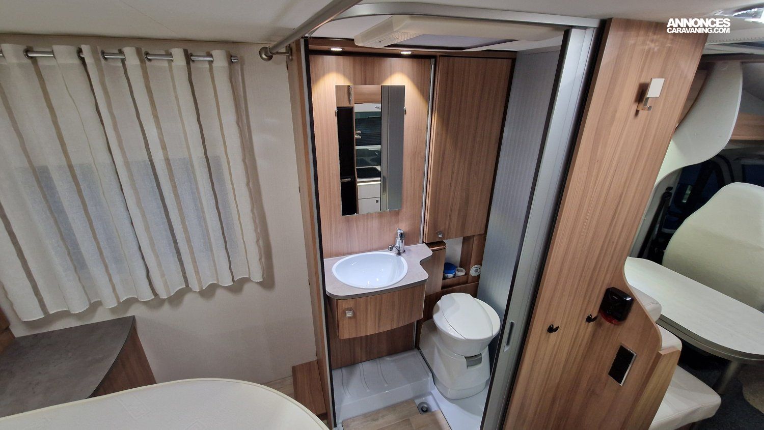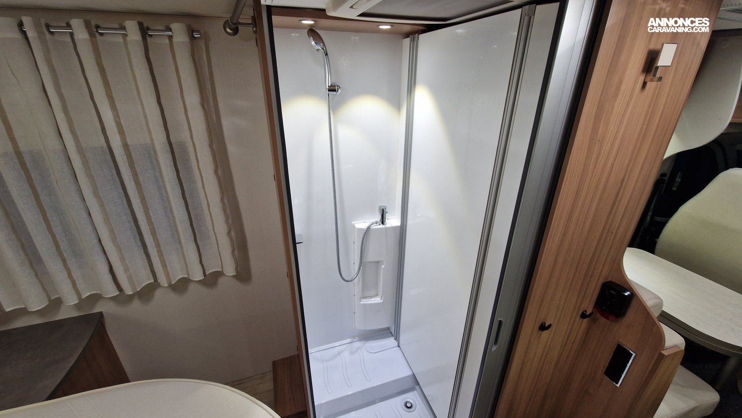 CHAUFFAGE COMBI TRUMA 4, STORE EXTERIEUR 3.5M, GAZINIERE 2 FEUX, ECLAIRAGE LED, MOQUETTE CABINE, MOUSTIQUAIRE DE PORTE CELLULE, PORTE VELO, RALLONGE DE TABLE, REFRIGERATEUR TRI MIX, STORES PLISSES DE CABINE, VOLET EXTERIEUR ISOTHERME, MARCHEPIED INTÉGRÉ, SALLE D'EAU PIVOTANTE