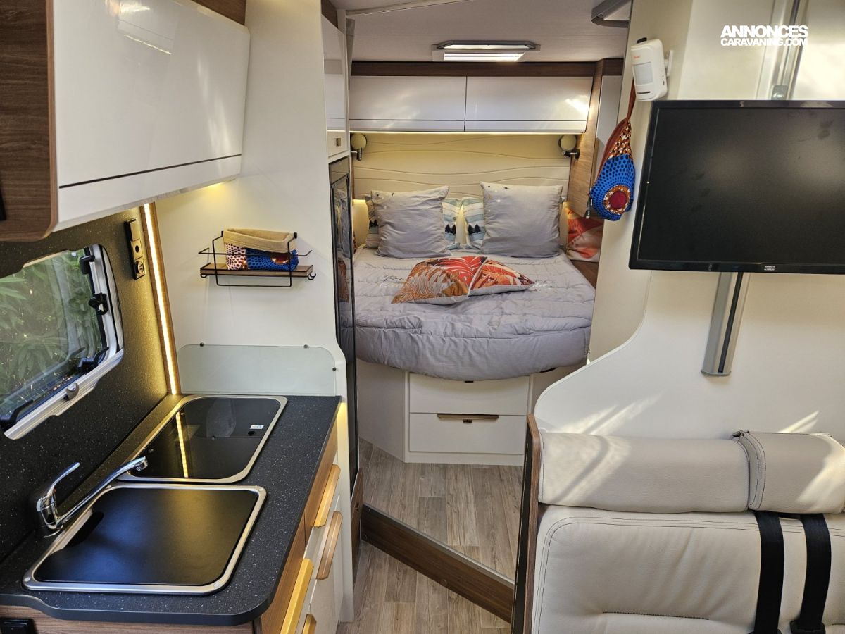CHAUFFAGE COMBI TRUMA 4, STORE EXTERIEUR 4M, GAZINIERE 2 FEUX, TIROIRS FERMETURE RALENTIE, DOUCHETTE DANS SOUTE, DOUCHE ET WC SEPARES, ECLAIRAGE LED, MOQUETTE CABINE, MOUSTIQUAIRE DE PORTE CELLULE, RALLONGE DE TABLE, REFRIGERATEUR TRI MIX, STORES PLISSES DE CABINE, SALON FACE A FACE, FREEZER, RESERVOIR EAUX USEES HORS GEL, LANTERNEAU PANORAMIQUE, SUN ROOF OUVRANT, SALLE D'EAU PIVOTANTE, DOUCHETTE EXTERIEURE EAU CHAUDE ET FROIDE, CHAUFFE-EAU GAZ