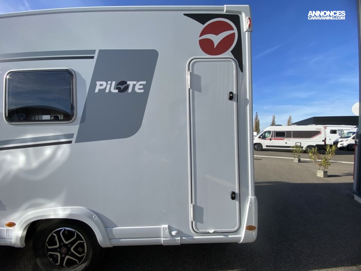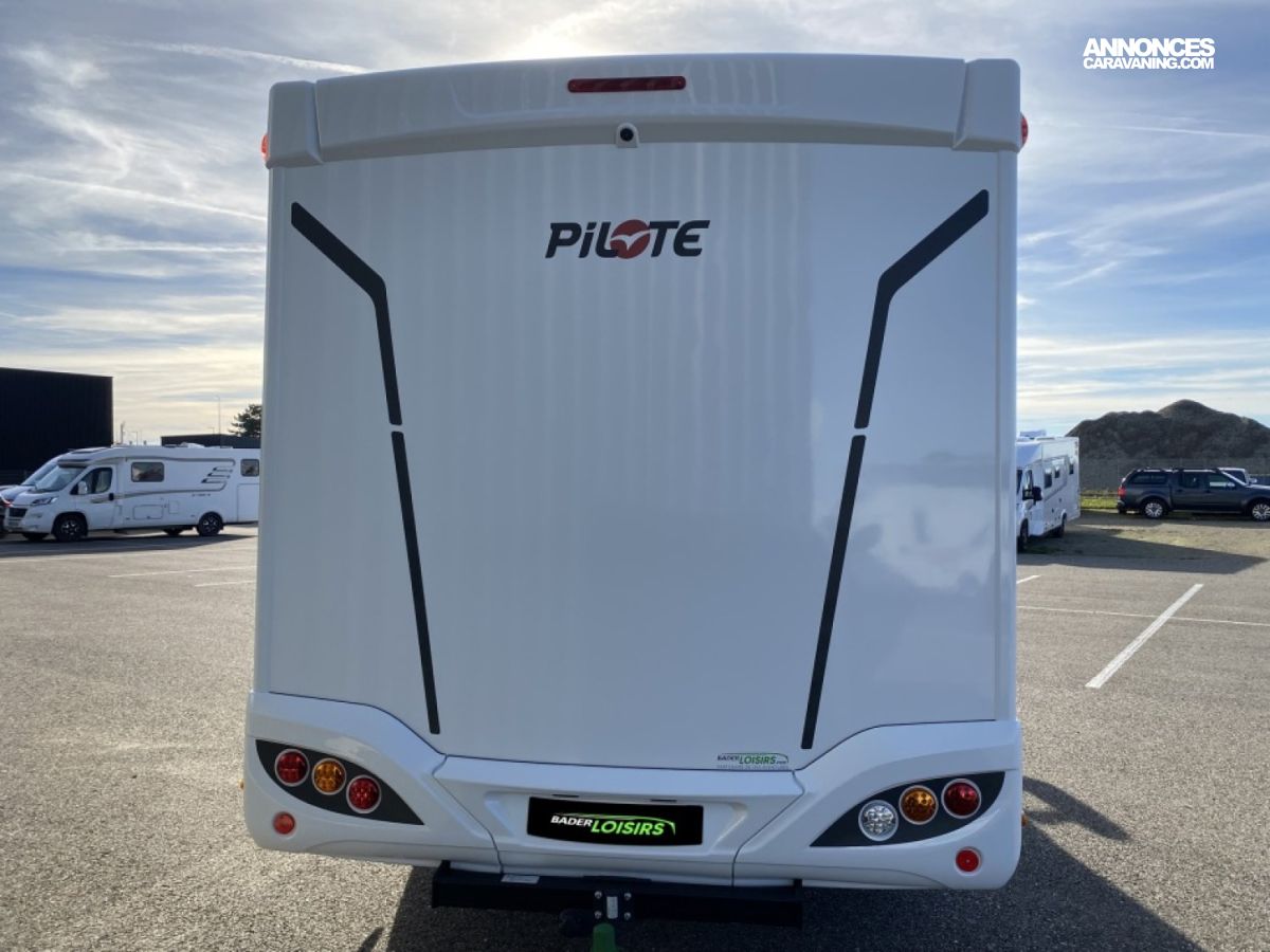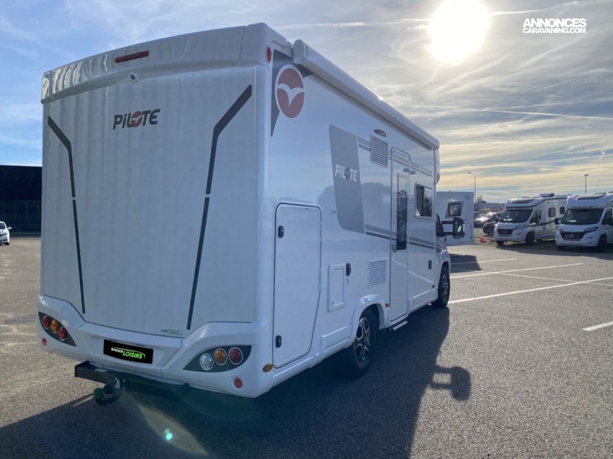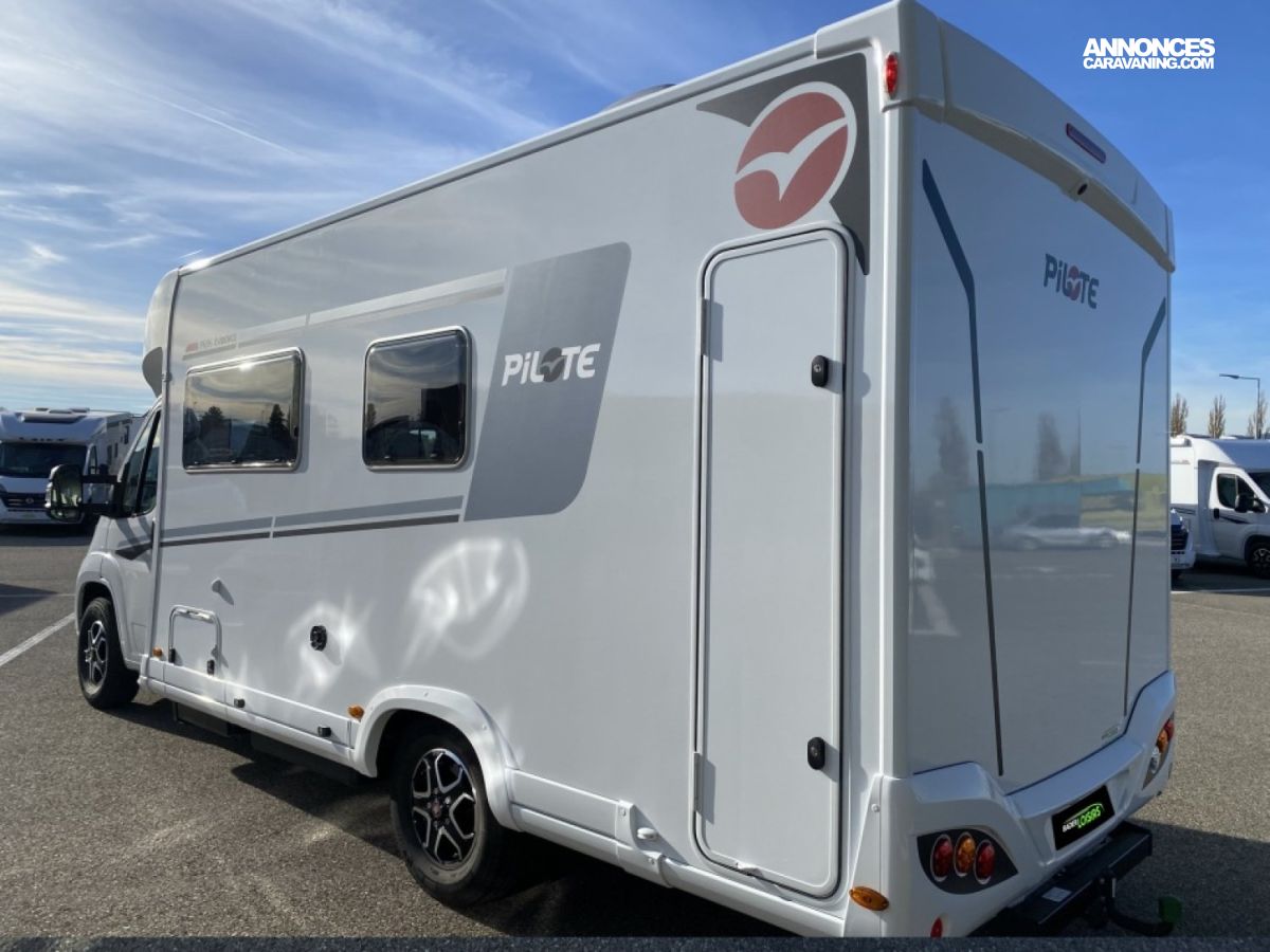 Le Pilote Profilé P696D Evidence Plus est un camping-car de 6,99 m, offrant une motorisation de 2,2L et une boîte automatique. Il dispose de 4 couchages et de nombreux équipements : chauffage Truma, réfrigérateur de 153L, store banne, jantes alliage, panneaux solaires, et climatisation cabine. Il est aussi équipé d'un lit pavillon électrique, d'une caméra de recul, et de systèmes de sécurité comme les airbags. Des options sont disponibles, comme un couchage supplémentaire et la boîte automatique.
