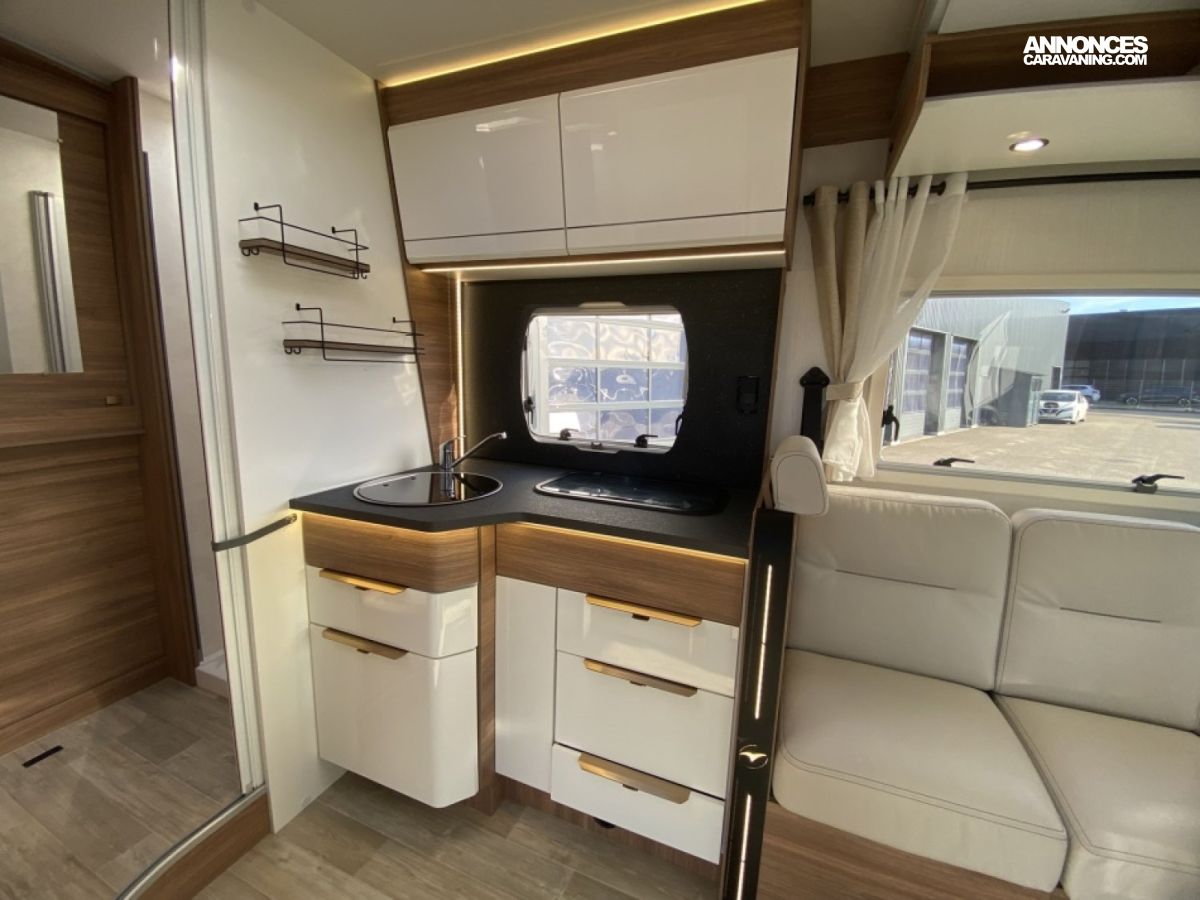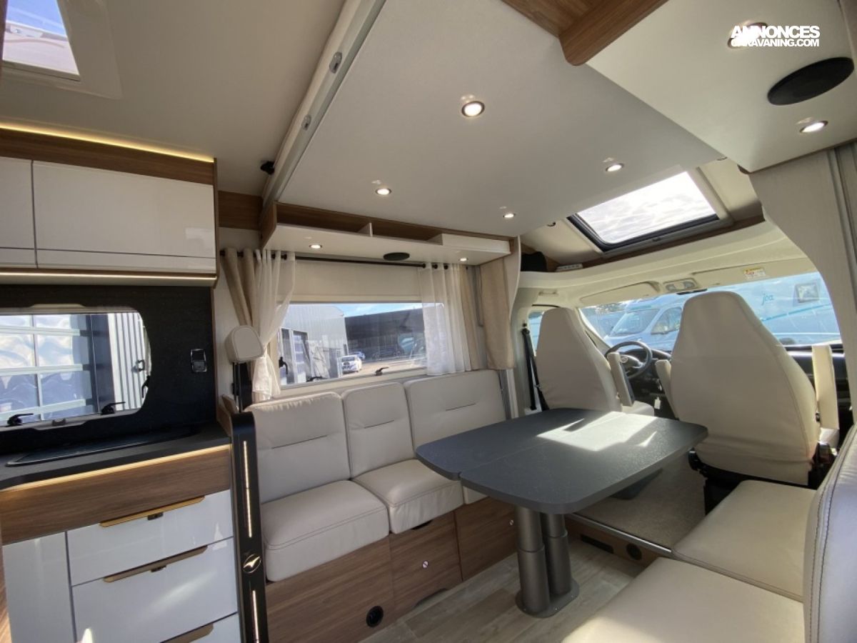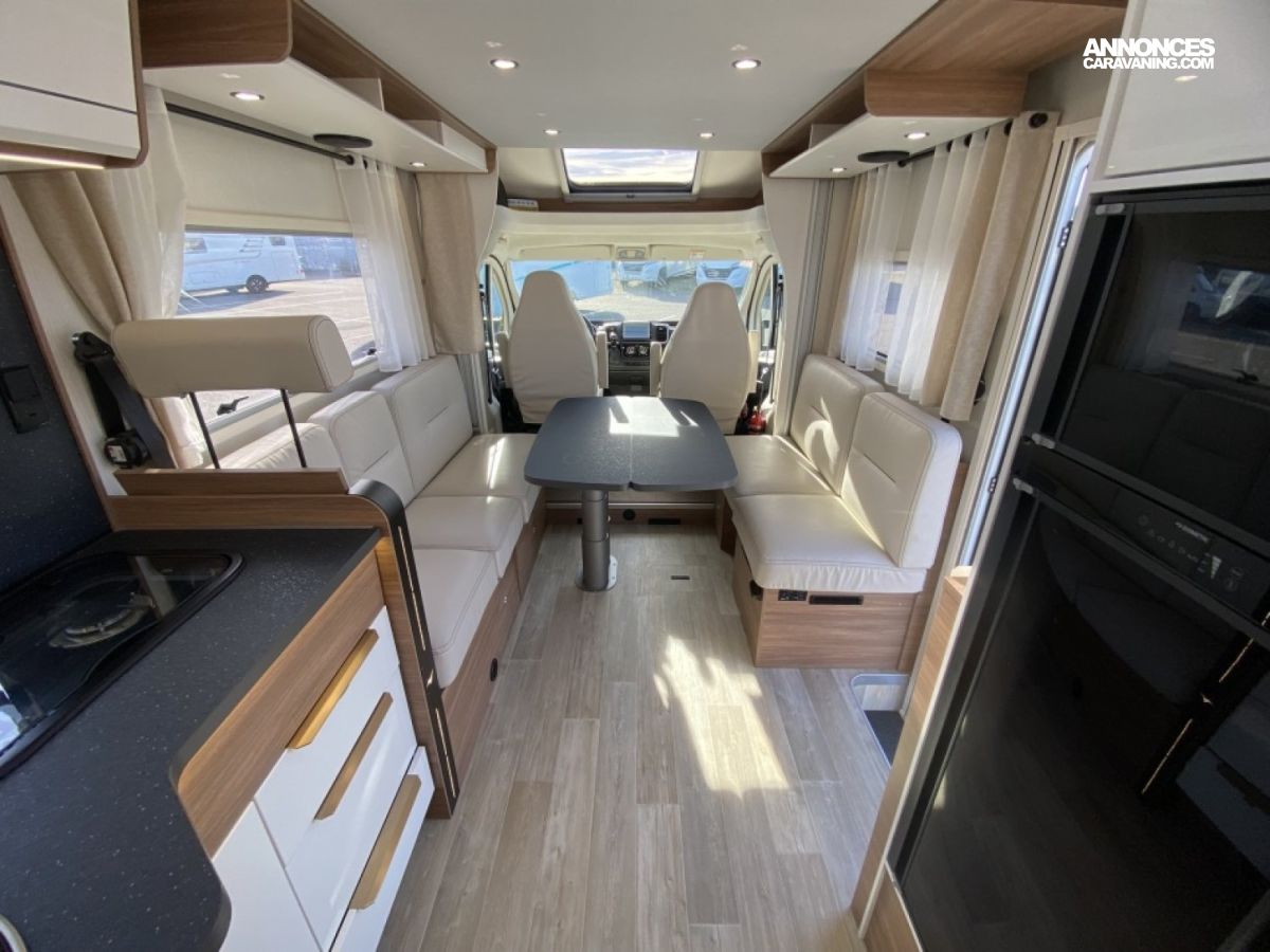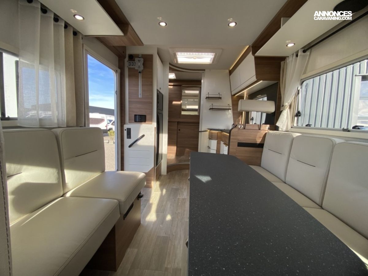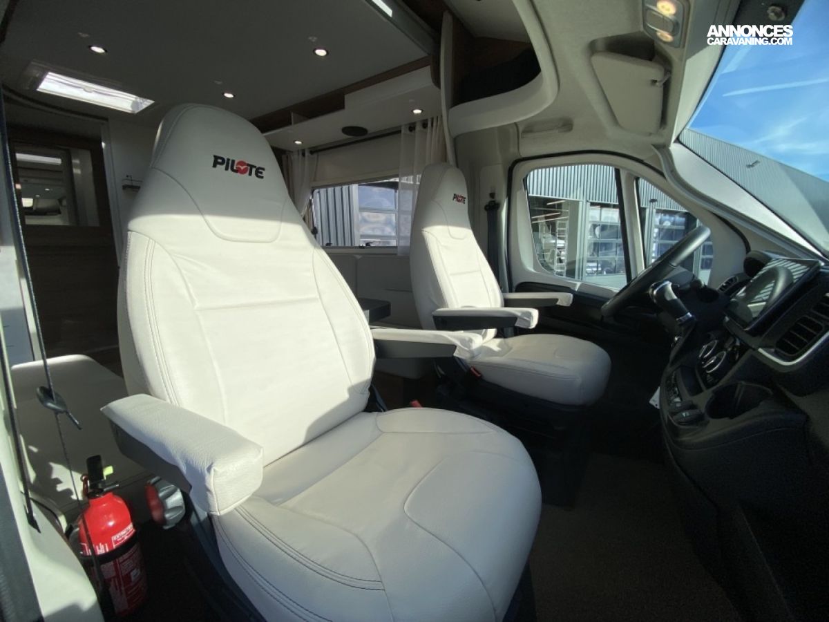 Le Pilote Profilé P696D Evidence Plus est un camping-car de 6,99 m, offrant une motorisation de 2,2L et une boîte automatique. Il dispose de 4 couchages et de nombreux équipements : chauffage Truma, réfrigérateur de 153L, store banne, jantes alliage, panneaux solaires, et climatisation cabine. Il est aussi équipé d'un lit pavillon électrique, d'une caméra de recul, et de systèmes de sécurité comme les airbags. Des options sont disponibles, comme un couchage supplémentaire et la boîte automatique.