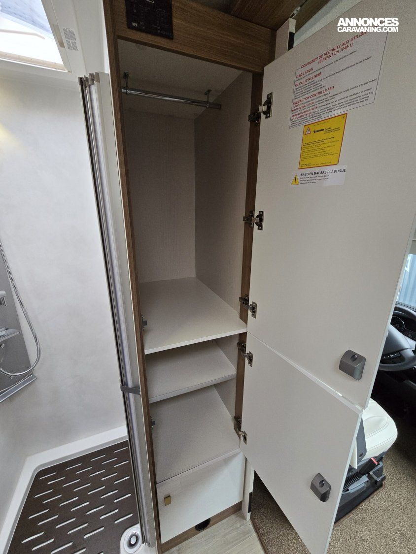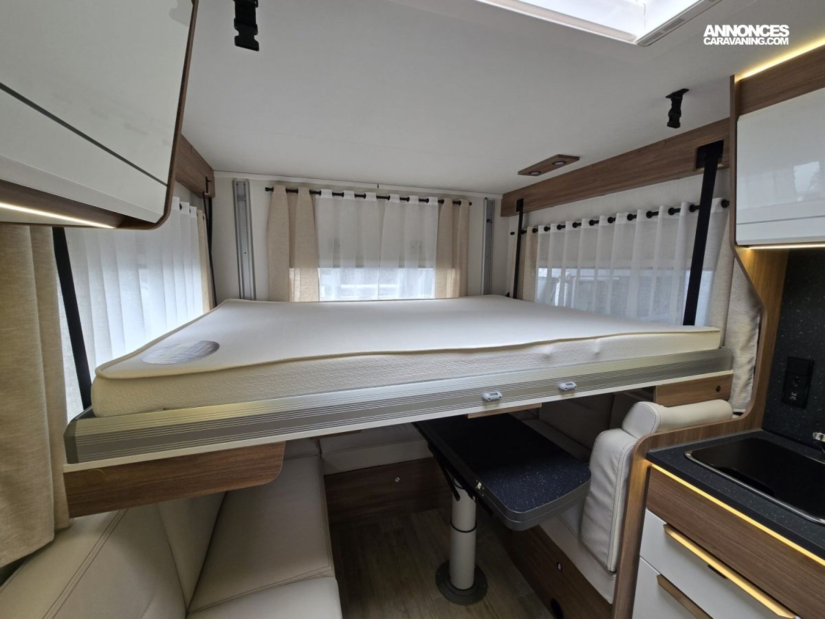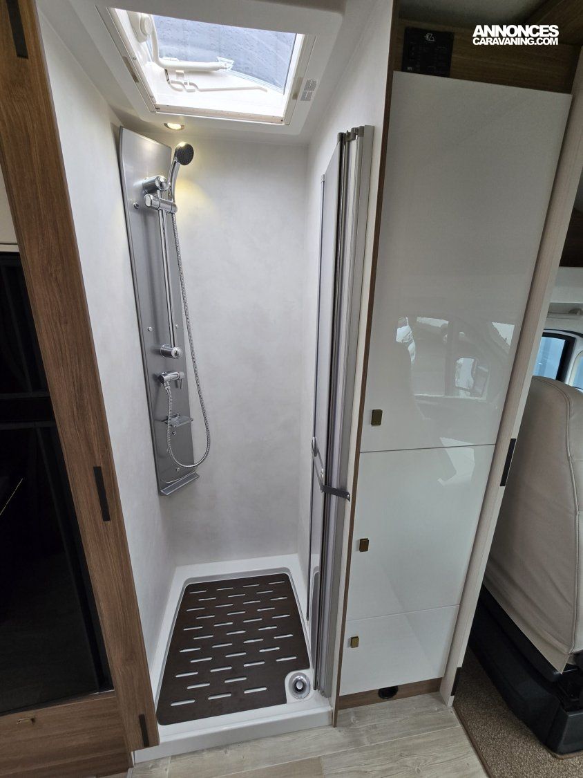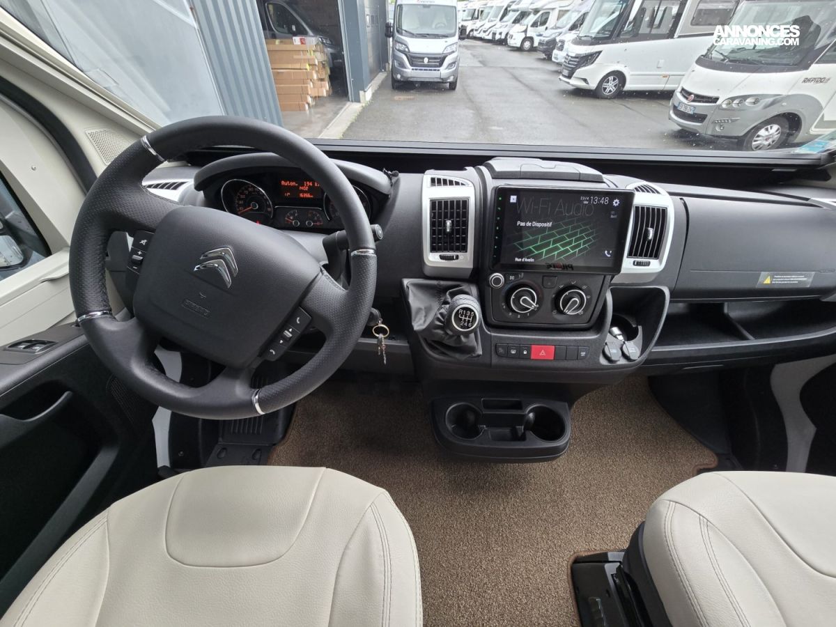 JANTES ALU 16’ – TIROIR LATERAL DE RANGEMENT – CAMERA DE RECUL – STATION MULTIMEDIA BLUETOOTH – STORE EXTERIEUR – SUSPENSIONS PNEUMATIQUES – FEUX DE JOUR A LED – VOLANT CUIR – COMMANDES AU VOLANT – STORES PLISSES CABINE – COMMANDE CP + – TV – ANTENNE SAT AUTO – DOUCHETTE EXTERIEURE – CLIMATISATION PORTEUR – REGULATEUR DE VITESSE – VERINS HYDRAULIQUES – BATTERIE LITHIUM EZA 200AH – CONVERTISSEUR 2000W PUR SINUS – ATTELAGE – PORTE VELOS ASCENSIONNEL – TAPIS CABINE – CLIMATISATION CELLULE 220V – ALARME..