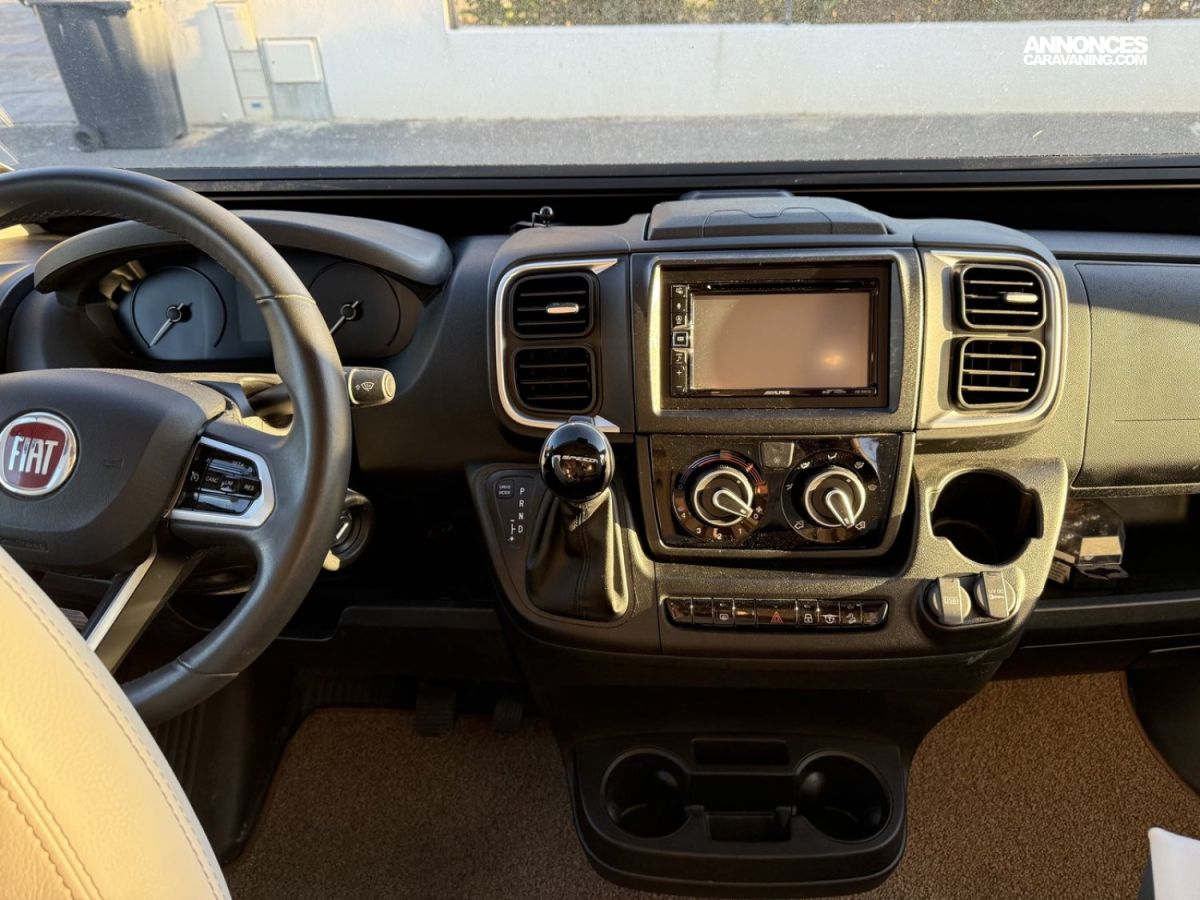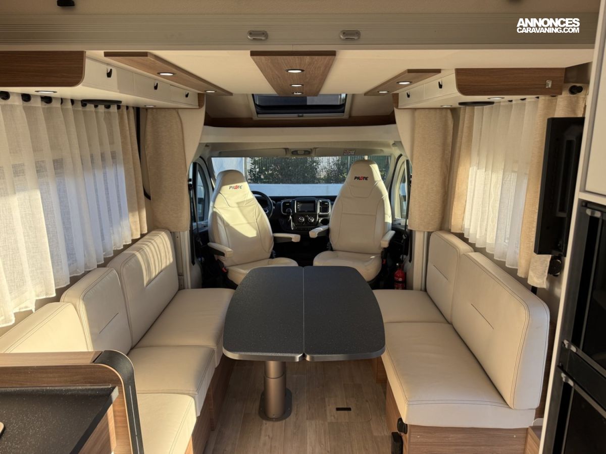 Véritable référence des profilés compacts à grand espace de vie, ce Pilote P 696 finition ÉVIDENCE de 2022 séduira les amateurs de volumes généreux dans un gabarit inférieur à 7 mètres. Motorisé par le Fiat Ducato 2.2L 140 CH associé à la boîte automatique 9 rapports, il offre une conduite fluide, moderne et particulièrement agréable sur longues distances.