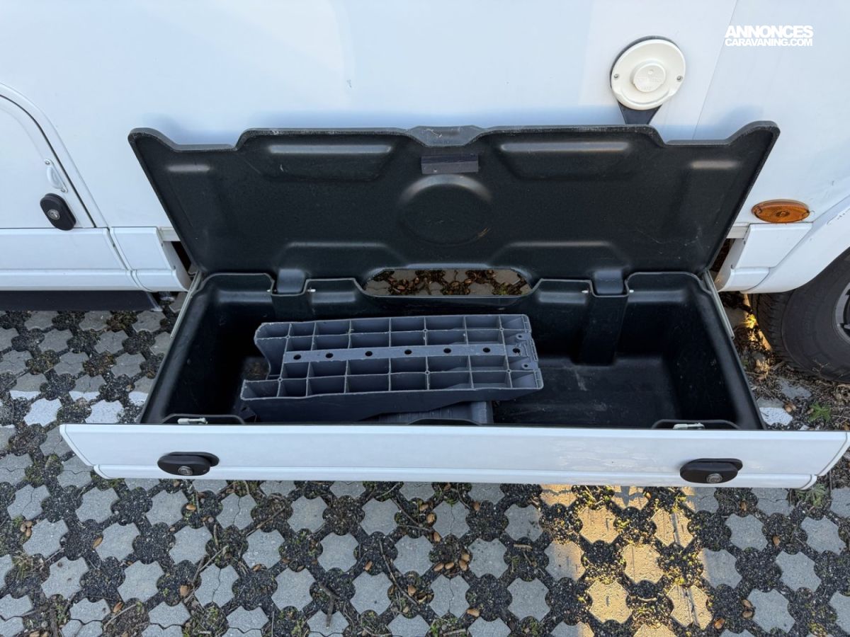 Avec ses 6,99 m de longueur, ce P696 offre un excellent compromis entre maniabilité et espace intérieur. Son comportement routier est renforcé par les suspensions pneumatiques, qui améliorent nettement le confort et la stabilité, notamment en charge ou sur longs trajets. L’attelage ajoute une vraie polyvalence (remorque, porte-moto, etc.), et l’ensemble des équipements présents en fait un véhicule réellement prêt à voyager immédiatement.