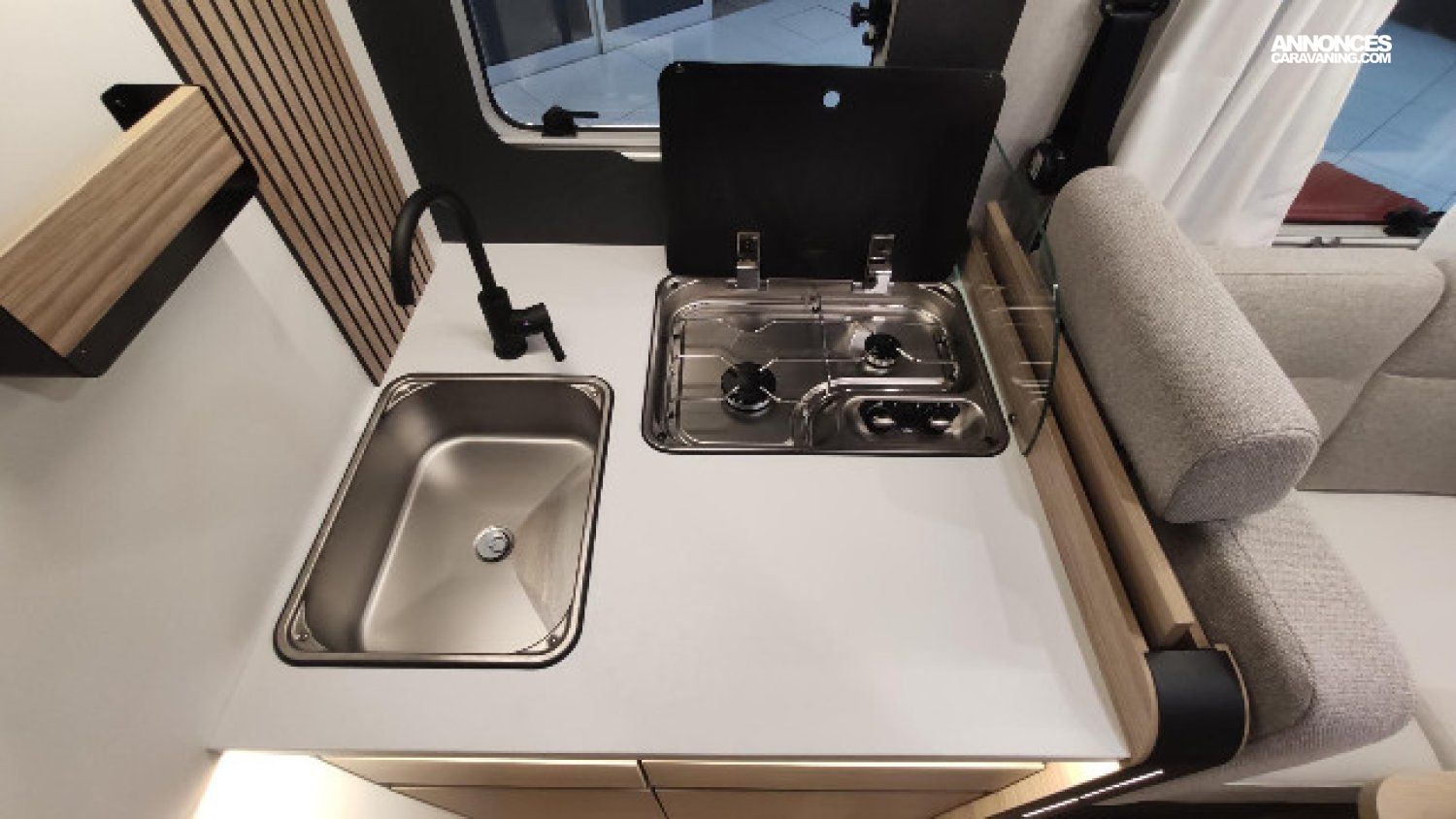 DOUCHE EXTERIEURE, LIT PAVILLON, REFRIGERATEUR A COMPRESSION, RESERVOIR CARBURANT 90L, STORE BANNE, TIROIR BAS DE CAISSE, TRUMA COMBI DIESEL 6E