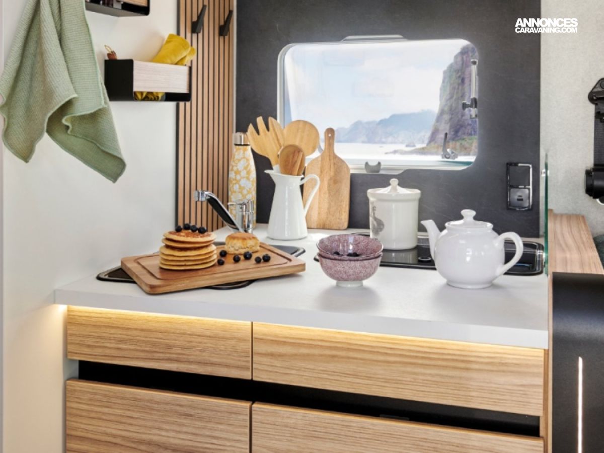 PACK GRAND CONFORT : ECLAIRAGE+PRISE 230+RAIL SOUTE DOUCHE EXTERIEURE INVERSEUR GAZ CHAUFF ROULANT RESER. EAU USEES ISOLE CHAUFFE TIROIR BAS DE CAISSE STORE BANNE CAILLEBOTIS DANS DOUCHE