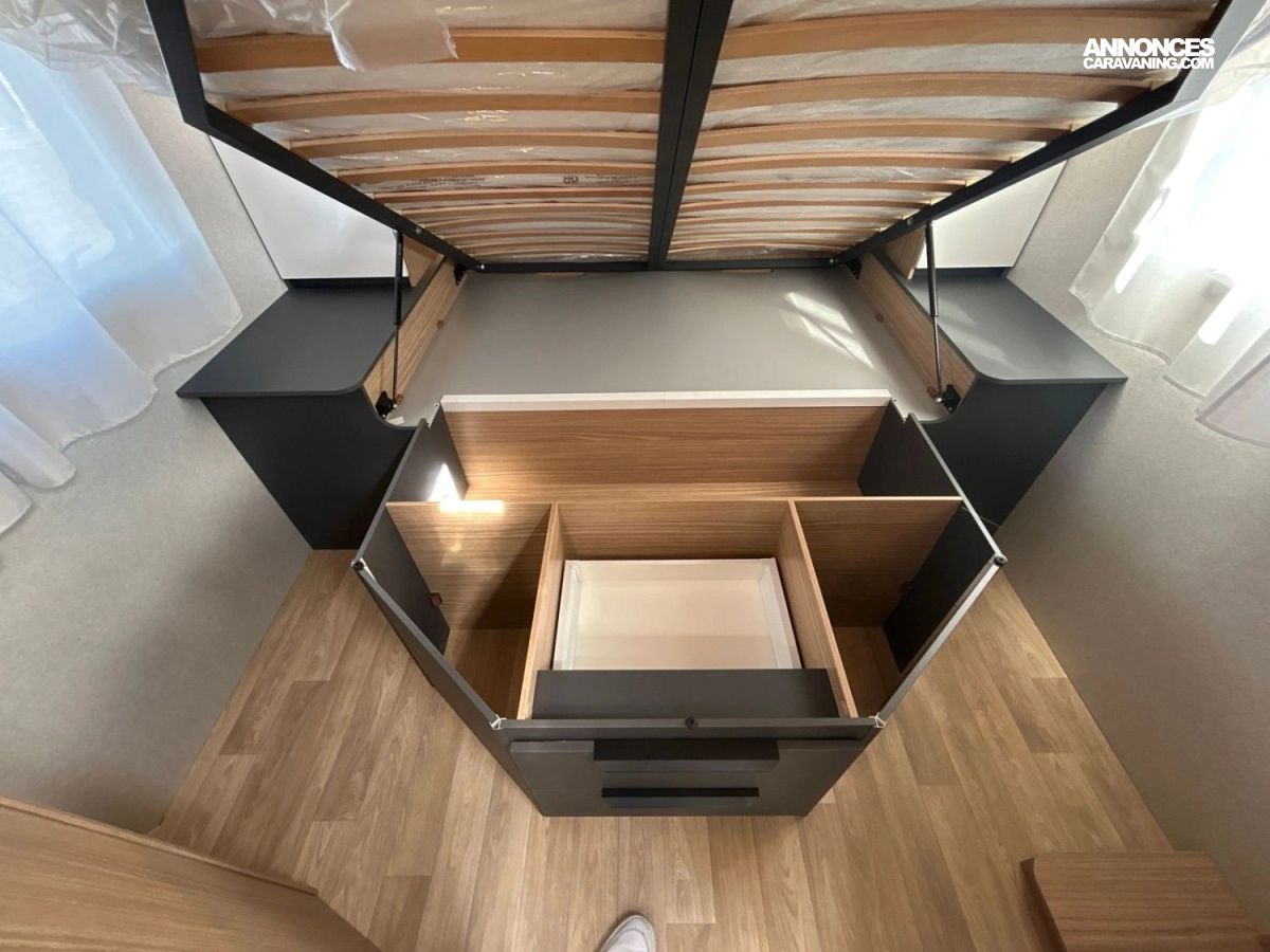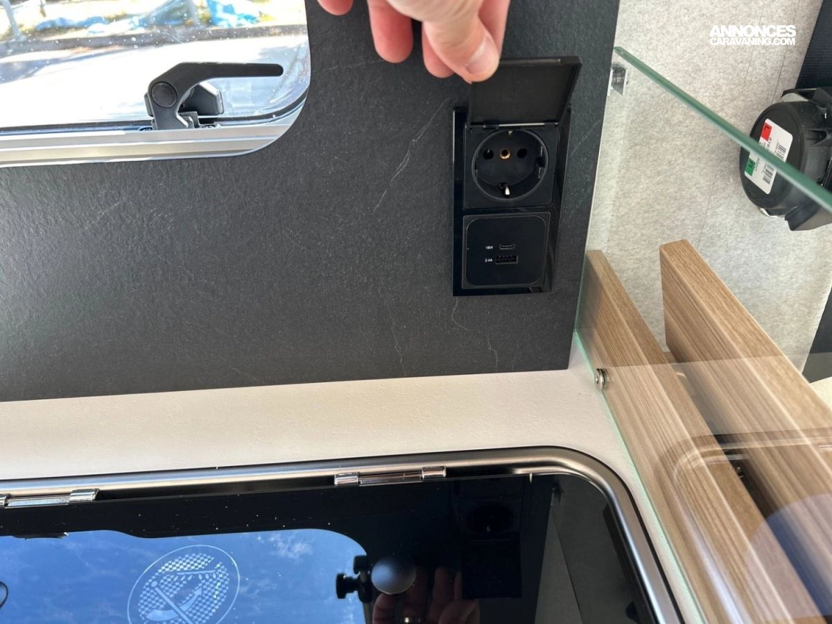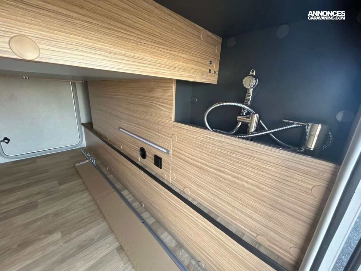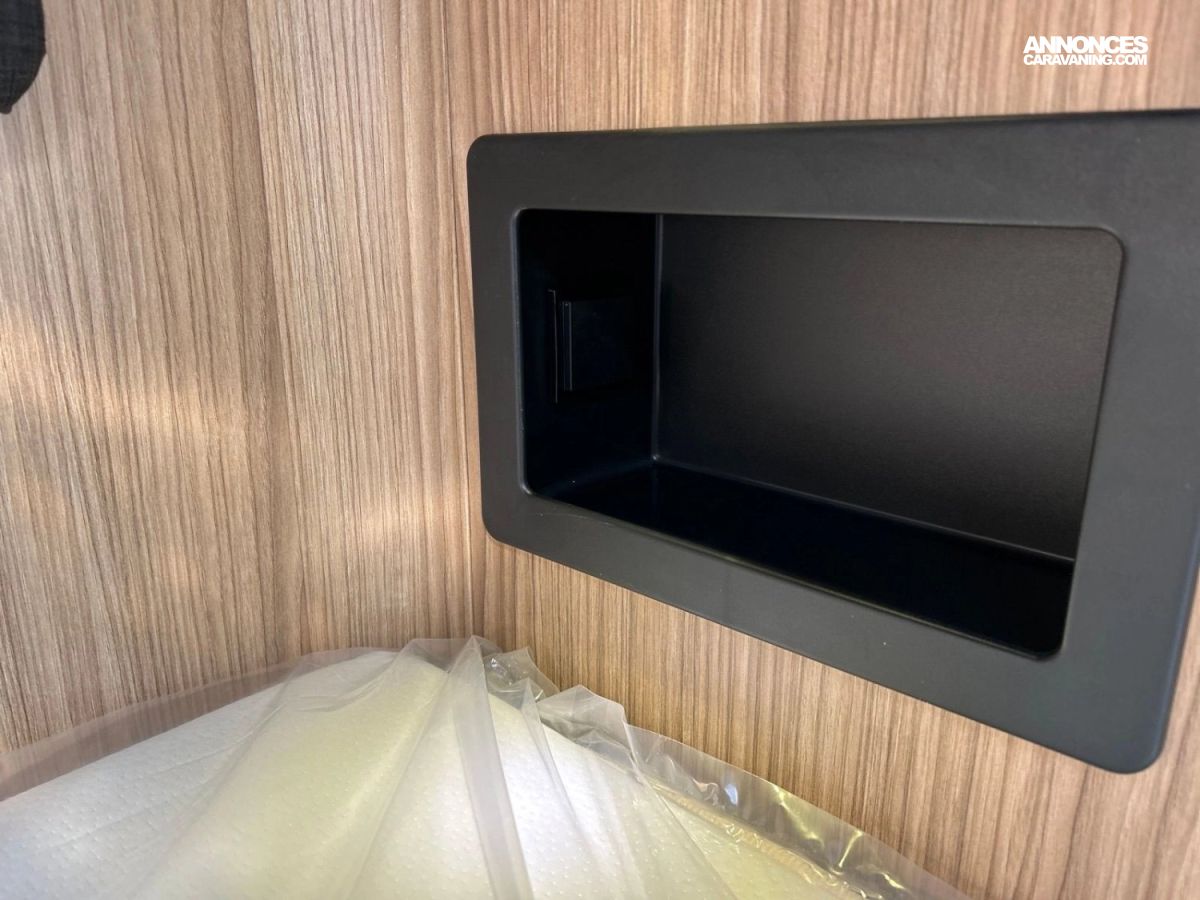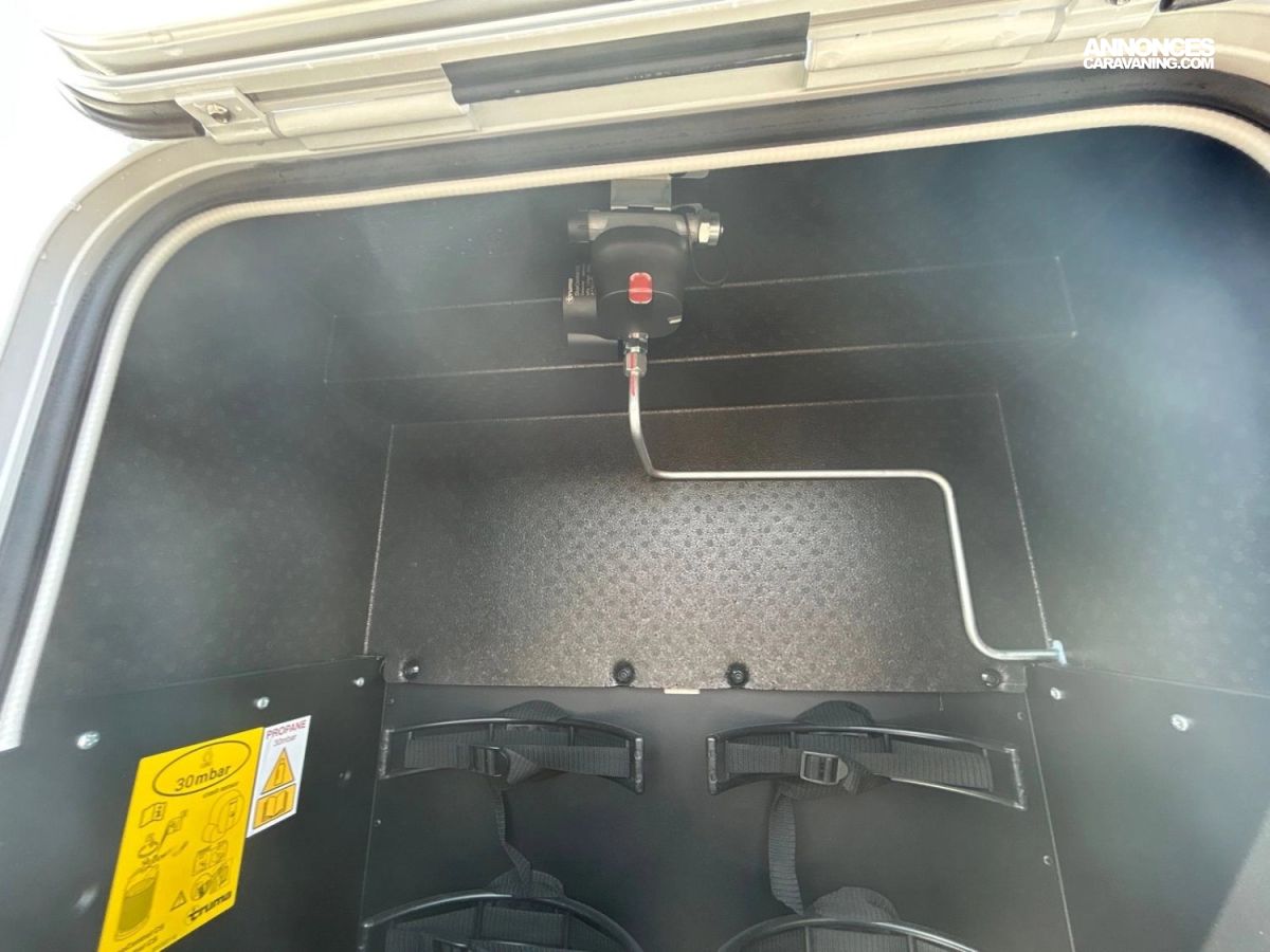 - PACK GRAND CONFORT: Réservoir des eaux usées hors-gel, éclairage + rails et prise 230V en soute, douchette eau froide/chaude dans la soute, store banne, caillebotis, tiroir de bas de caisse, détendeur / inverseur automatique - Crash Sensor Truma
