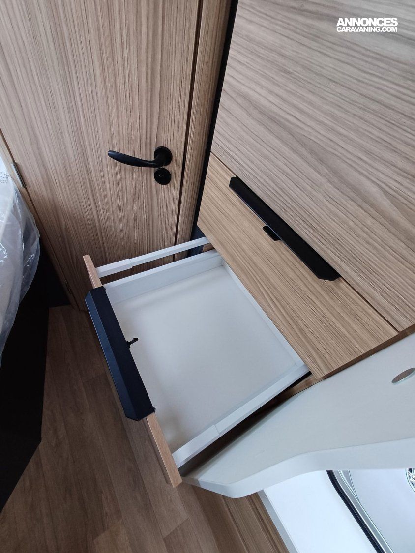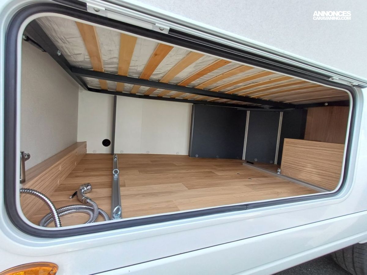 - Pack Grand Confort: Réservoir des eaux usées hors-gel, Éclairage, rails et prise 230 V en soute, Douchette eau froide/chaude dans la soute, Store banne, Caillebotis,Tiroir bas de caisse(Cellules), Détendeur/inverseur automatique, Crash Sensor TRUMA®.
