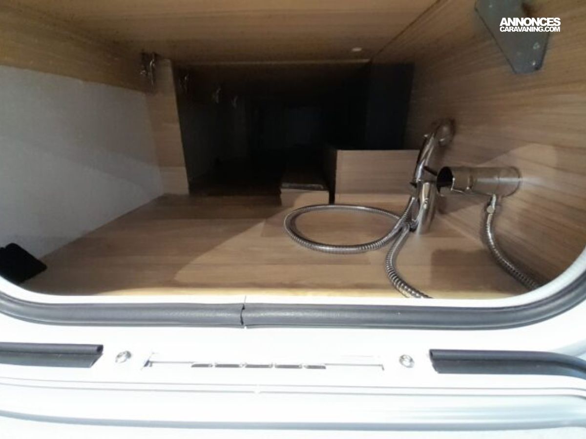 - Pack Grand Confort : Réservoir d’eaux usées isolé hors gel, éclairage, rails d’arrimage et prise 230 v en soute, Douchette eau chaude / eau froide en soute, Store banne, Caillebotis en douche, Tiroir bas de caisse, Détendeur / inverseur gaz auto – Crash Sensor TRUMA