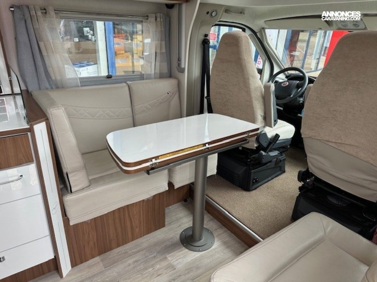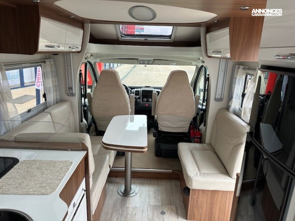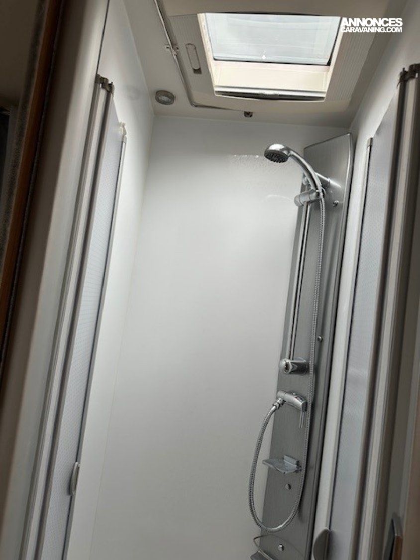 Airbag conducteur, Toit ouvrant panoramique en 620x420, Rétroviseurs électriques et dégivrants, Hotte aspirante, Pavillon polyester anti-grêle, CAMERA DE RECUL, Salon avec banquette en L, STORE EXTERIEUR, Lit pavillon électrique, Bac rangement soute, Rail arrimage soute, Détendeur/inverseur automatique-Crash Sensor TRUMA, Eclairage soute, PORTE VELOS 3 RAILS, DOUCHETTE EXTERIEURE, Eclairage exterieur à Led, Caillebotis, TV + PARABOLE, Pré-cablage panneau solaire/antenne sat auto, HOTTE, ABS, Tiroir bas de caisse, Pré-équipement radio, Combi 6 Truma, PANNEAU SOLAIRE, Rangement et éclairage chevet, SECURITE SERRURES PORTES, Climatisation cabine, Moquette cabine, Prise 220v en soute