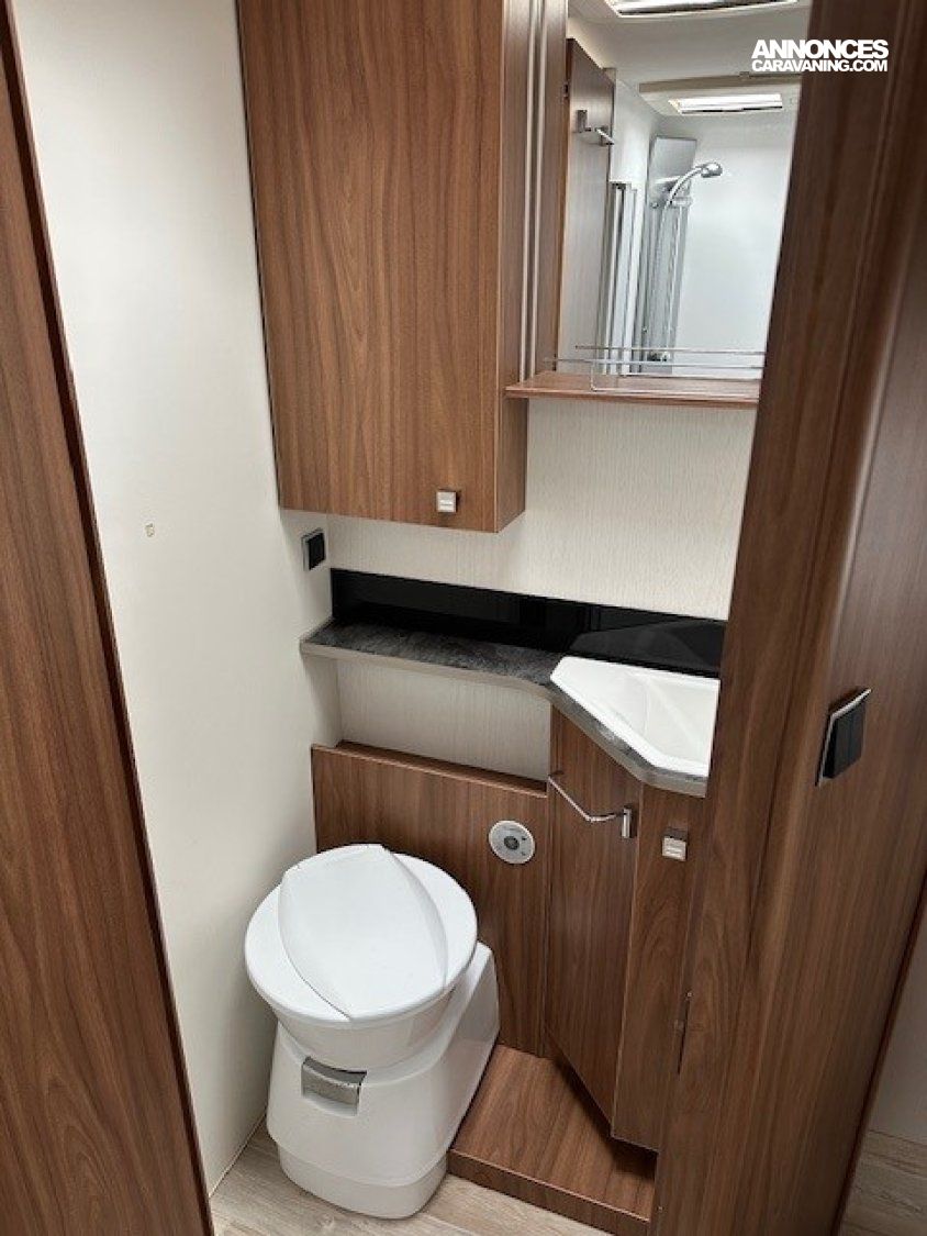 Combi 6 Truma, DOUCHETTE EXTERIEURE, Pré-cablage panneau solaire/antenne sat auto, Pré-équipement radio, Rangement et éclairage chevet, Prise 220v en soute, Salon avec banquette en L, TV + PARABOLE, Eclairage exterieur à Led, Moquette cabine, PANNEAU SOLAIRE, Eclairage soute, HOTTE, Hotte aspirante, Lit pavillon électrique, Rétroviseurs électriques et dégivrants, Pavillon polyester anti-grêle, ABS, Airbag conducteur, Bac rangement soute, CAMERA DE RECUL, Caillebotis, Climatisation cabine, Tiroir bas de caisse, Toit ouvrant panoramique en 620x420, Rail arrimage soute, STORE EXTERIEUR, SECURITE SERRURES PORTES, Détendeur/inverseur automatique-Crash Sensor TRUMA, PORTE VELOS 3 RAILS