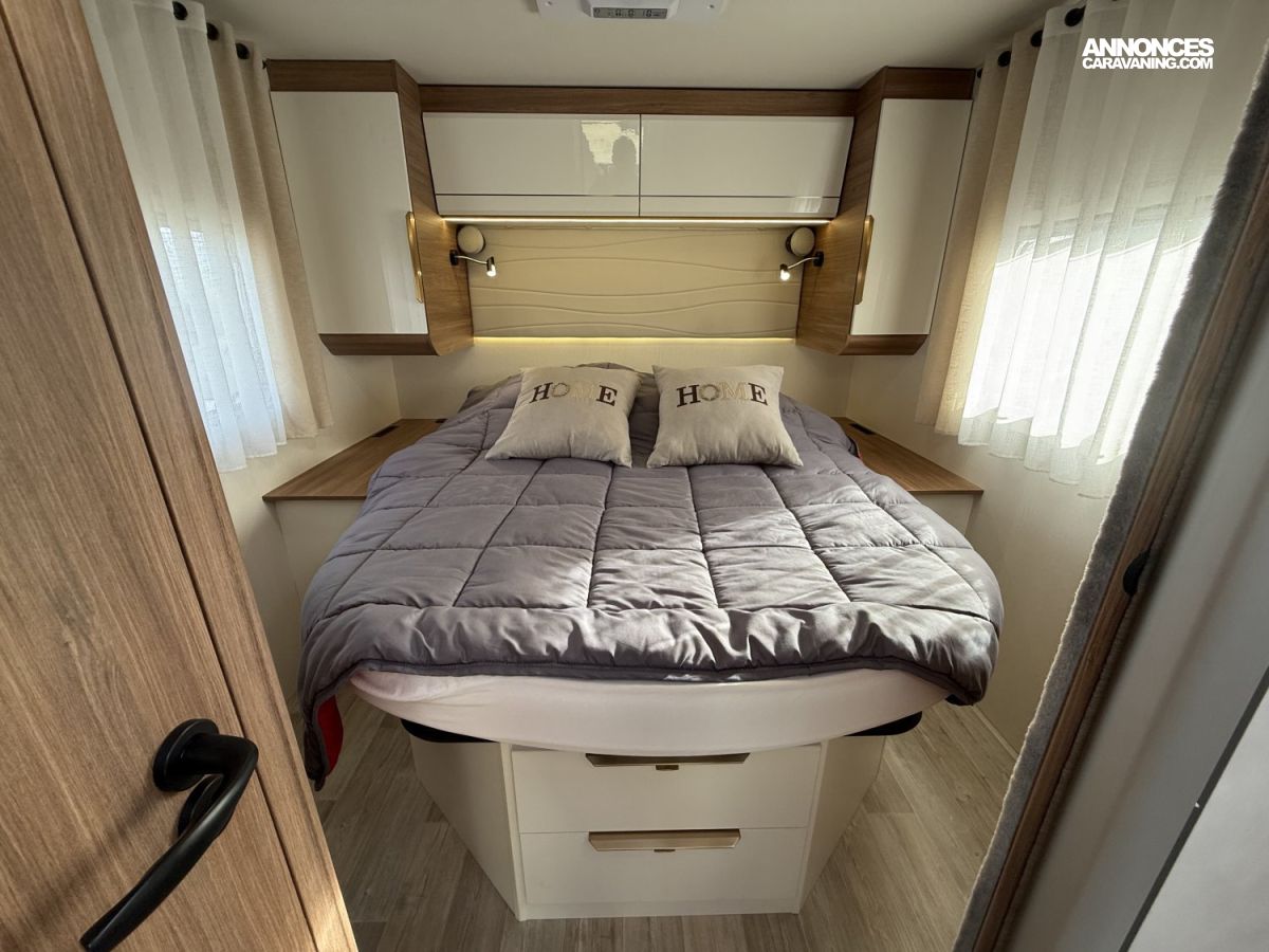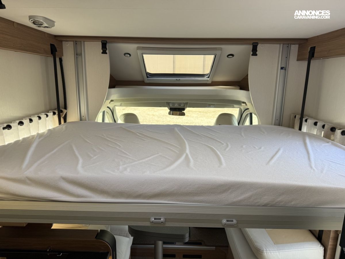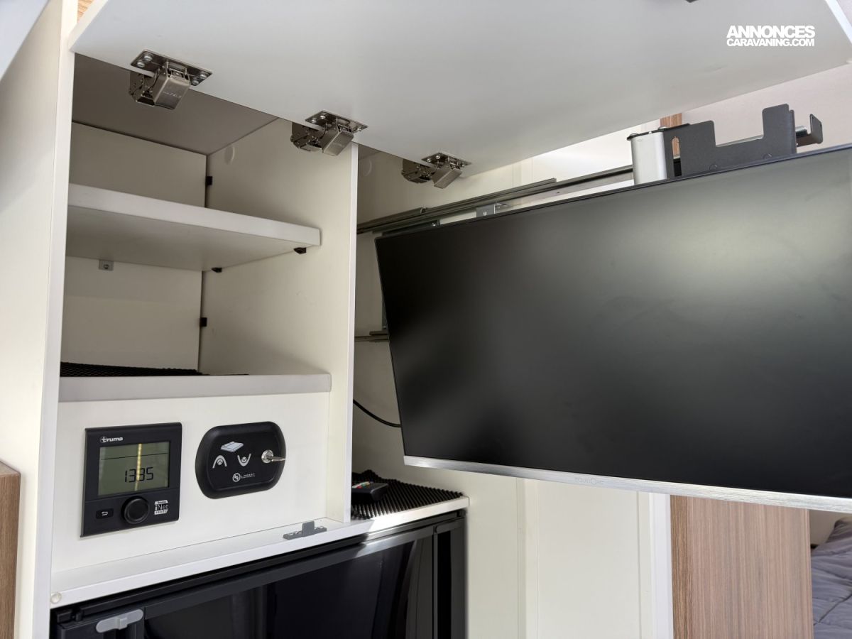 Conçu pour voyager en toute sérénité toute l’année, ce modèle bénéficie de la structure Pilote ISOTEK, d’une isolation renforcée, d’un chauffage Truma 6, de réservoirs protégés hors-gel et d’un ensemble énergétique complet. Il est doté de jantes aluminium 16’’, de suspensions pneumatiques, du système Traction + d’un rafraîchisseur d’air, d’un tiroir bas de caisse, d’un store extérieur de 4,50 m, de 2 TV connectées…