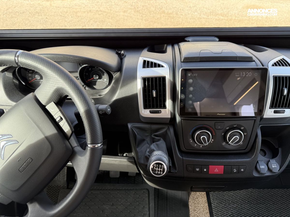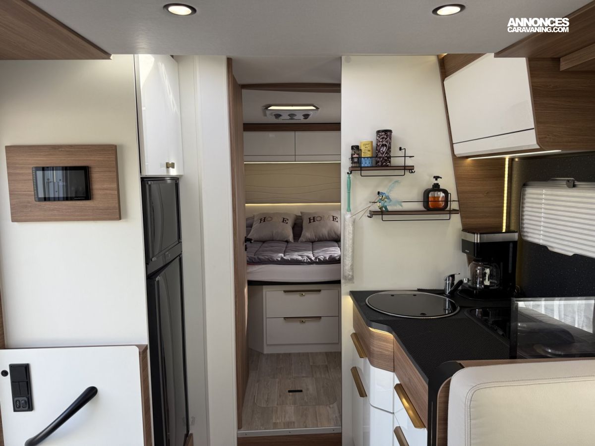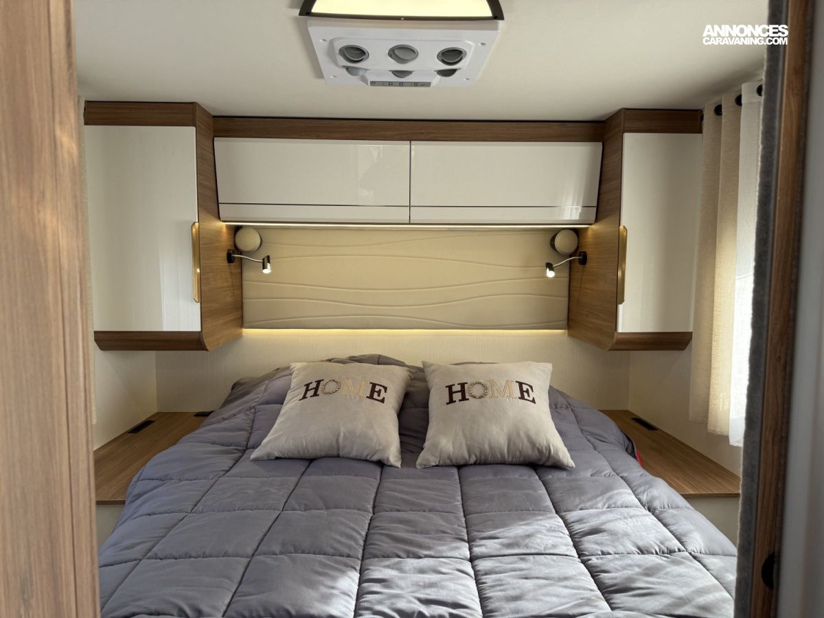 Conçu pour voyager en toute sérénité toute l’année, ce modèle bénéficie de la structure Pilote ISOTEK, d’une isolation renforcée, d’un chauffage Truma 6, de réservoirs protégés hors-gel et d’un ensemble énergétique complet. Il est doté de jantes aluminium 16’’, de suspensions pneumatiques, du système Traction + d’un rafraîchisseur d’air, d’un tiroir bas de caisse, d’un store extérieur de 4,50 m, de 2 TV connectées…