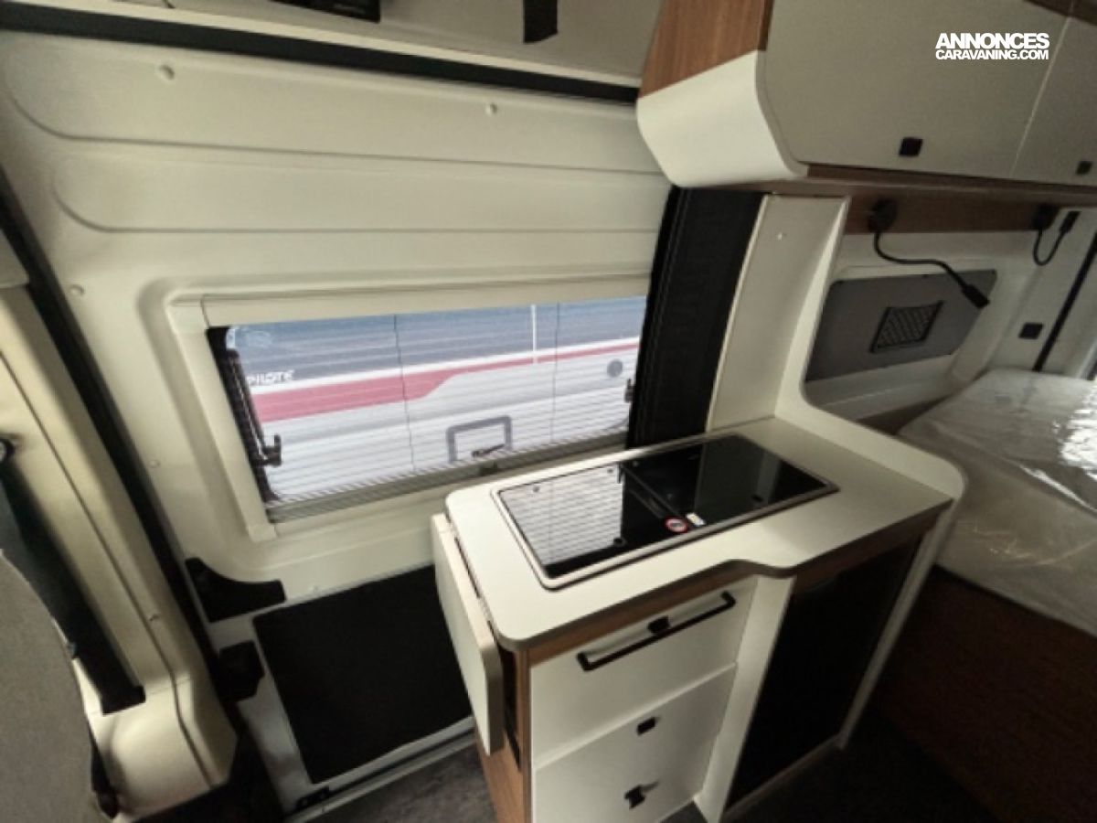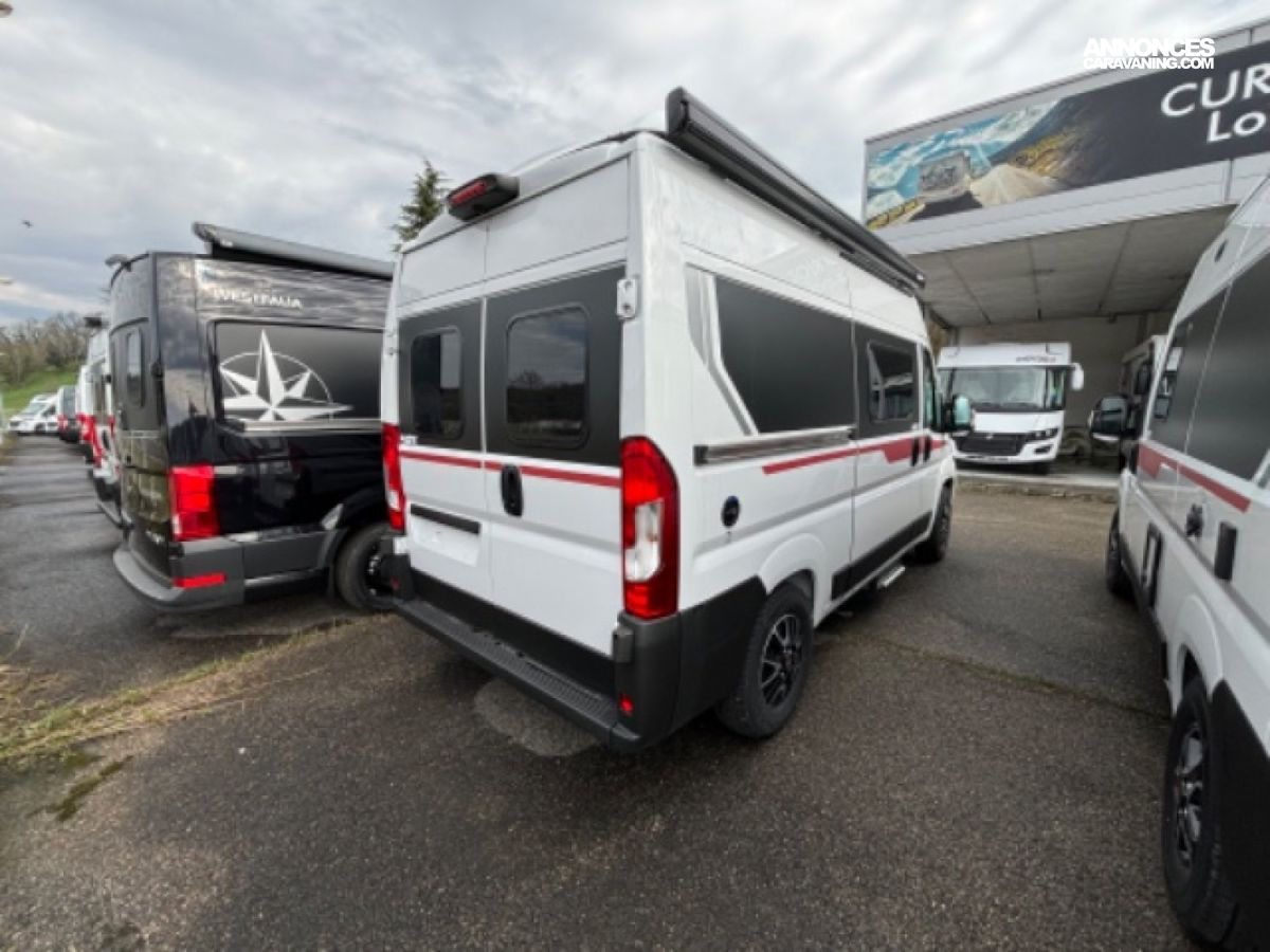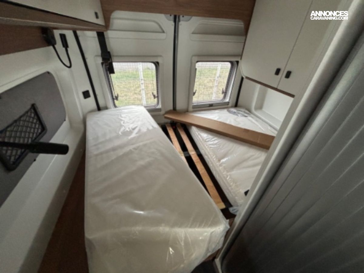 Air bag conducteur et passager, Auto radio DAB GPS, Camera de recul, Capteur pluie /lumiere, Chargeur induction, Chauffage truma combi 4, Climatisation automatique, Commande au volant, Demarrage sans clé, Detecteur angle mort, Esp, Feux diurnes, Frigo bas 85L, Jantes alliage 16" noire, Moustiquaire, Normes europeens d'emission, Phares antibrouillard, Pneumatiques 4 saisons, Prise 230v en roulant, Regulateur de vitesse, Retroviseurs electriques, Safety pack, Toit relevable, Volant et pommeau cuir