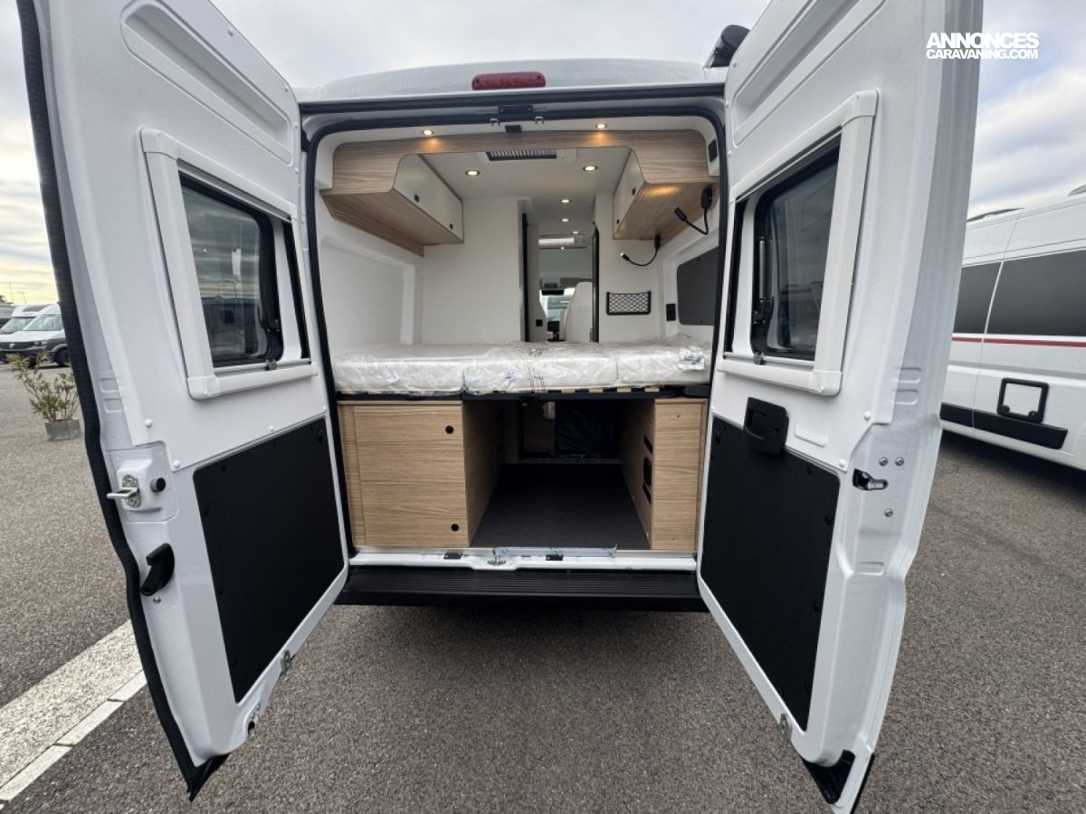 Parce qu’il offre le meilleur mix entre compacité et confort haut de gamme. Sa boîte automatique Euro 6E, son lit transversal, son double couchage possible, et son équipement complet en font un compagnon de voyage idéal toute l’année.Autonome grâce à son panneau solaire, confortable avec son chauffage gaz Truma, moderne avec son multimédia complet, le V600G Evidence coche toutes les cases du fourgon aménagé premium. Que ce soit pour les escapades spontanées ou les road trips plus ambitieux, il garantit qualité, fiabilité et plaisir de conduite.