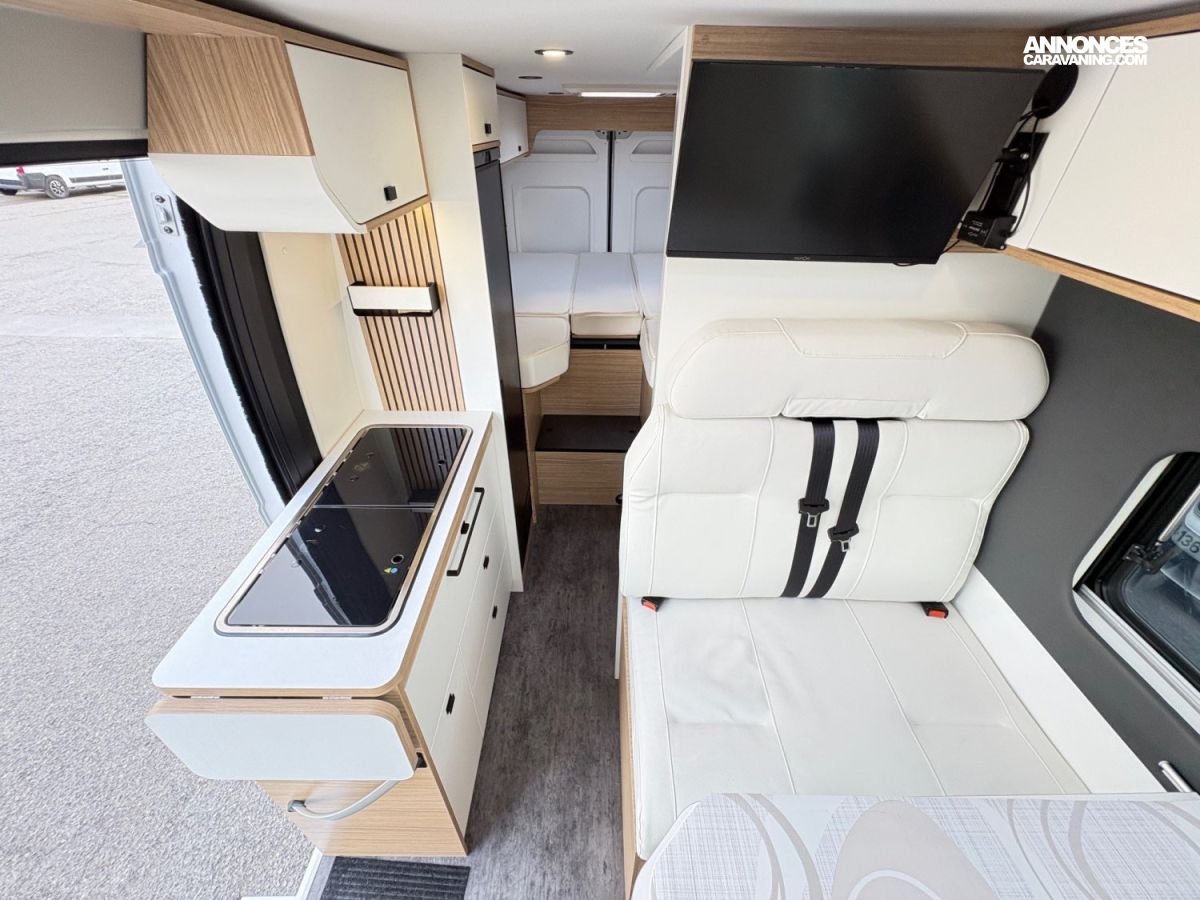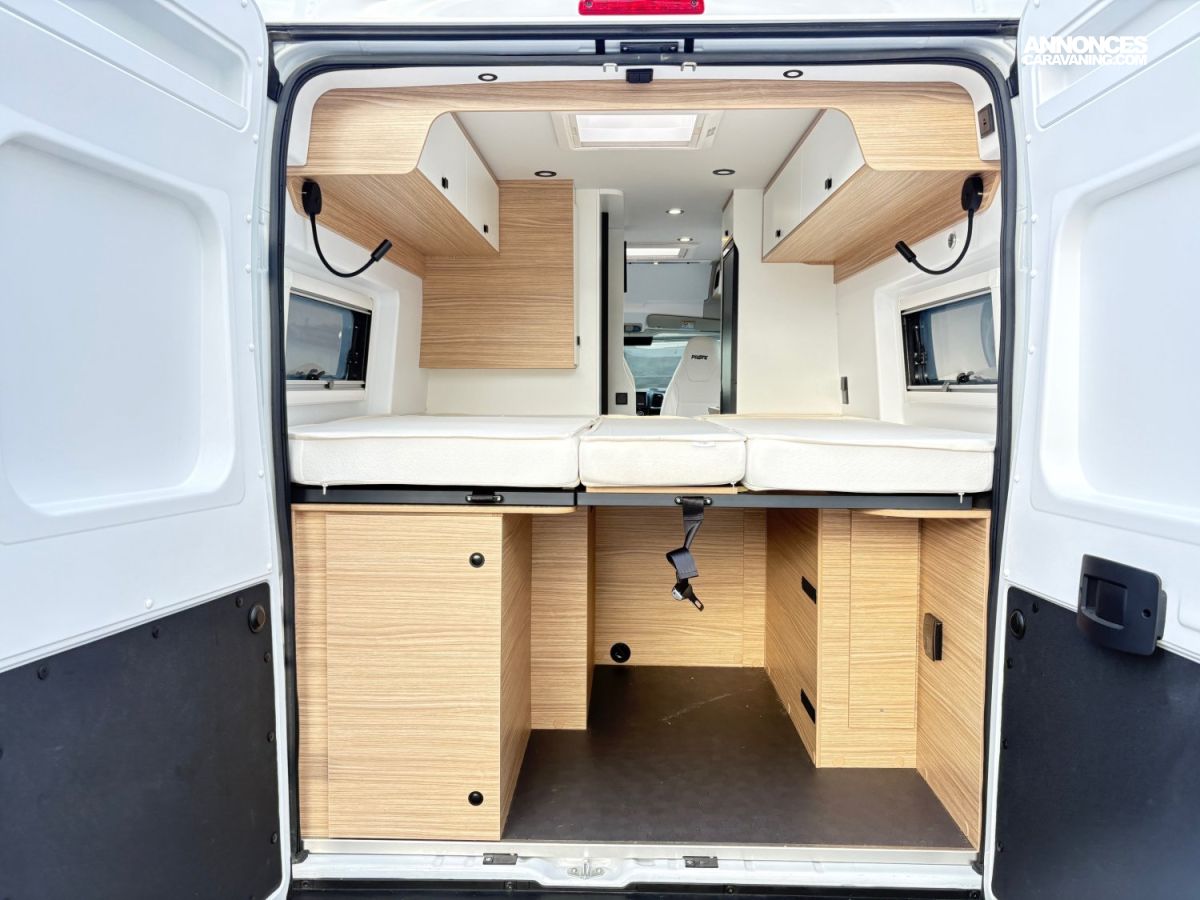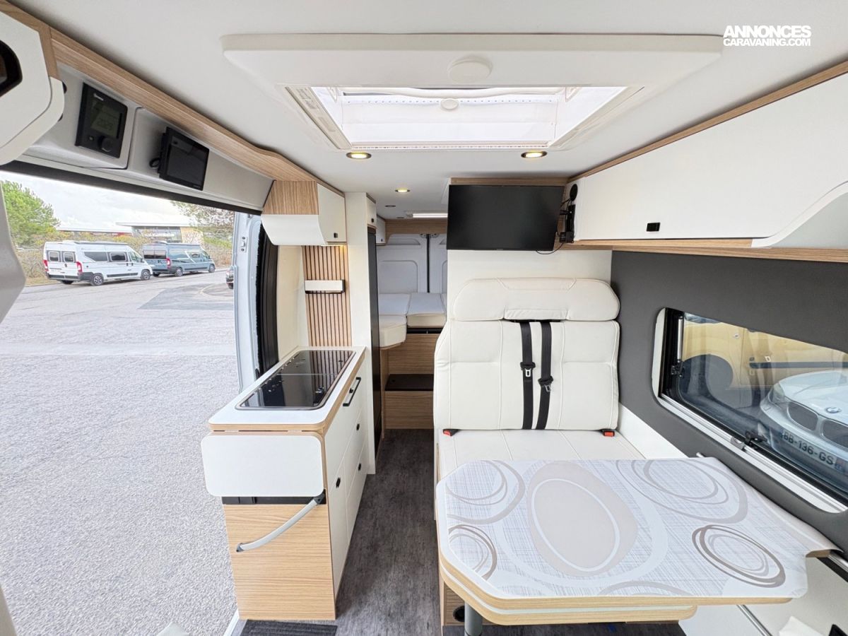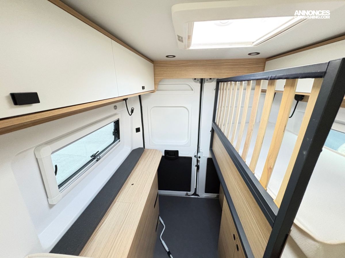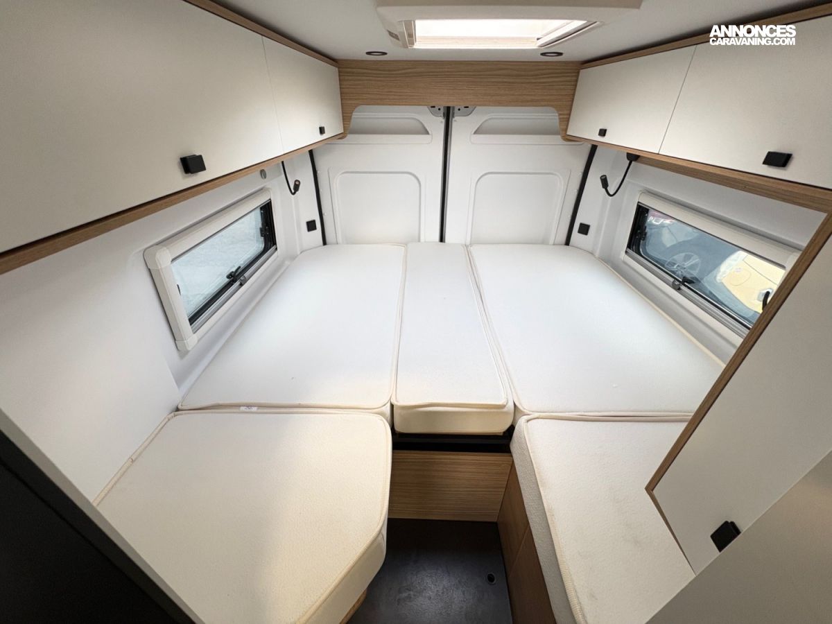 BAIES AFFLEURANTES DOUBLE-VITRAGE, STORE BANNE, BOITE AUTO BVA, MOUSTIQUAIRE PORTE LATERALE, STATION MULTIMEDIA CARPLAY, COMMANDE AU VOLANT, CAMERA DE RECUL, STORE REMIS CABINE, FREIN A MAIN ELECTRIQUE, JANTE EN 16", DOUCHETTE EXTERIEUR, SAFE DOORS, PANNEAU SOLAIRE, TRACTION+, HILL DESCENT, FRIGO A COMPRESSION 138L