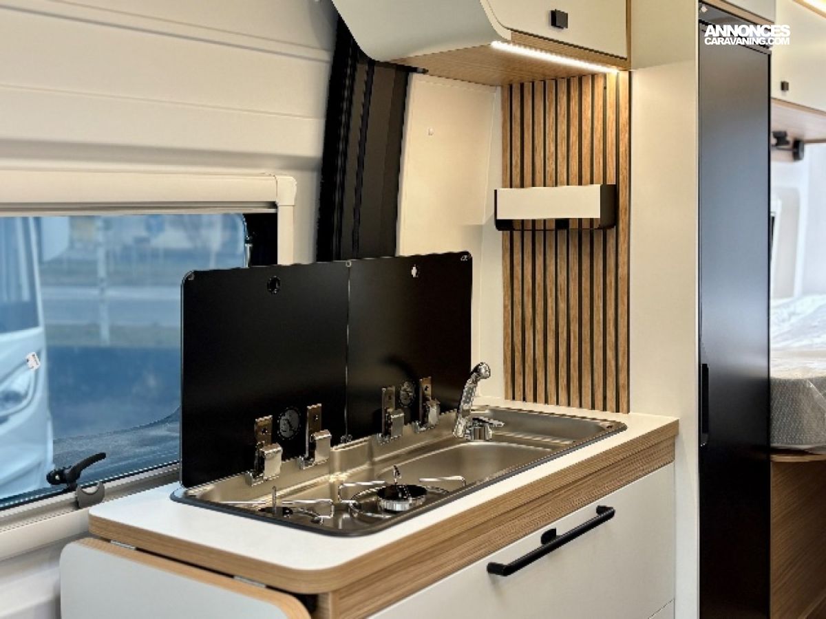 1 panneau solaire mono 100W, 140cv+ eco pack + boite auto, 2 eme panneau solaire 100W, 3T5, Ambiance interieure cloud, Ambiance mobilier pyla, Auto radio 7" DAB, Batterie lithium 200Ah, Camera de recul, Frigo bas 140L, Gris artense, Moustiquaire, Niche degagée, Predisposition chauffage addit, Reservoir gazole 90L, Store banne, Truma combi diesel 4