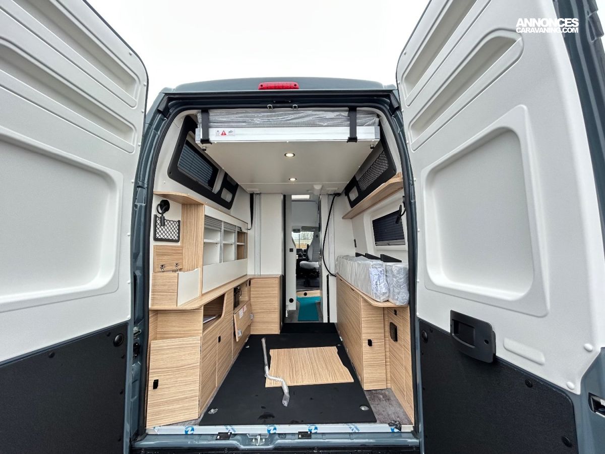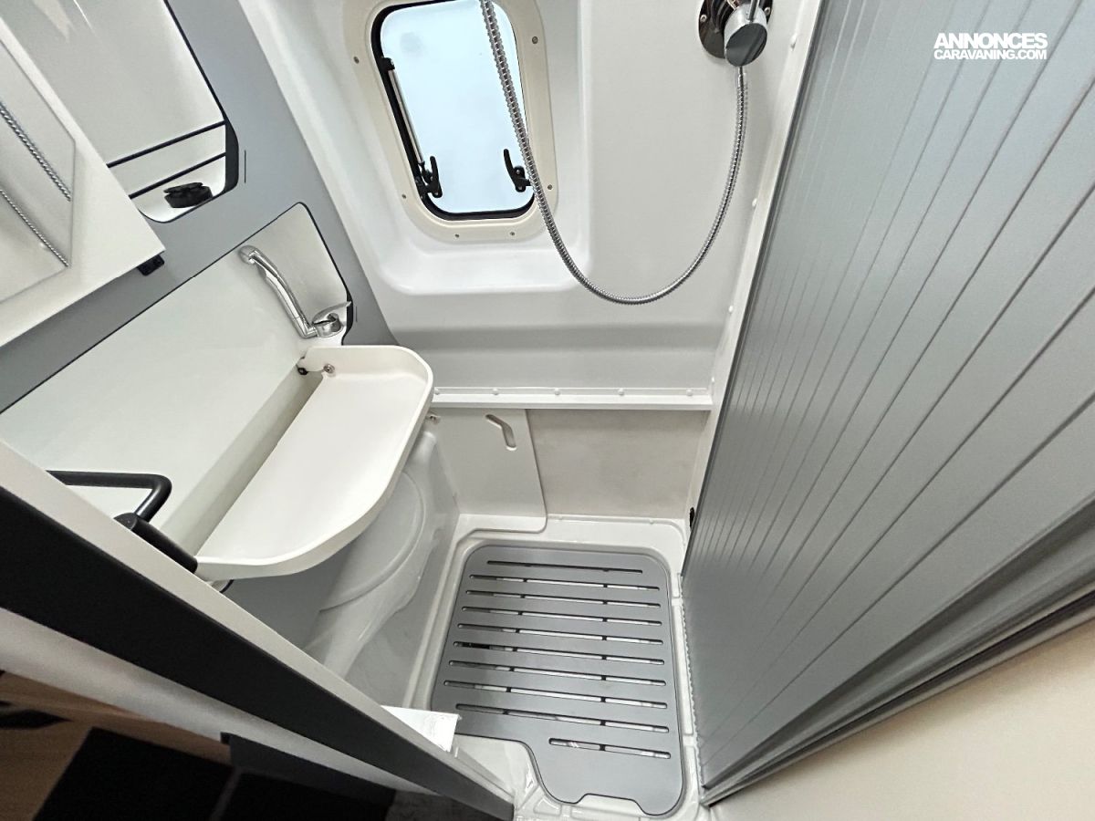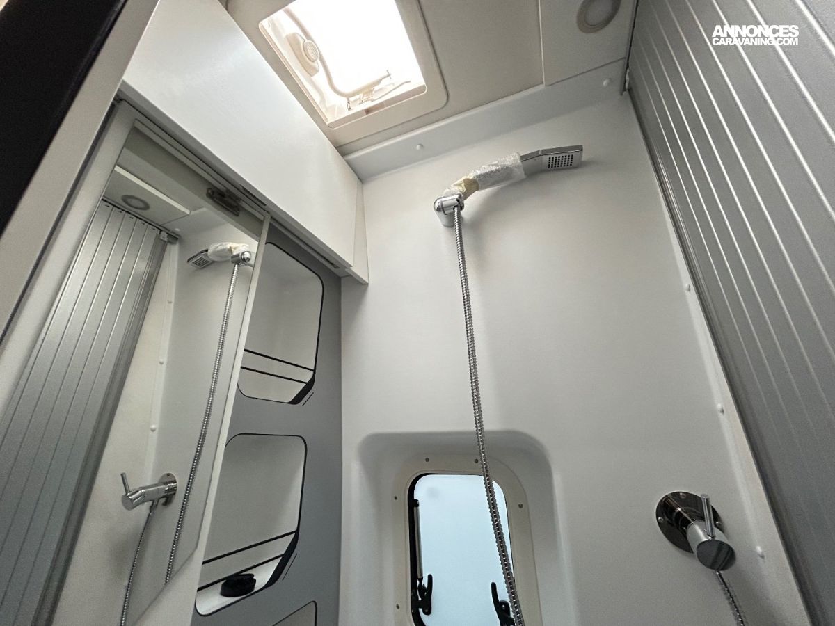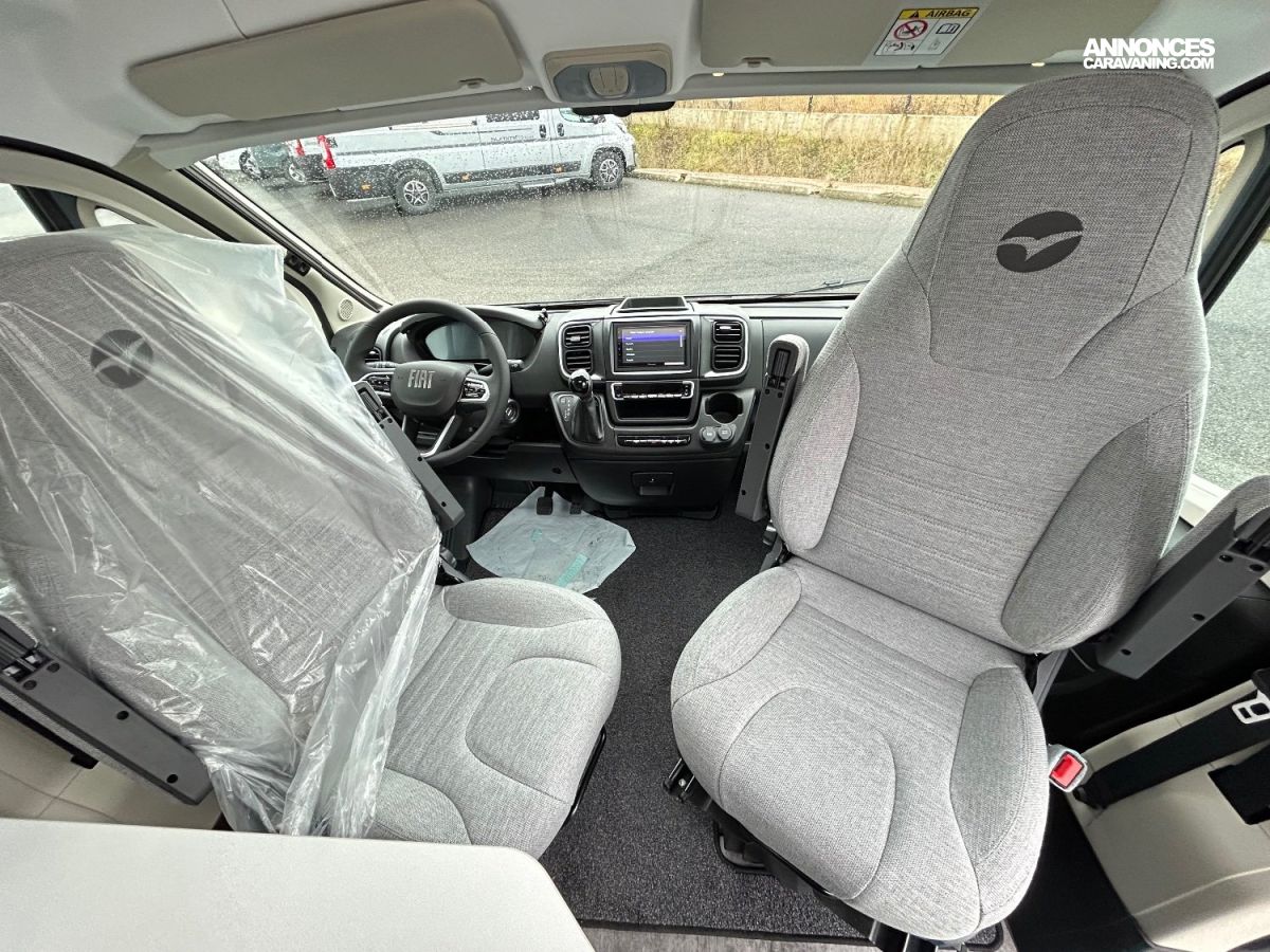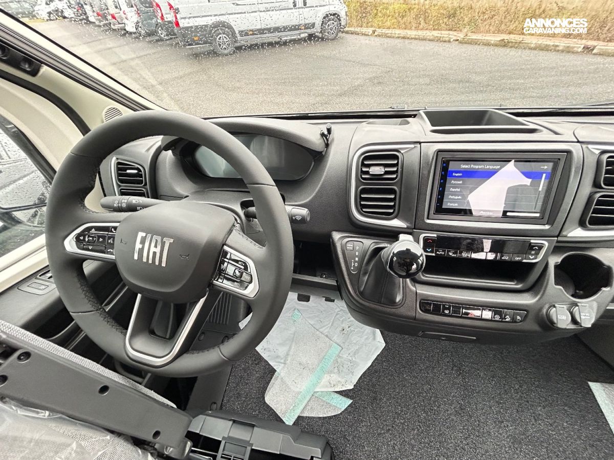 Implanté sur Fiat Ducato 2.2L 140 ch avec boîte automatique, ce fourgon de 6,36 m en hauteur H3 offre une excellente habitabilité tout en restant maniable sur la route.