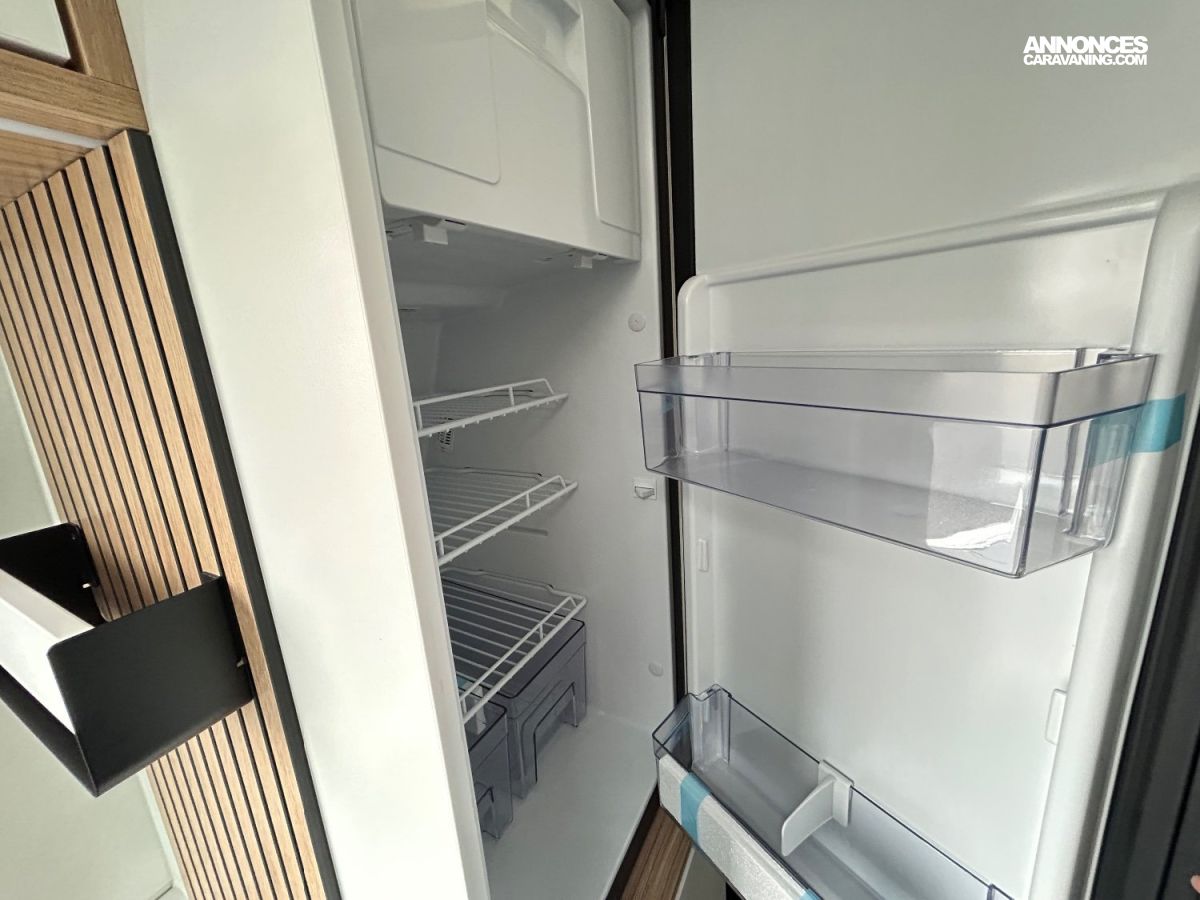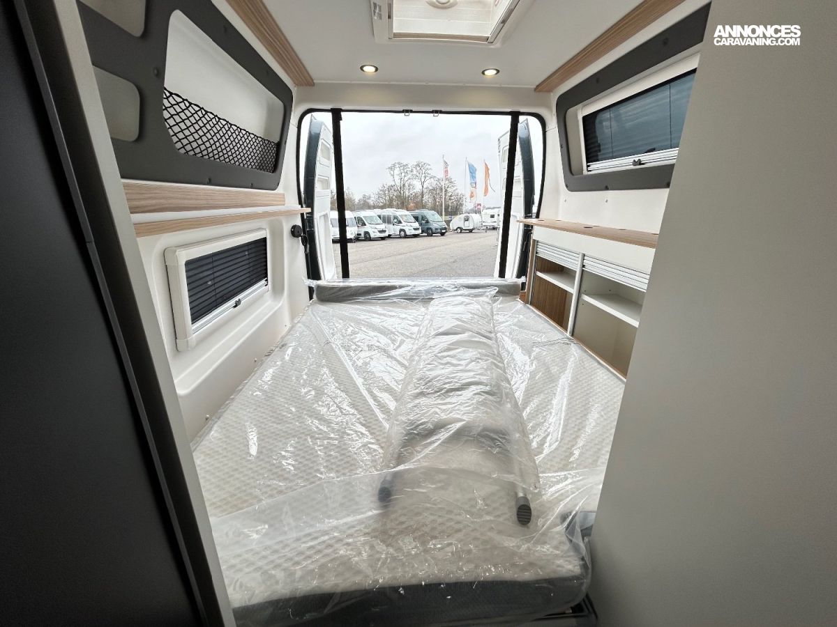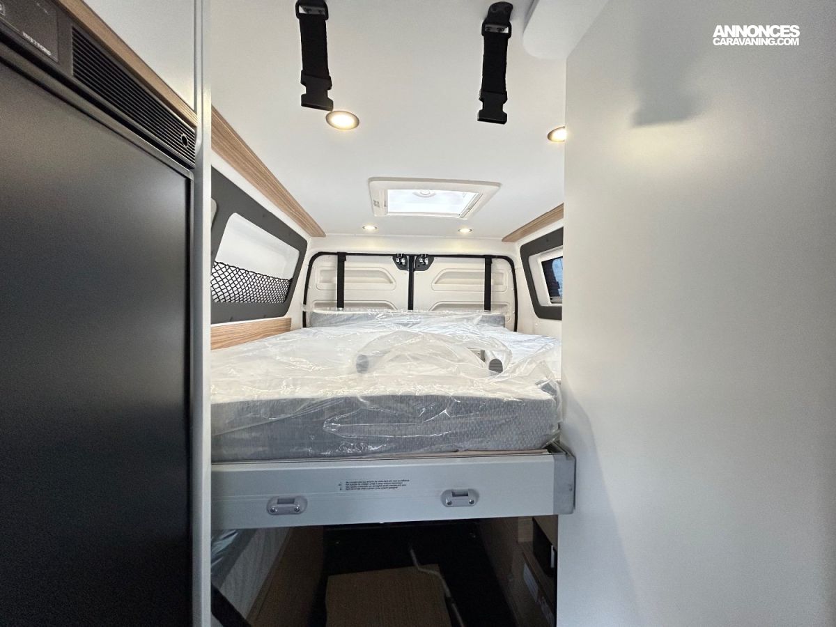un lit arrière escamotable électriquement, réglable en hauteur. Il permet d’adapter l’espace selon vos besoins :