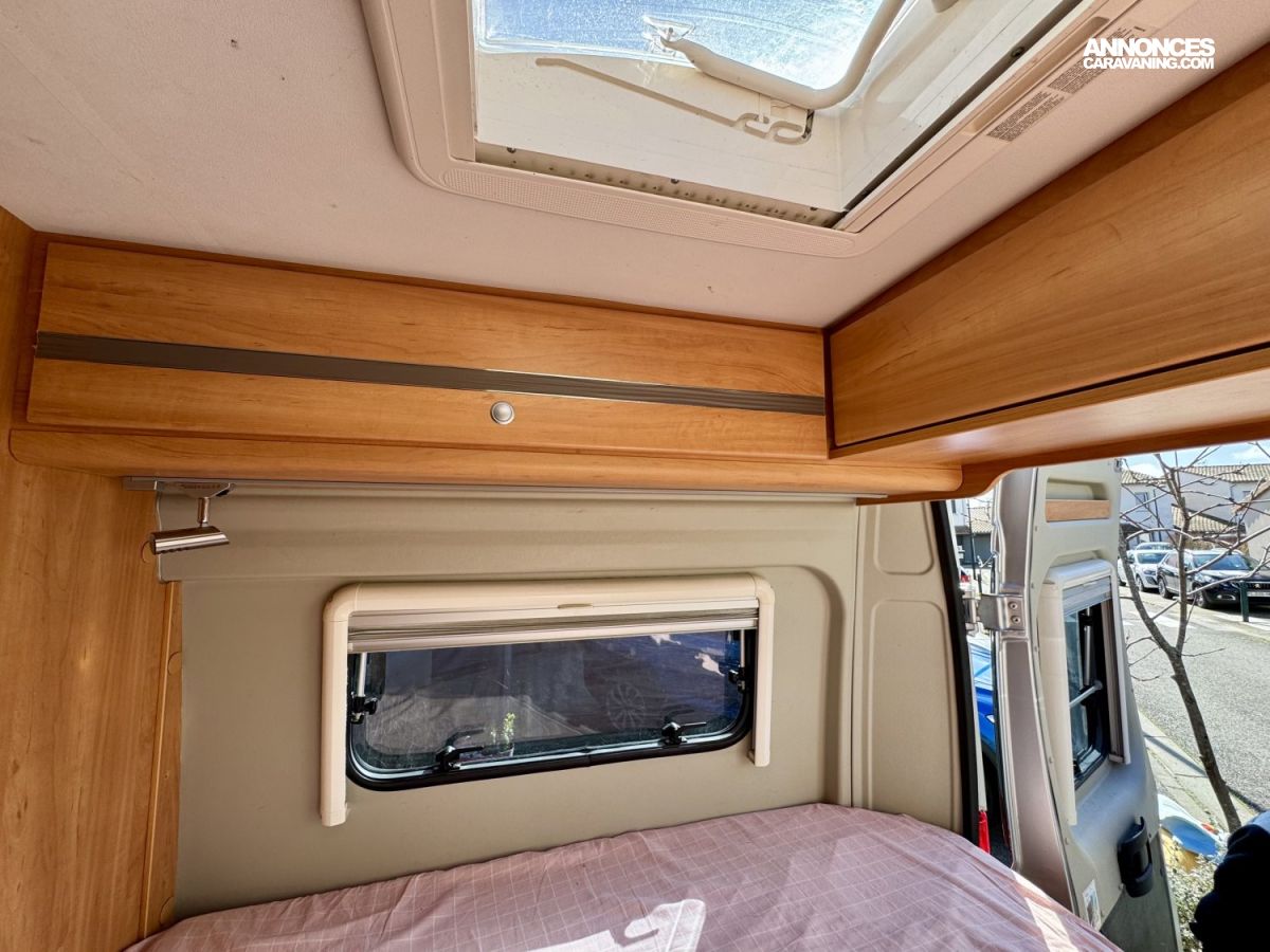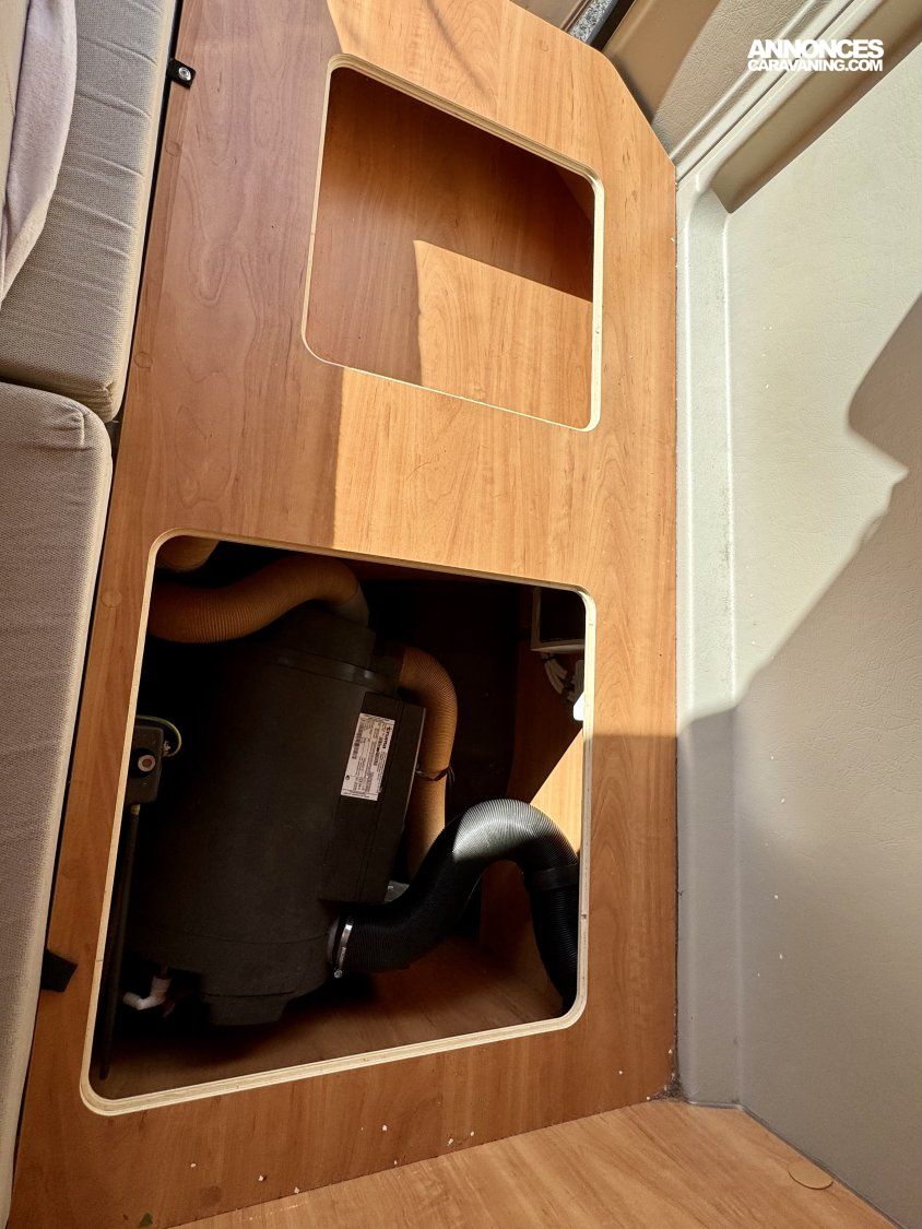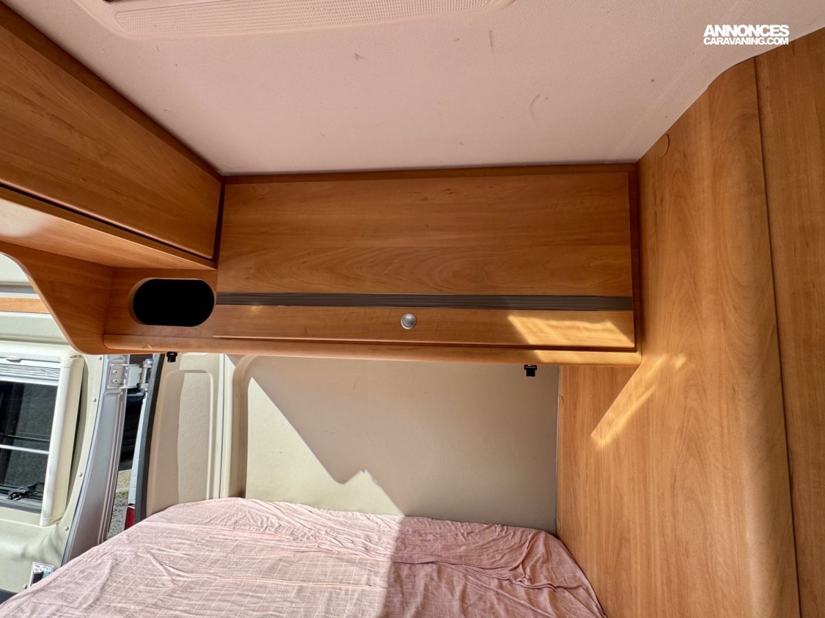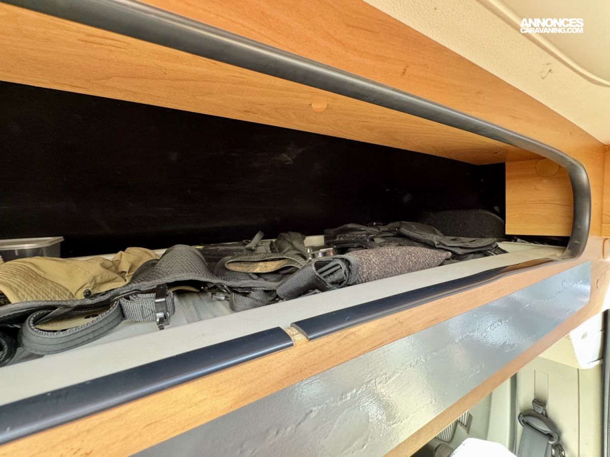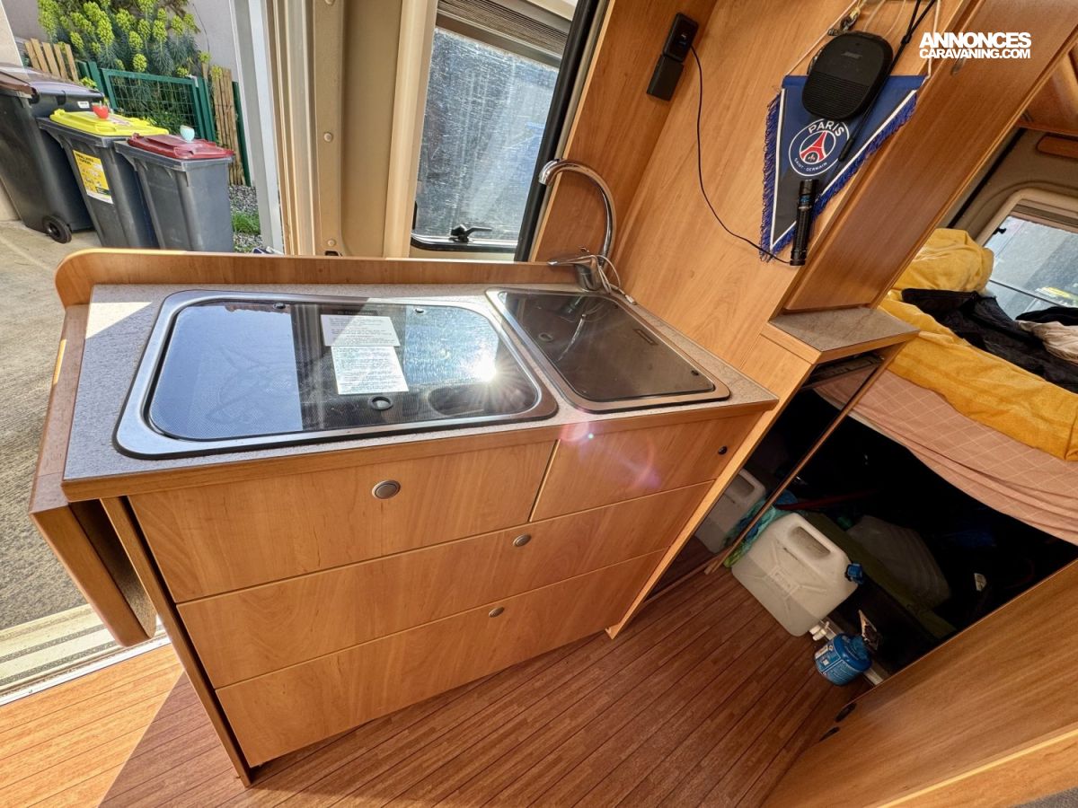 CHAUFFAGE COMBI TRUMA 4, STORE EXTERIEUR 3.5M, GAZINIERE 2 FEUX, ECLAIRAGE LED, MOQUETTE CABINE, RALLONGE DE TABLE, REFRIGERATEUR TRI MIX, STORES PLISSES DE CABINE, TABLE TELESCOPIQUE, LANTERNEAU PANORAMIQUE