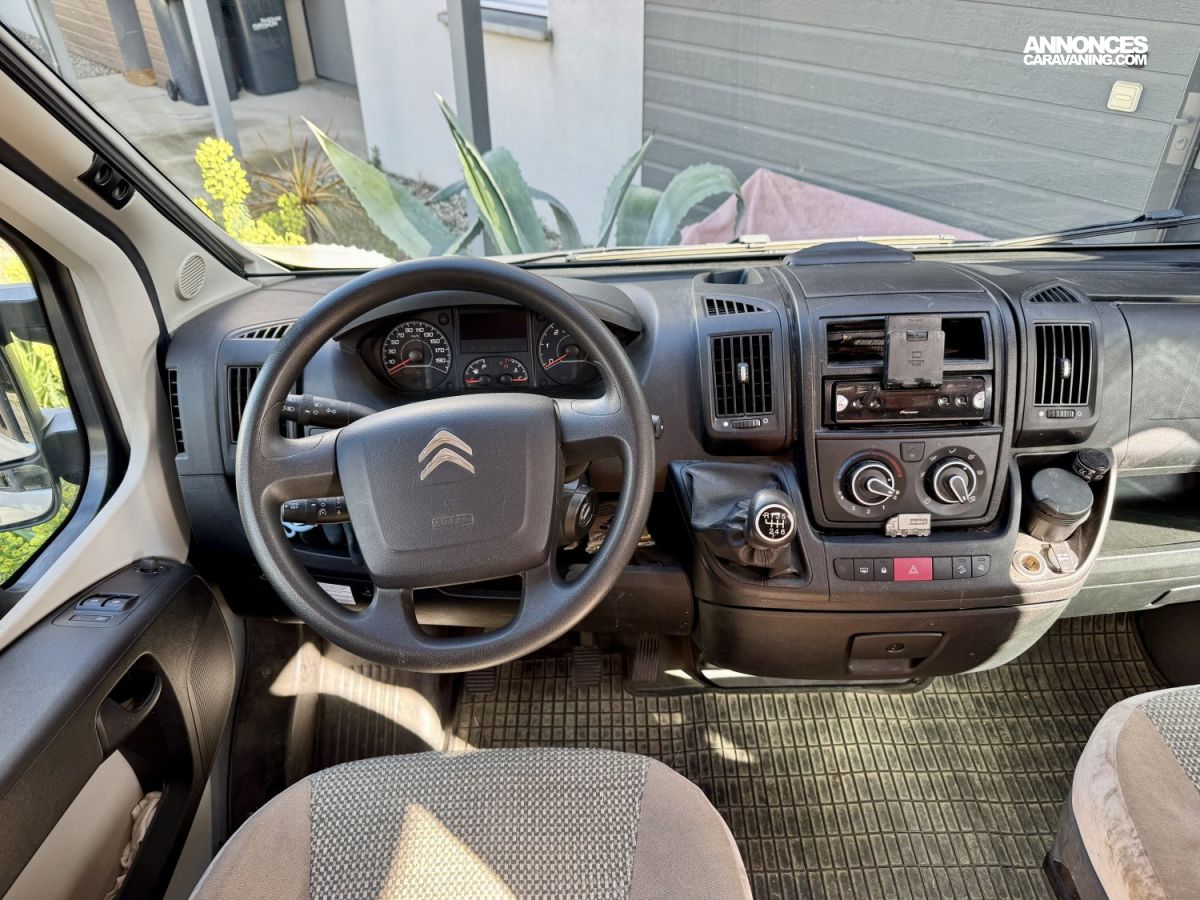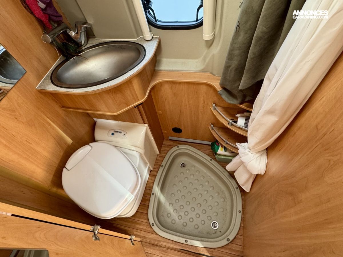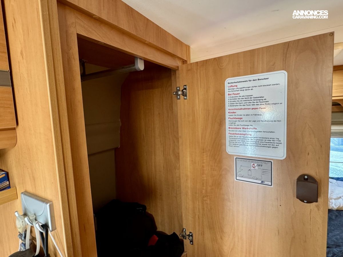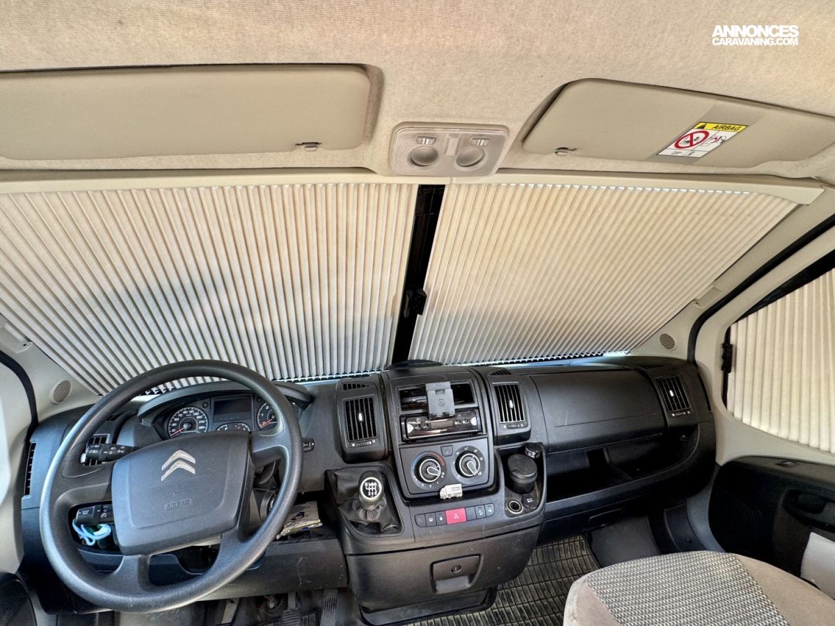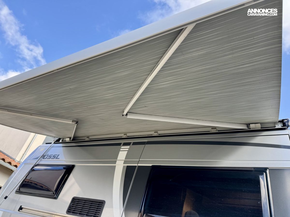CHAUFFAGE COMBI TRUMA 4, STORE EXTERIEUR 3.5M, GAZINIERE 2 FEUX, ECLAIRAGE LED, MOQUETTE CABINE, RALLONGE DE TABLE, REFRIGERATEUR TRI MIX, STORES PLISSES DE CABINE, TABLE TELESCOPIQUE, LANTERNEAU PANORAMIQUE