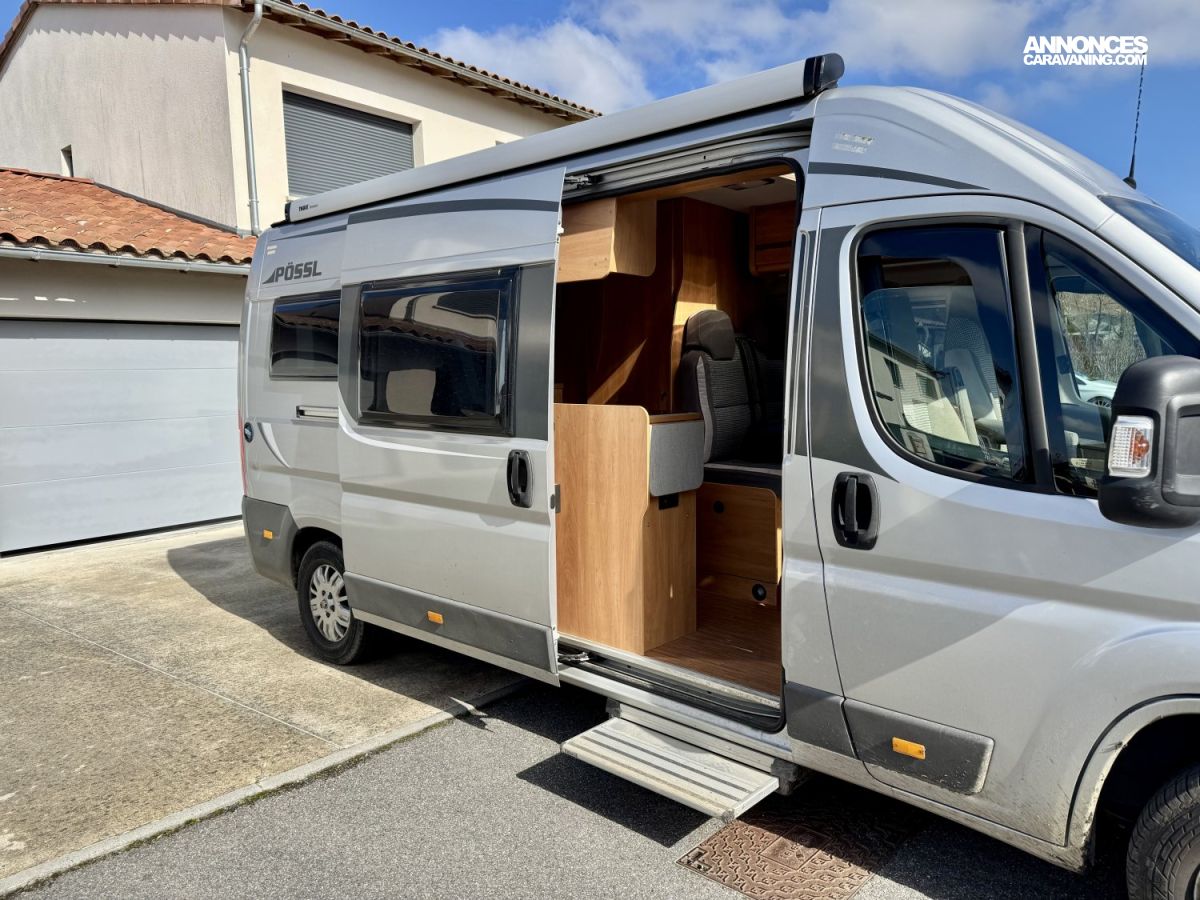 Professionnel du véhicule de loisirs, membre du réseau Horde d’Or, je vous propose ce Pössl 2 Win de 2016, un fourgon aménagé fiable, confortable et parfaitement équipé, idéal pour les escapades en couple comme pour les longs road-trips.