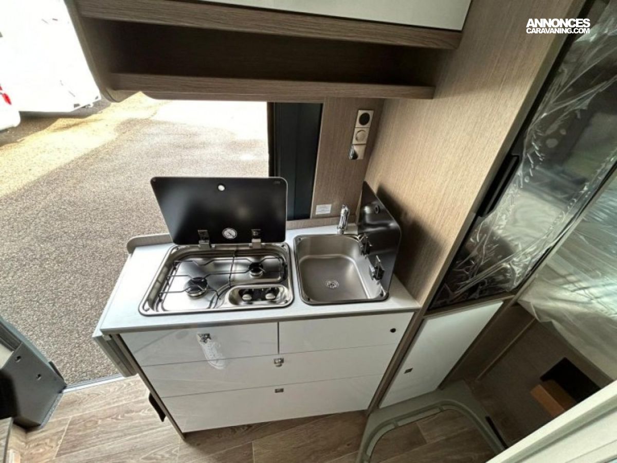 Accessoires : Store / 2 batteries cellules / Softlock /Pack hiver (rideaux isolant arrière + sonde eaux usées) / Alarme / Traceur / Coupe Moteur / Porte 2 vélos / 3ème lit / Traction + / Commande Truma CP + / Jantes 16"