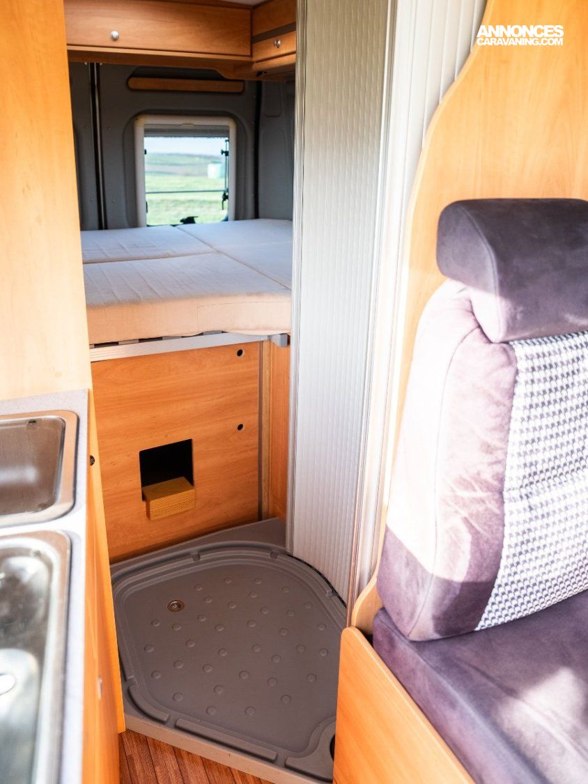 Le modèle 2 Win R a la particularité de proposer de très nombreux rangements, une disposition très fonctionnelle, surtout une douche à la fois grande et permettant une séparation mobile très efficace et pratique des zones jour et nuit.