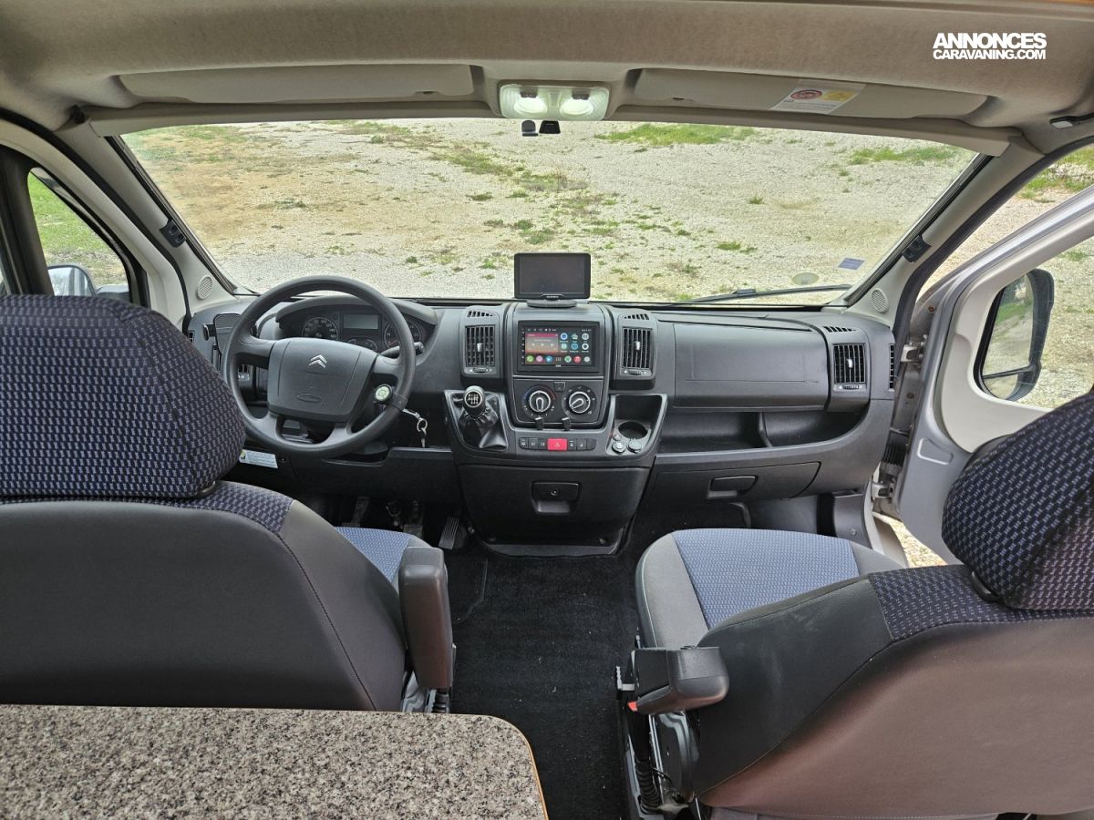 Monté sur un châssis Citroën Jumper 2,2 HDI de 130 Ch avec une boite manuelle, il affiche 141945 Km et offre une conduite agréable aussi bien sur route que sur des longs trajets.
