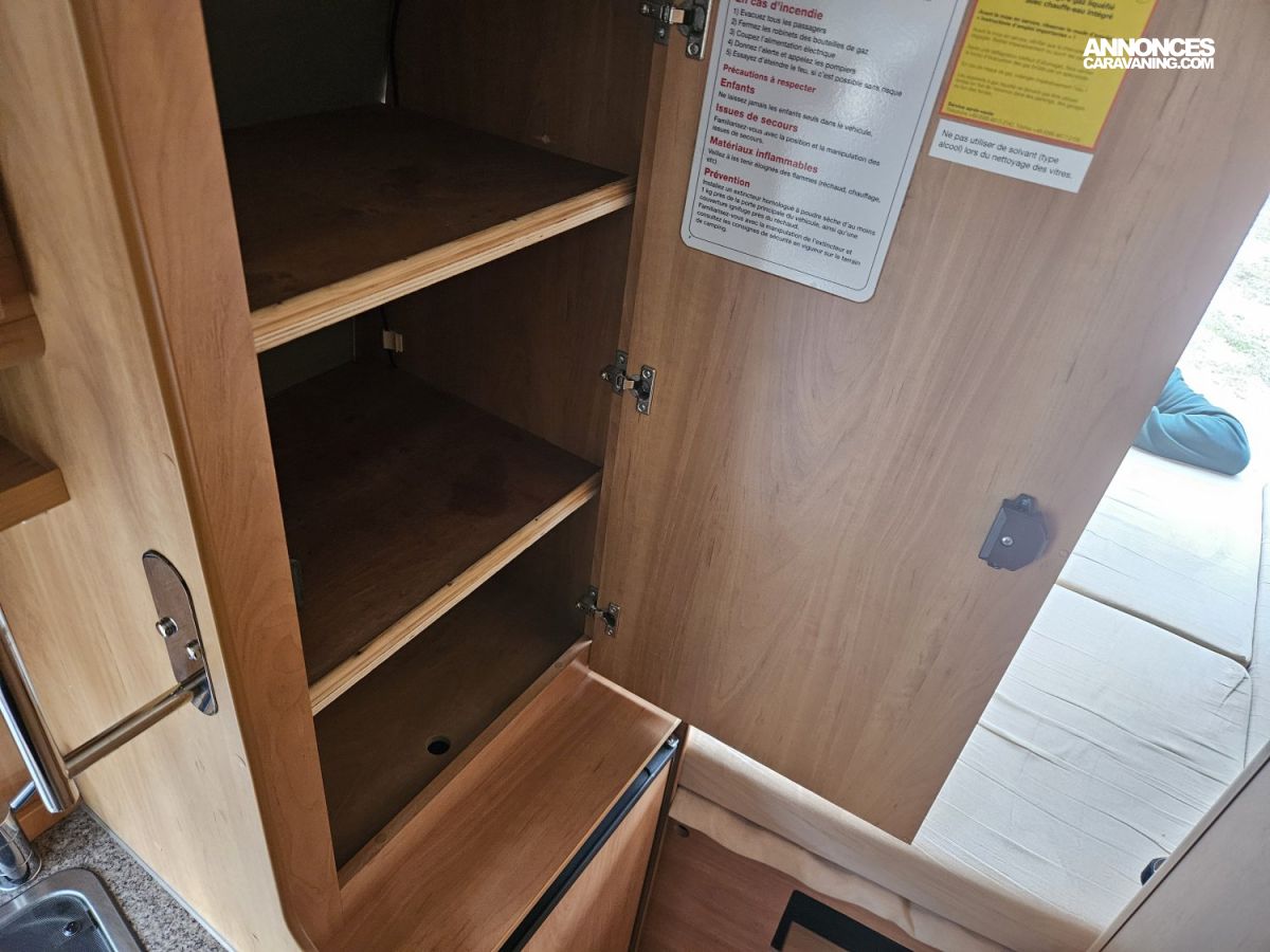 CHAUFFAGE COMBI TRUMA 4, STORE EXTERIEUR 3M, GAZINIERE 2 FEUX, FENETRE SDB, ECLAIRAGE LED, MOQUETTE CABINE, MOUSTIQUAIRE DE PORTE CELLULE, PORTE VELO, REFRIGERATEUR TRI MIX, STORES PLISSES DE CABINE, FREEZER, CHAUFFE-EAU GAZ