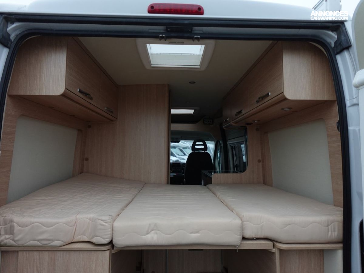 Des dimensions étudiées pour se garer en toute facilité. Soyez aussi confortablement installés que dans une voiture mais profitez d’un équipement exceptionnel. Espace garanti aussi bien dans le coin cuisine que dans le coin douche sans oublier l’espace sommeil. Par ailleurs, vous pourrez charger vos affaires, surtout les plus longues, jusqu’à la cabine conducteur.