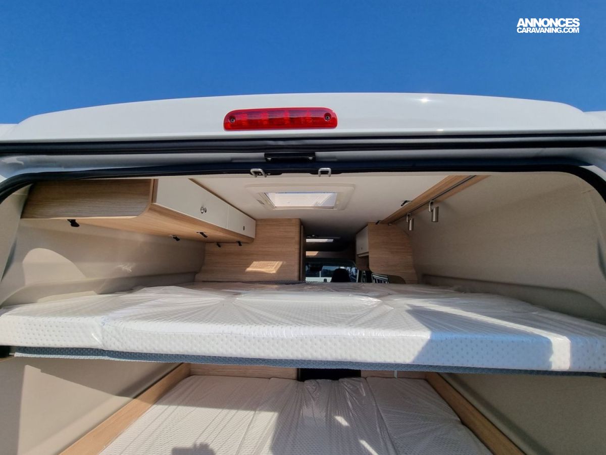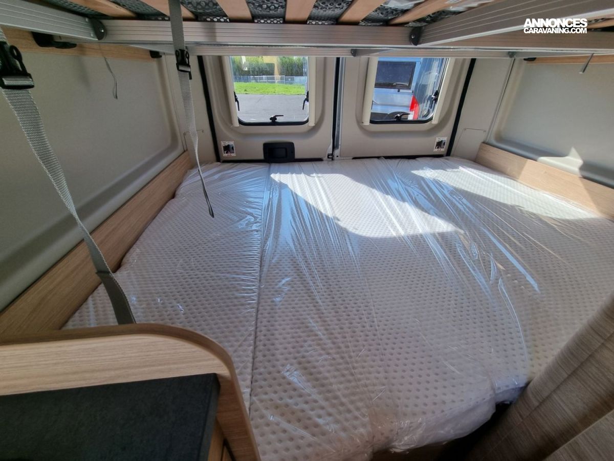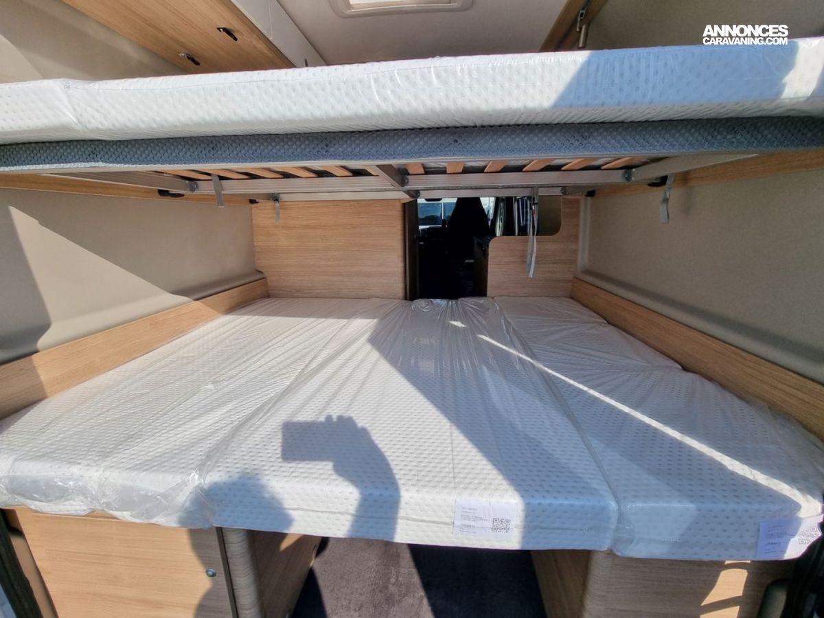 - Pack Confort :- Marchepied électrique- Moustiquaire porte latérale- Lanterneau Midi-Heki au dessus de la dînette- Rideau occultant cabine- Equipement de douche (rideau + pommeau)