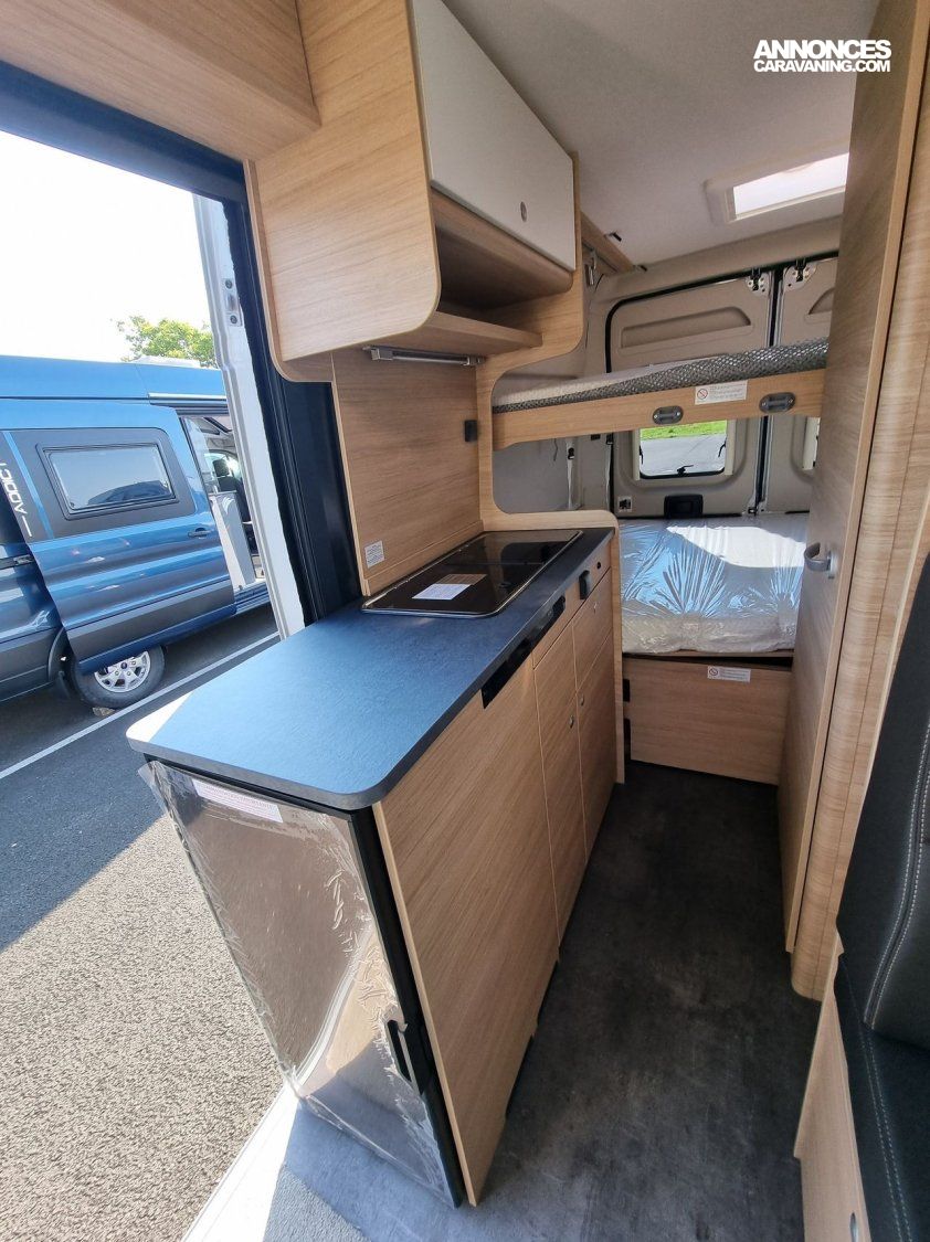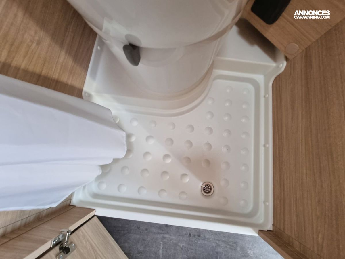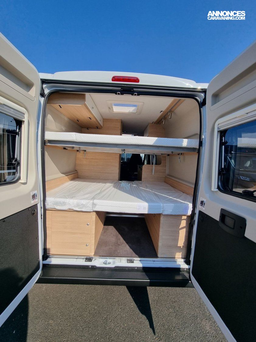 - Pack Confort :- Marchepied électrique- Moustiquaire porte latérale- Lanterneau Midi-Heki au dessus de la dînette- Rideau occultant cabine- Equipement de douche (rideau + pommeau)