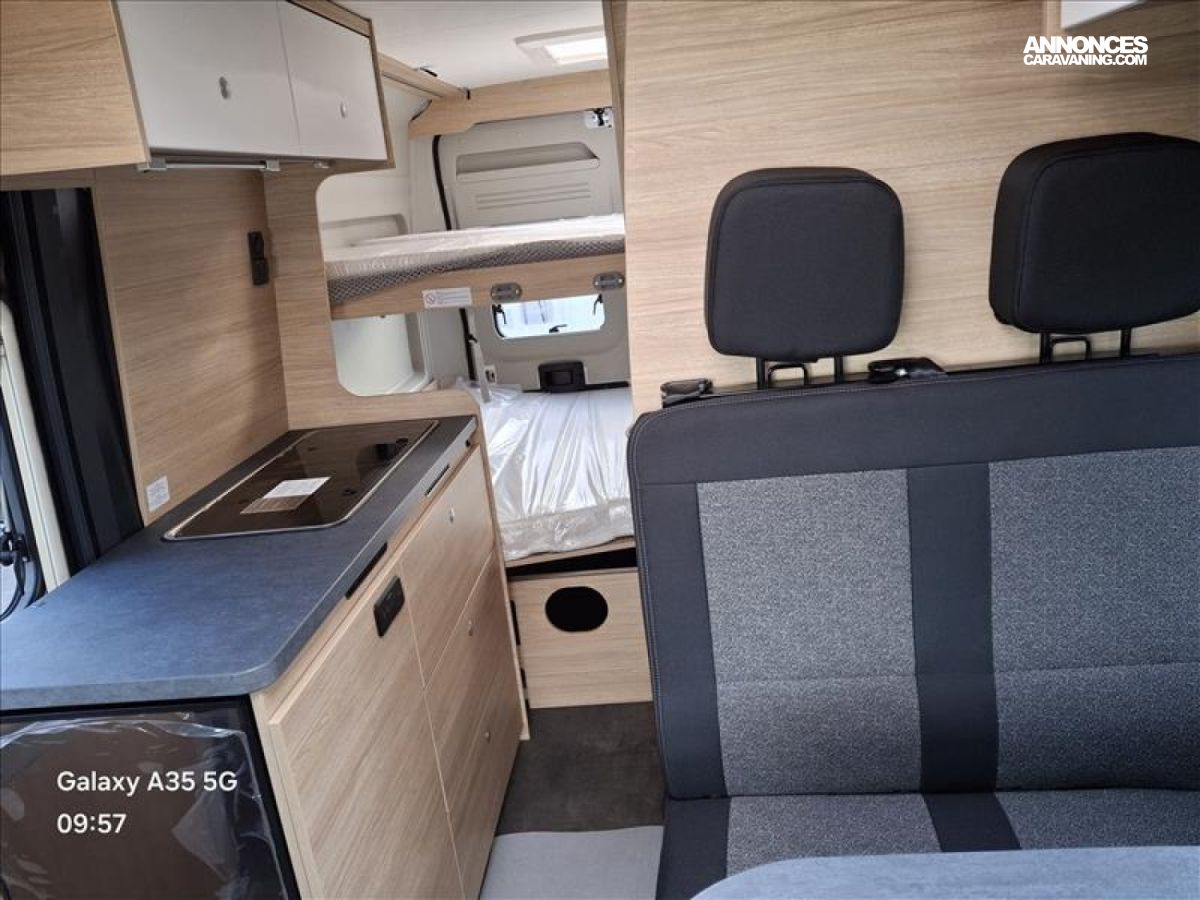 Découvrez le POSSL ROADCAR R601, le fourgon idéal pour les familles en quête d'aventure et de liberté! Avec ses 2 lits double "transversals", tout le monde pourra profiter d'un sommeil réparateur après une journée bien remplie. Imaginez-vous en train de raconter des histoires de camping sous les étoiles, confortablement installés dans votre cocon mobile. La mobilité est au cœur de ce modèle, vous permettant de partir à la découverte de nouveaux horizons sans jamais sacrifier le confort. Que ce soit pour une escapade en bord de mer ou une exploration en montagne, le ROADCAR R601 est votre compagnon de route parfait. Alors, prêts à vivre des moments inoubliables en famille? Montez à bord et laissez l'aventure commencer!