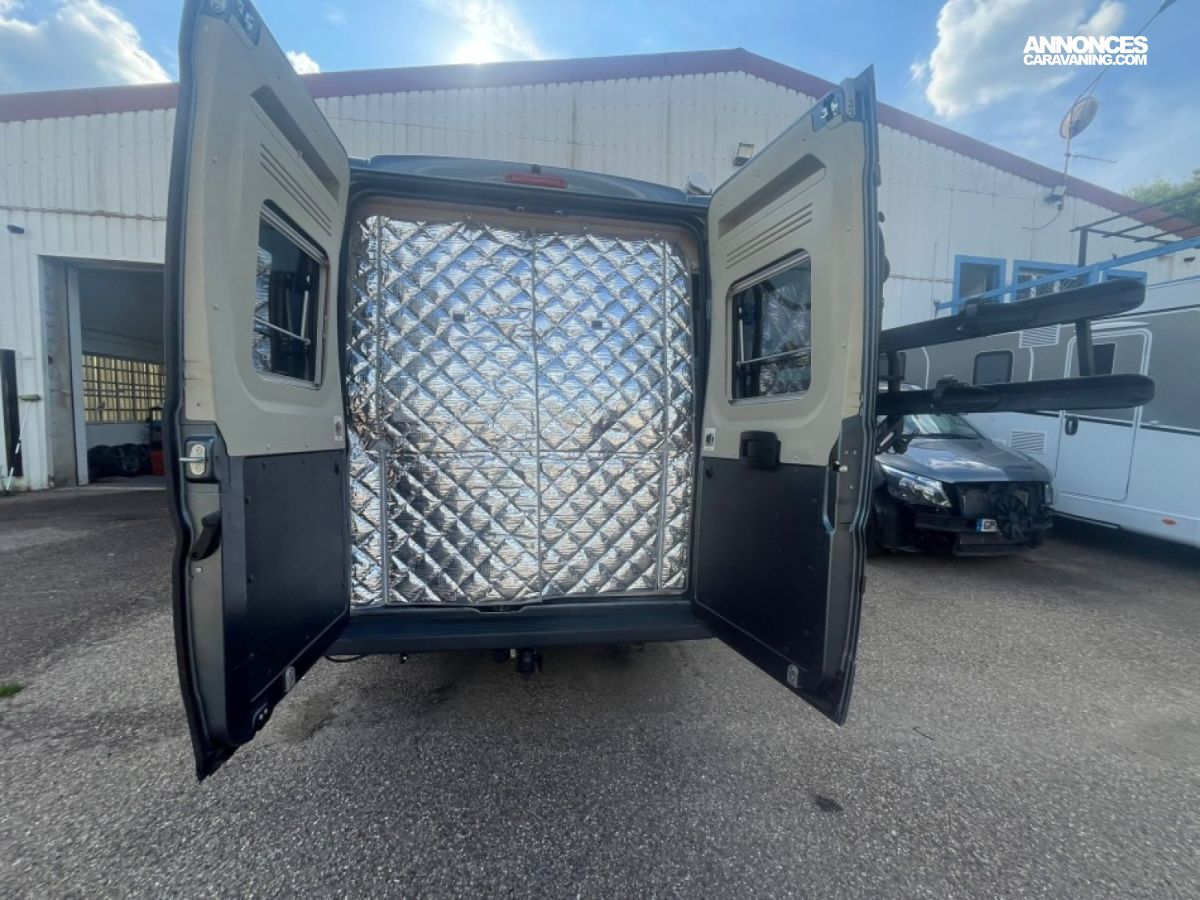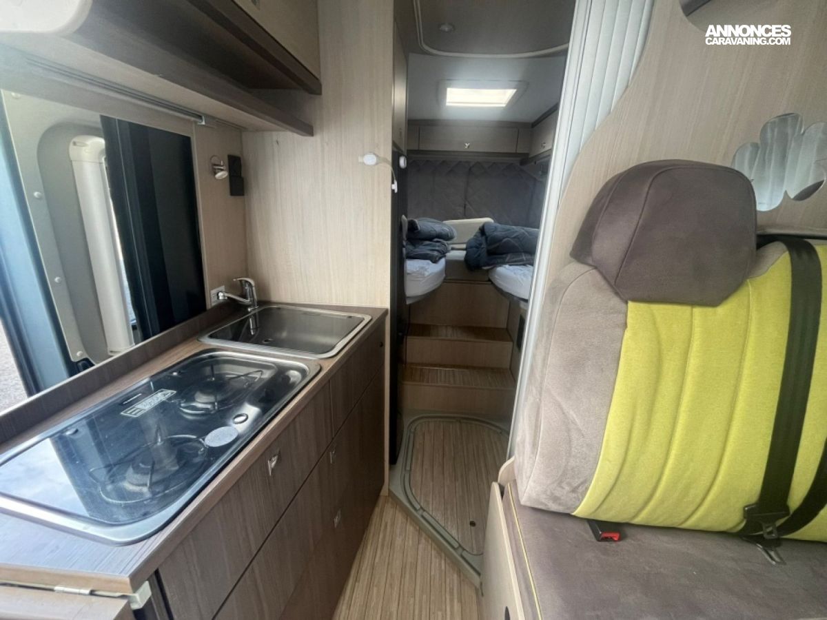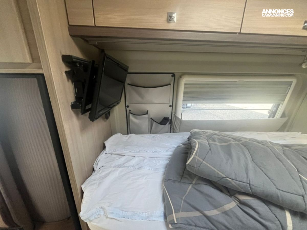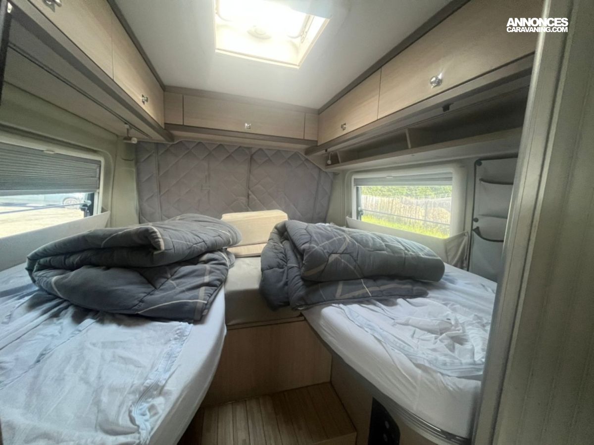 Châssis Heavy - Pack all in : climatisation manuelle, rétro électriques et dégivrant, airbags… – Pack Citroën : Régulateur de vitesse, traction +, éclairage de jour LED – Baie de toilette – intérieur élégance – Store extérieur – Camera de recul – Attelage – SOG – Panneau solaire – Lumière LED de porte latérale – prise supplémentaire USB/12v – Soplair - Rideau isolant porte arrière – Station multimédia sans GPS – Grand frigo tri-mixte – Tapis de cabine – Télévision 17’’ DVD – Antenne satellite automatique ALDEN - Lit tout fait