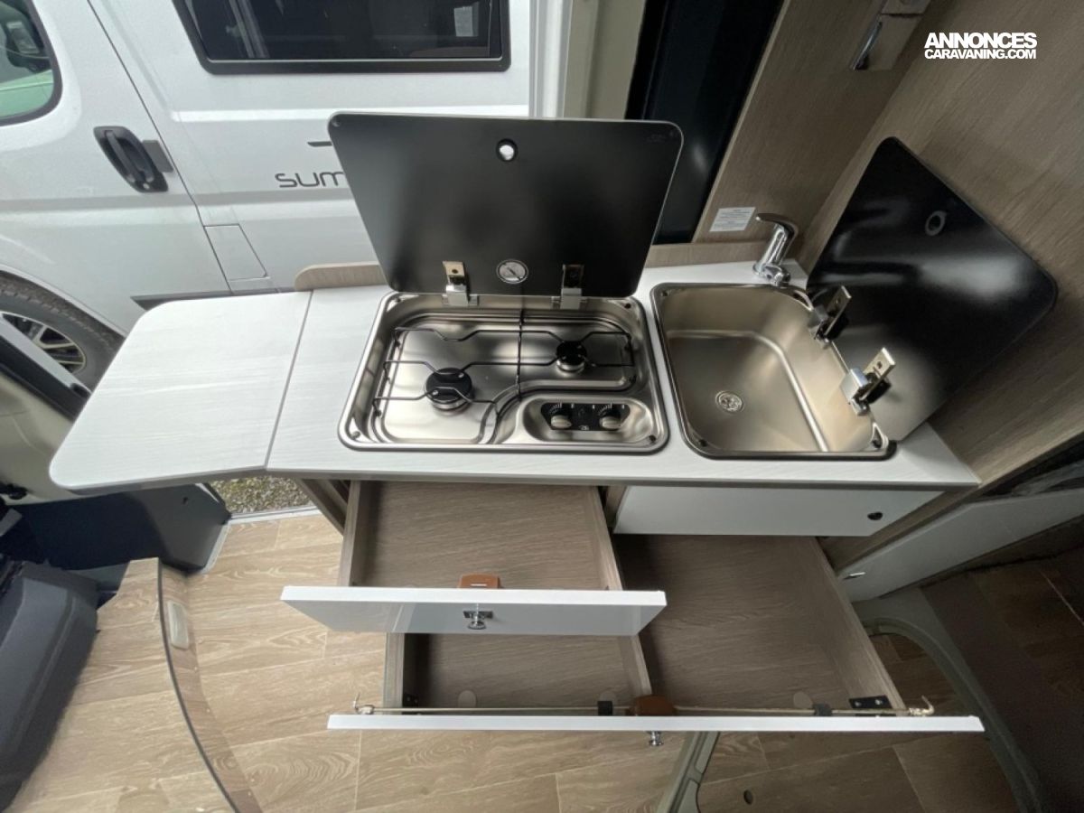 Le ROADCRUISER convient parfaitement aux amateurs de grand espace. Grâce à une longueur de 6,36 m, il offre une cuisine spacieuse et fonctionnelle avec un espace douche confortable avec tout le plaisir de voyager en format XL. Son point fort : un confort incomparable grâce à son lit modulable : soit 2 lits jumeaux soit un grand lit double.