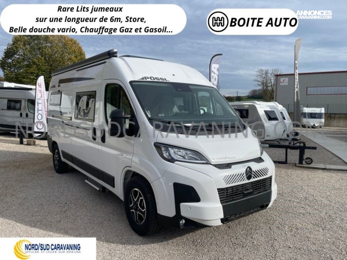 Nouveauté 2026 magnifique Fourgon PÖSSL SUMMIT SHINE 600L, Compact, 5.99m, Lits jumeaux, Douche vario, Marche pied électrique, Store, Boîte Auto, Chauffage gaz / gasoil…