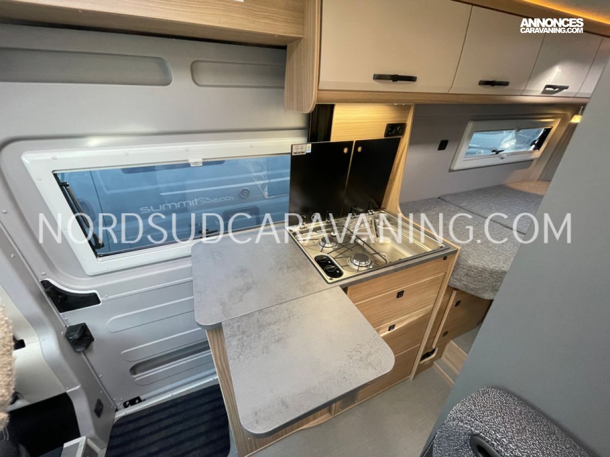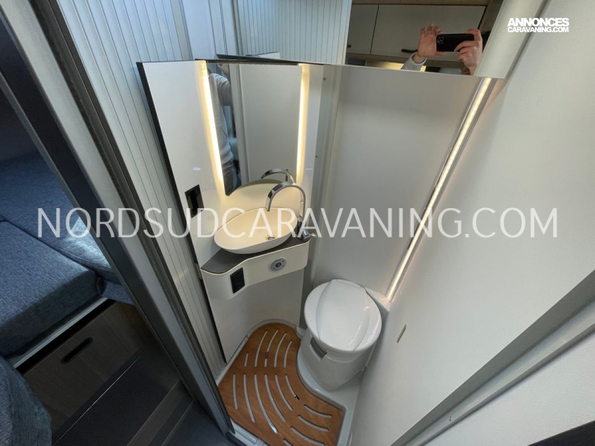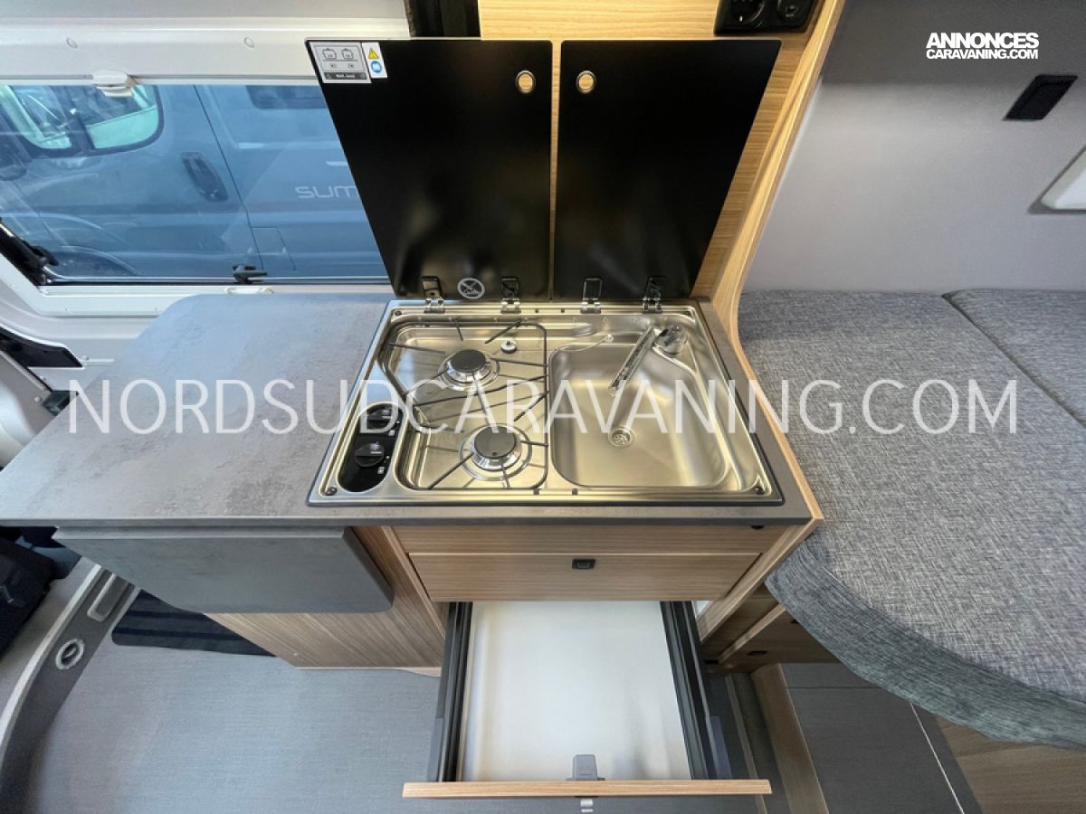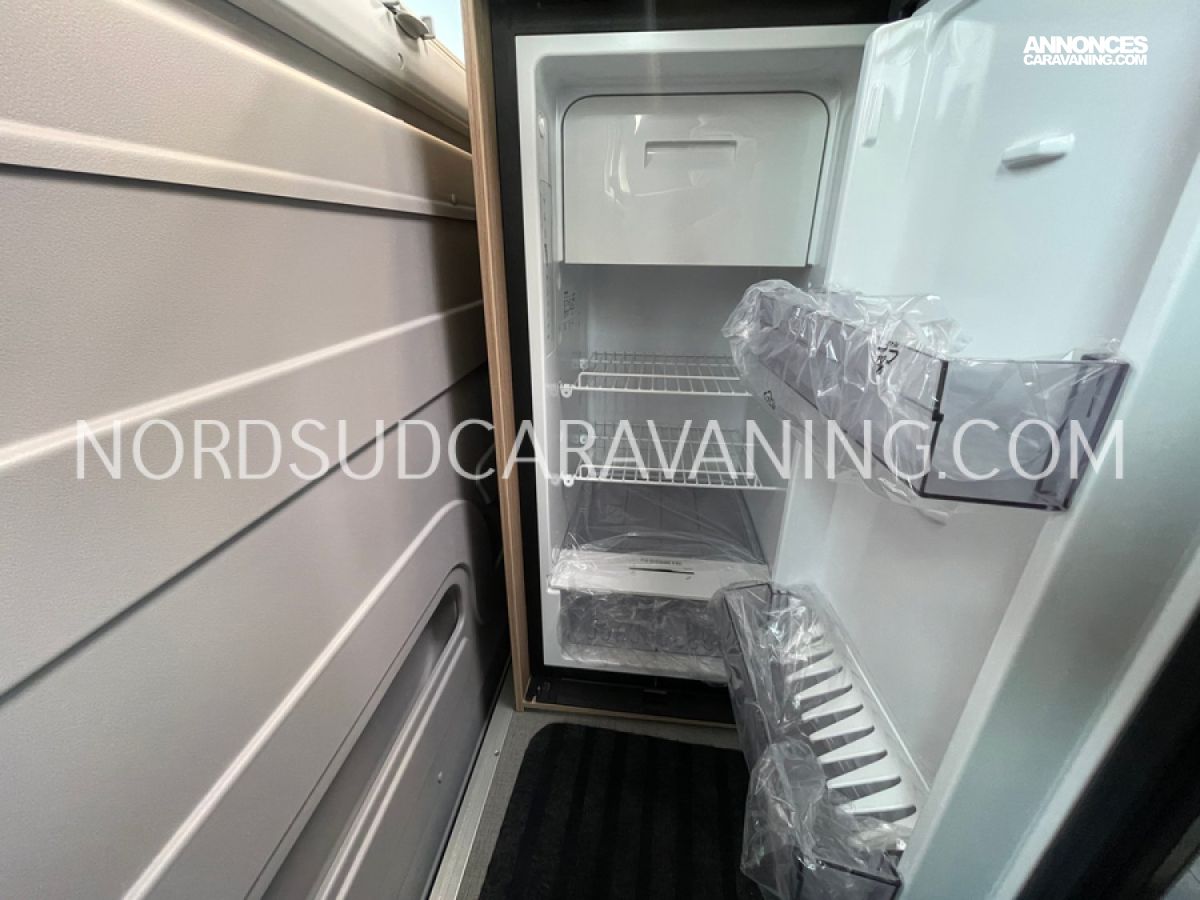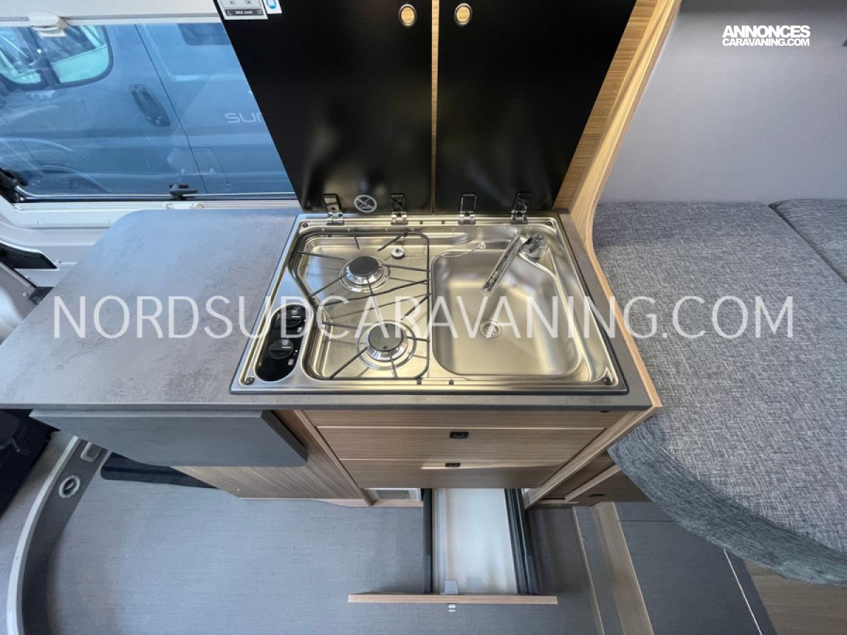 Sa dinette agréable et lumineuse pour une ambiance conviviale. Sa cuisine latérale, pratique et fonctionnelle est équipée d’un réchaud 2 feux, évier et plan de travail rabattable. En face, une salle d'eau avec WC, lavabo, et une douche spacieuse. A l’arrière, ce sont de lits jumeaux, pour plus d’espace. Sans oublier ses nombreux rangements astucieux !