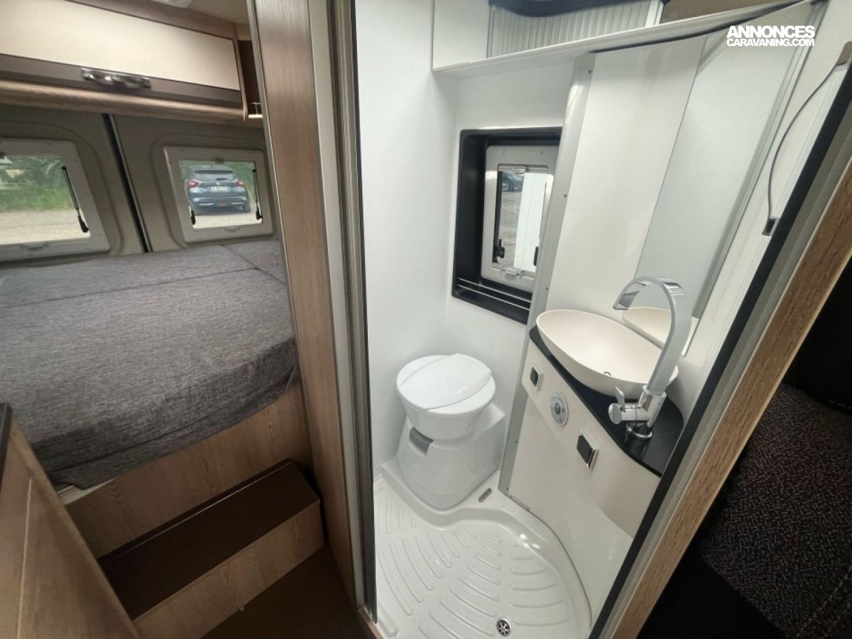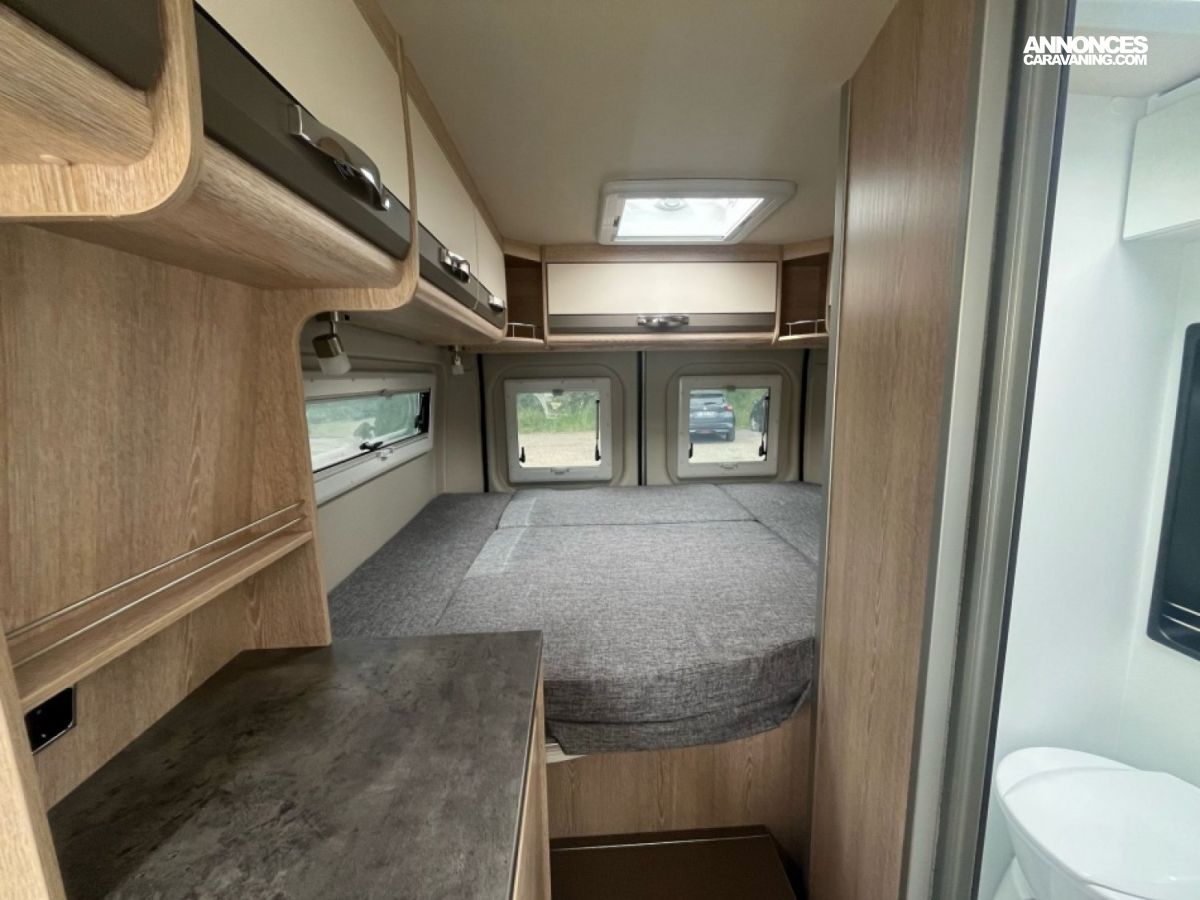 Fourgon de la gamme "PLUS" avec ses options offertes et ses nombreux avantages comme sa salle de bain spacieuse grâce son système vario et son lit XXL