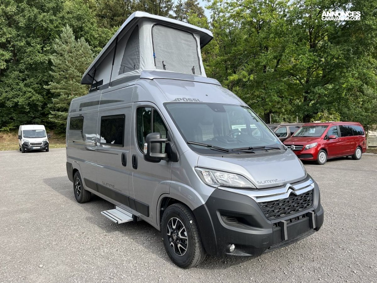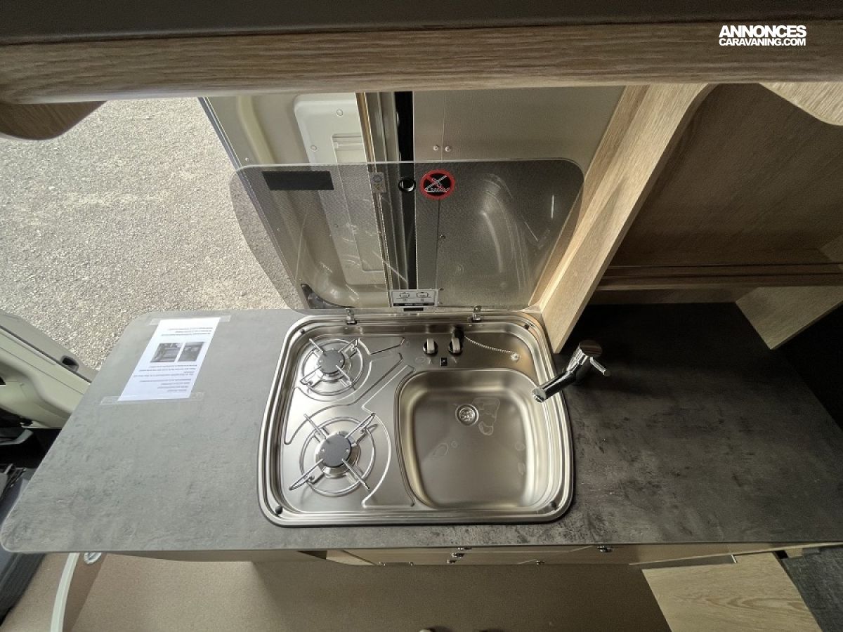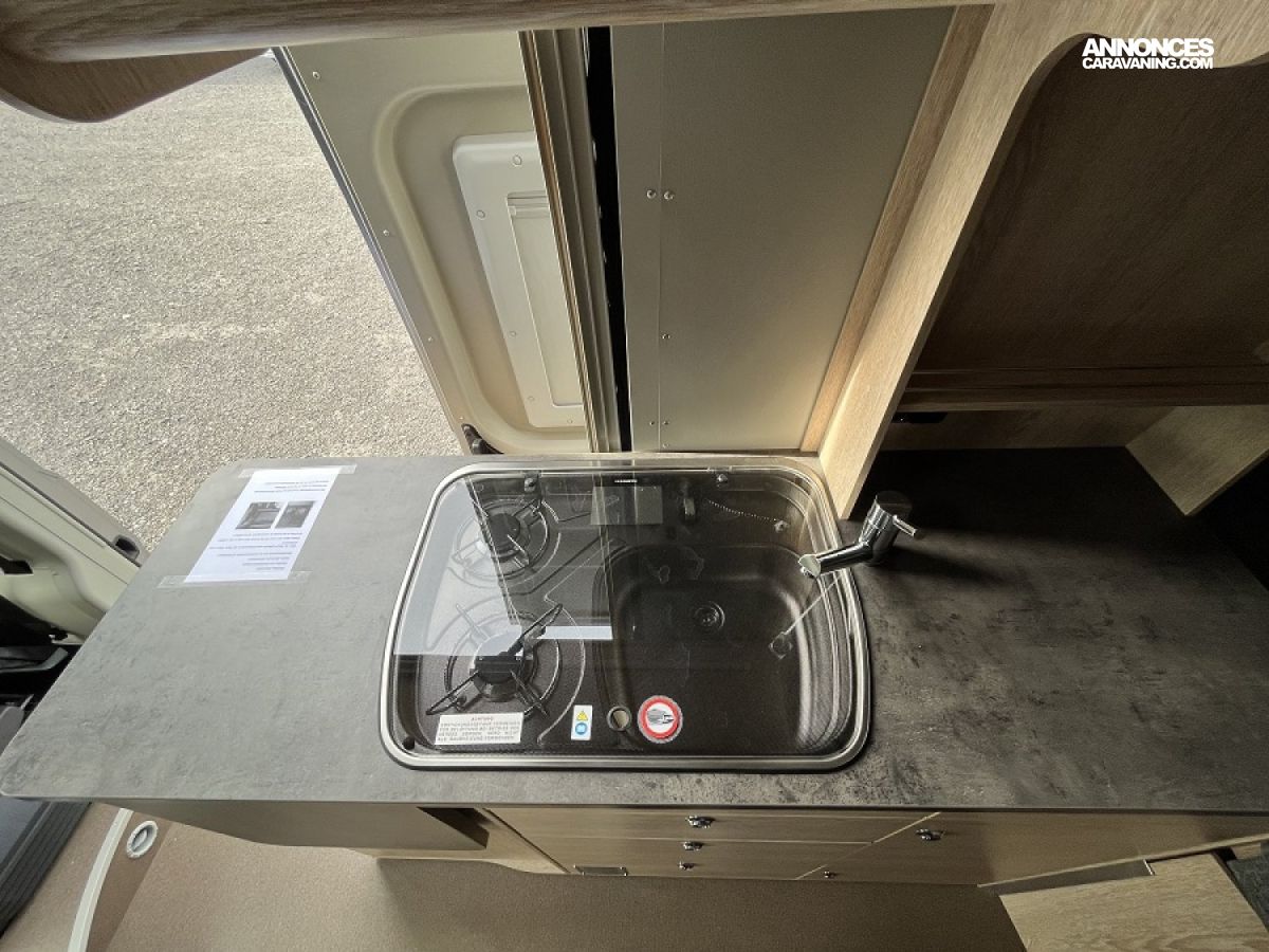 Fourgon de la gamme "PLUS" avec ses options offertes et ses nombreux avantages comme sa cuisine fonctionnelle et sa douche vario spécifique summit.