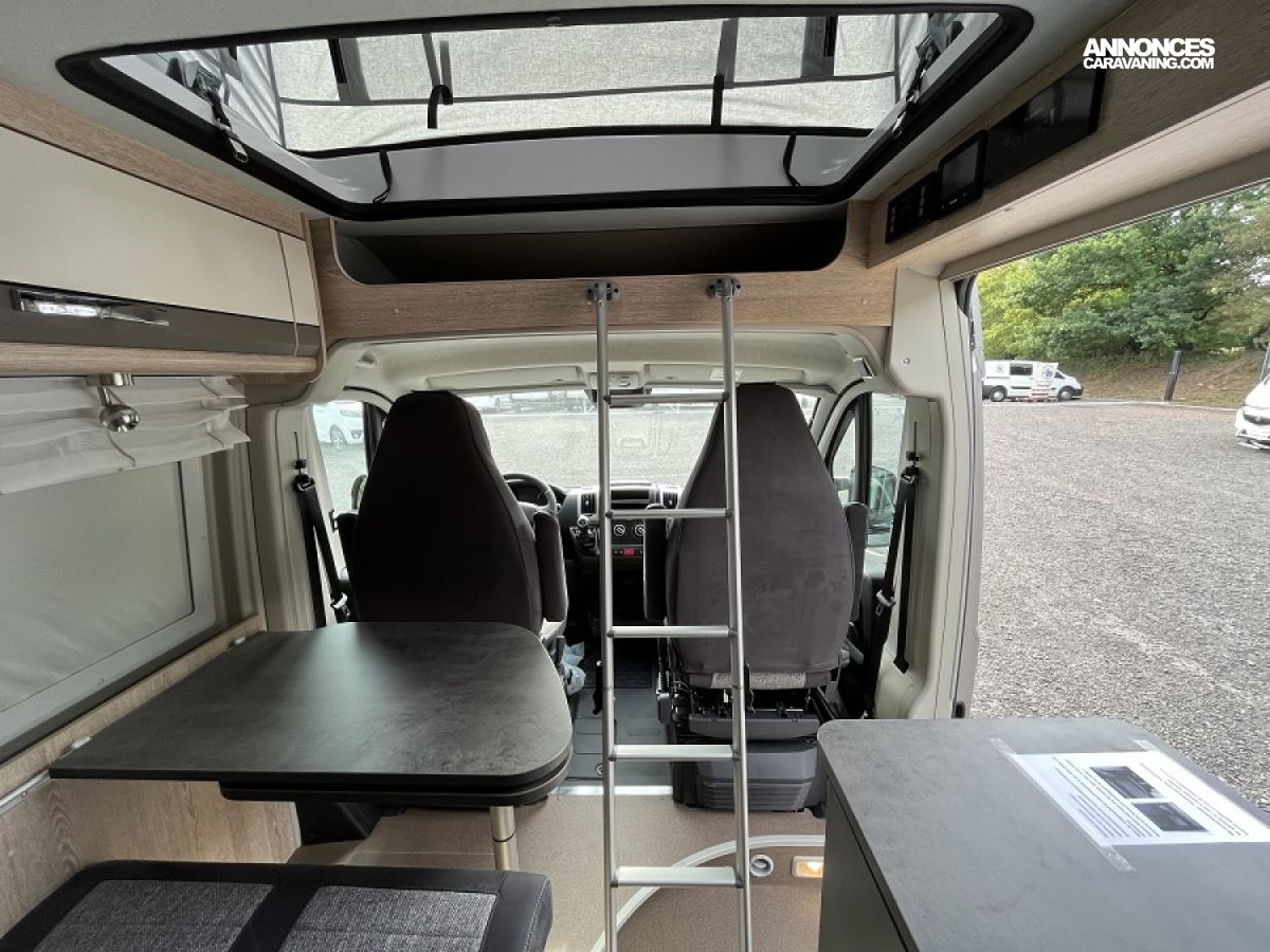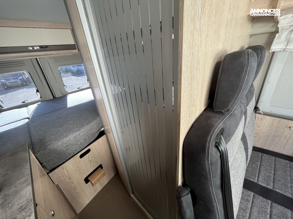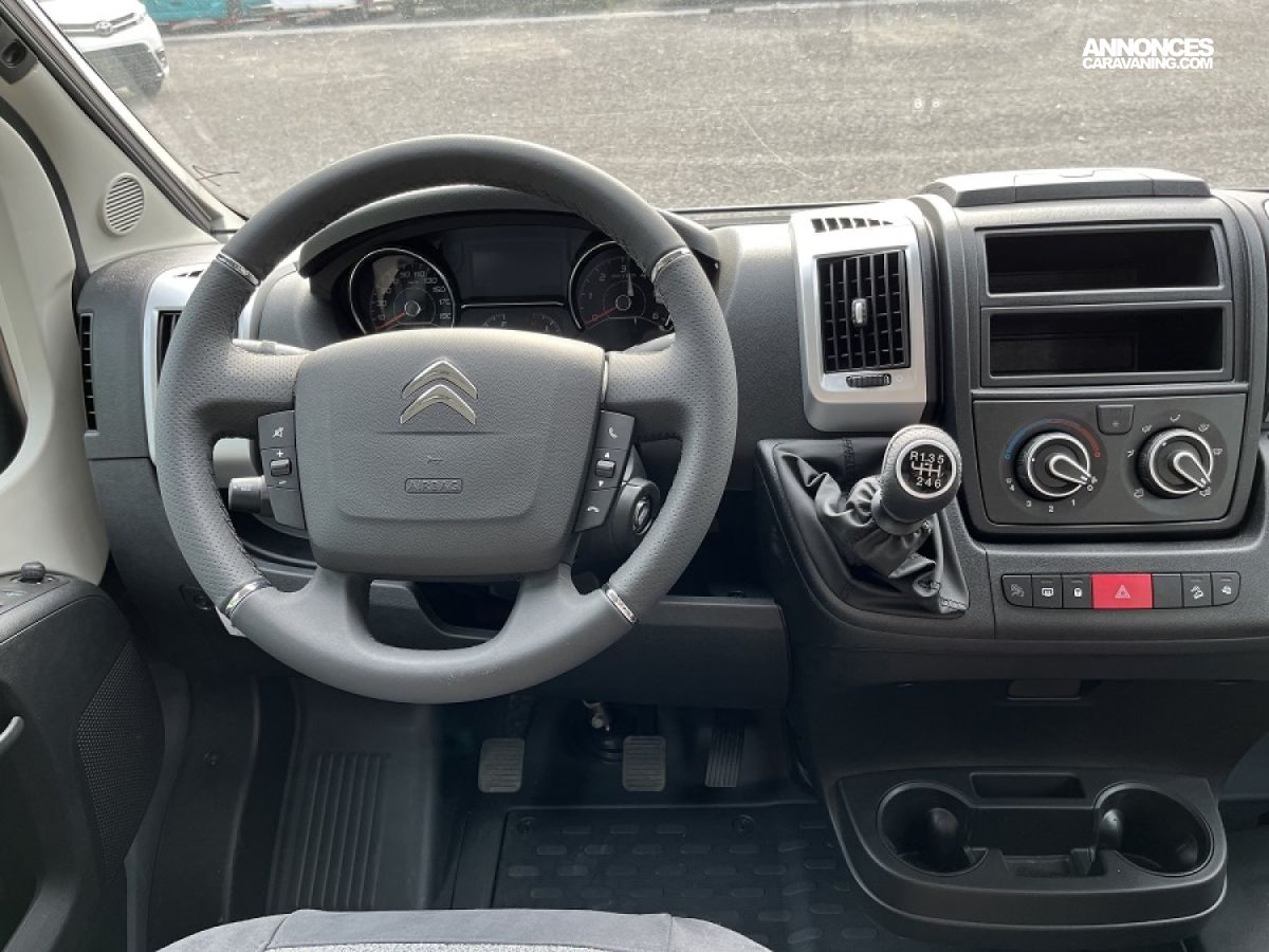 Supplément 3,5 t Light, Jantes aluminium 15" Light, Réservoir diesel 90 l, Rétroviseurs extérieurs réglables et dégivrants électriquement , Sièges Captain Chair pivotants , Antenne DAB dans le rétroviseur extérieur, Prise USB, Commandes au volant, Porte-gobelets et support smartphone et tablette, Tableau de bord avec finition aluminium, Pré-équipement radio avec haut-parleurs et antenne DAB, Roue de secours, Occultants de cabine (pare-brise et latéraux), Booster de batterie cellule, Seconde clé avec télécommande (sur châssis Citroën à partir du printemps 2022), Climatisation manuelle, Feux de jour à LED, Alternateur renforcé 220 Ah, Compteurs chromé, Allumage automatique des feux et des essuie-glaces, Feux antibrouillards, Volant cuir, Airbag passager, Régulateur de vitesse, Capteurs de pression des pneus, Tissu de siège original Captain Chair, Marchepied Omnistep Slide Out