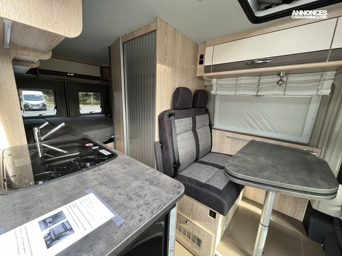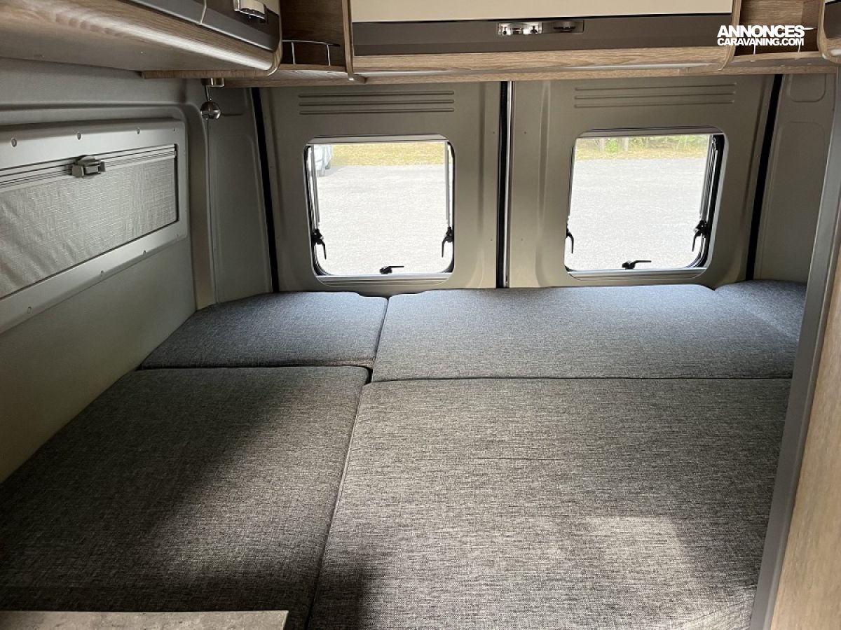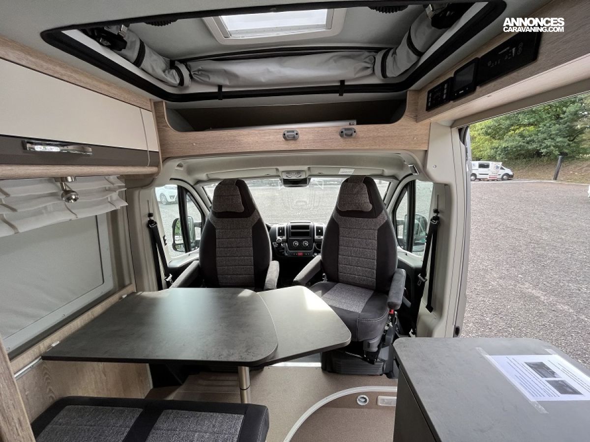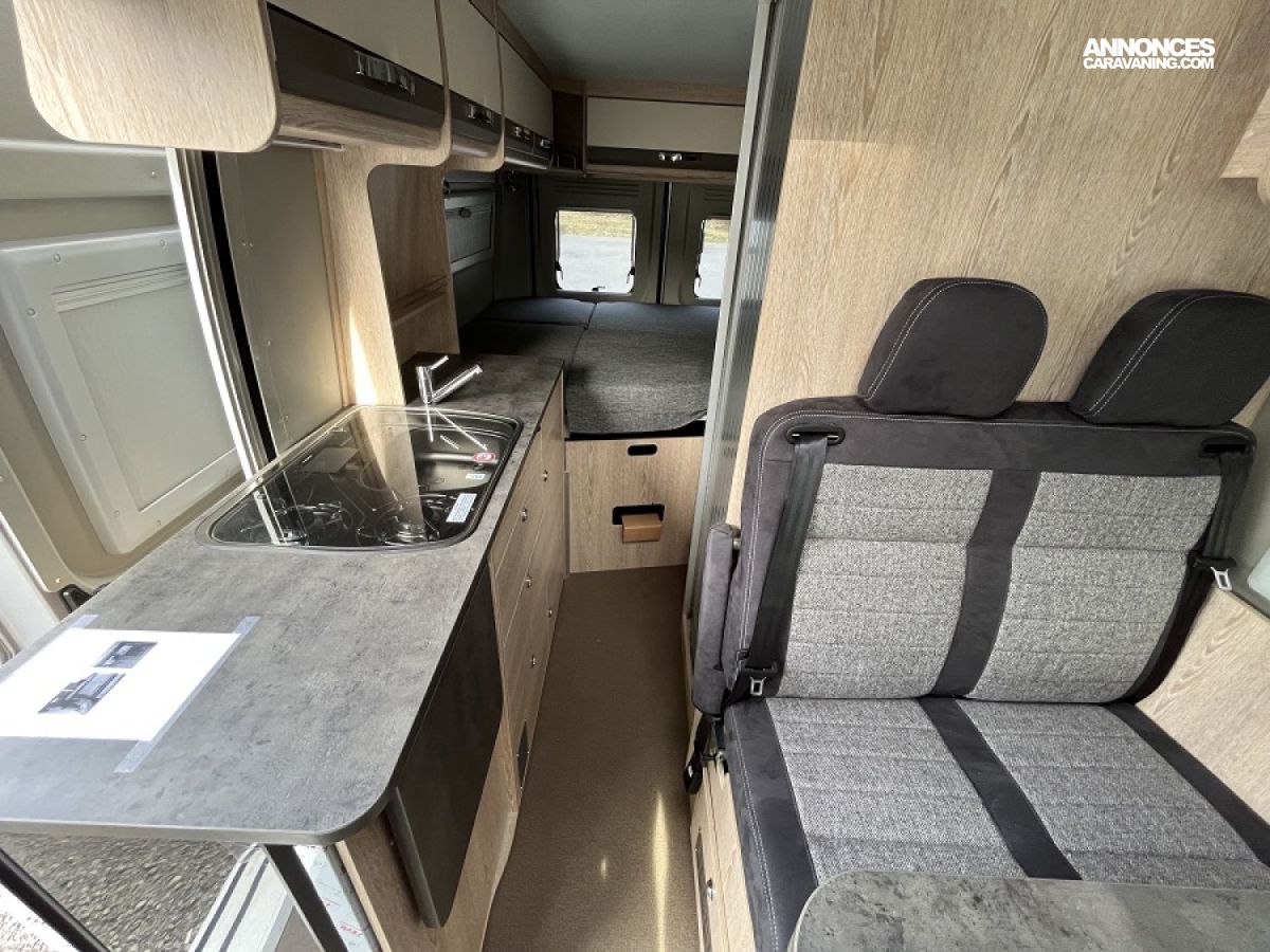 Supplément 3,5 t Light, Jantes aluminium 15" Light, Réservoir diesel 90 l, Rétroviseurs extérieurs réglables et dégivrants électriquement , Sièges Captain Chair pivotants , Antenne DAB dans le rétroviseur extérieur, Prise USB, Commandes au volant, Porte-gobelets et support smartphone et tablette, Tableau de bord avec finition aluminium, Pré-équipement radio avec haut-parleurs et antenne DAB, Roue de secours, Occultants de cabine (pare-brise et latéraux), Booster de batterie cellule, Seconde clé avec télécommande (sur châssis Citroën à partir du printemps 2022), Climatisation manuelle, Feux de jour à LED, Alternateur renforcé 220 Ah, Compteurs chromé, Allumage automatique des feux et des essuie-glaces, Feux antibrouillards, Volant cuir, Airbag passager, Régulateur de vitesse, Capteurs de pression des pneus, Tissu de siège original Captain Chair, Marchepied Omnistep Slide Out