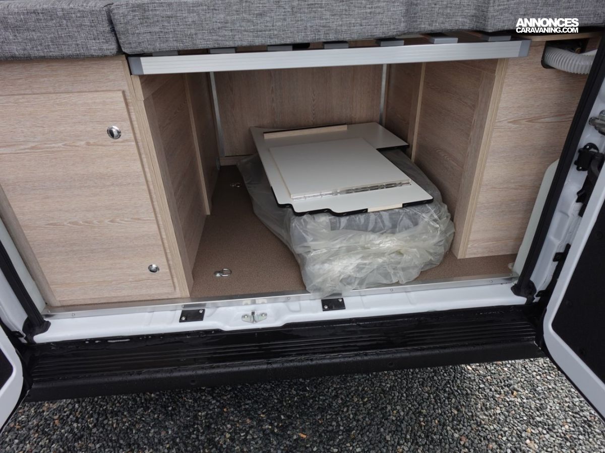 Trappe de rangement dans le plancher au niveau de la dinette