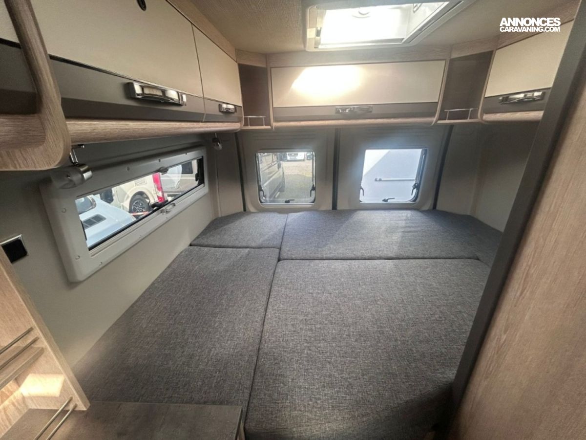 Accessoires : version Plus / Store / Panneau solaire 120w / Autoradio / Radars de recul / Régulateur de vitesse / Moustiquaire de porte / Soflock / Jantes alu 16'' / Pack hiver (eau grise chauffé + rideaux isolant arrière) / Gaz duo control / Truma inet X / Alarme gaz