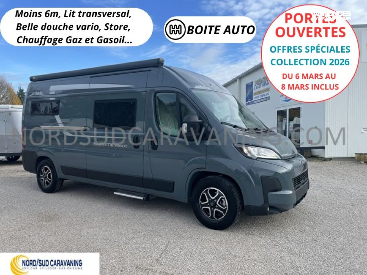 Nouveauté 2026 magnifique Fourgon PÖSSL SUMMIT SHINE 600 Boîte Auto, Compact, 5.99m, Lit transversal, Caméra de recul, Marche pied électrique…