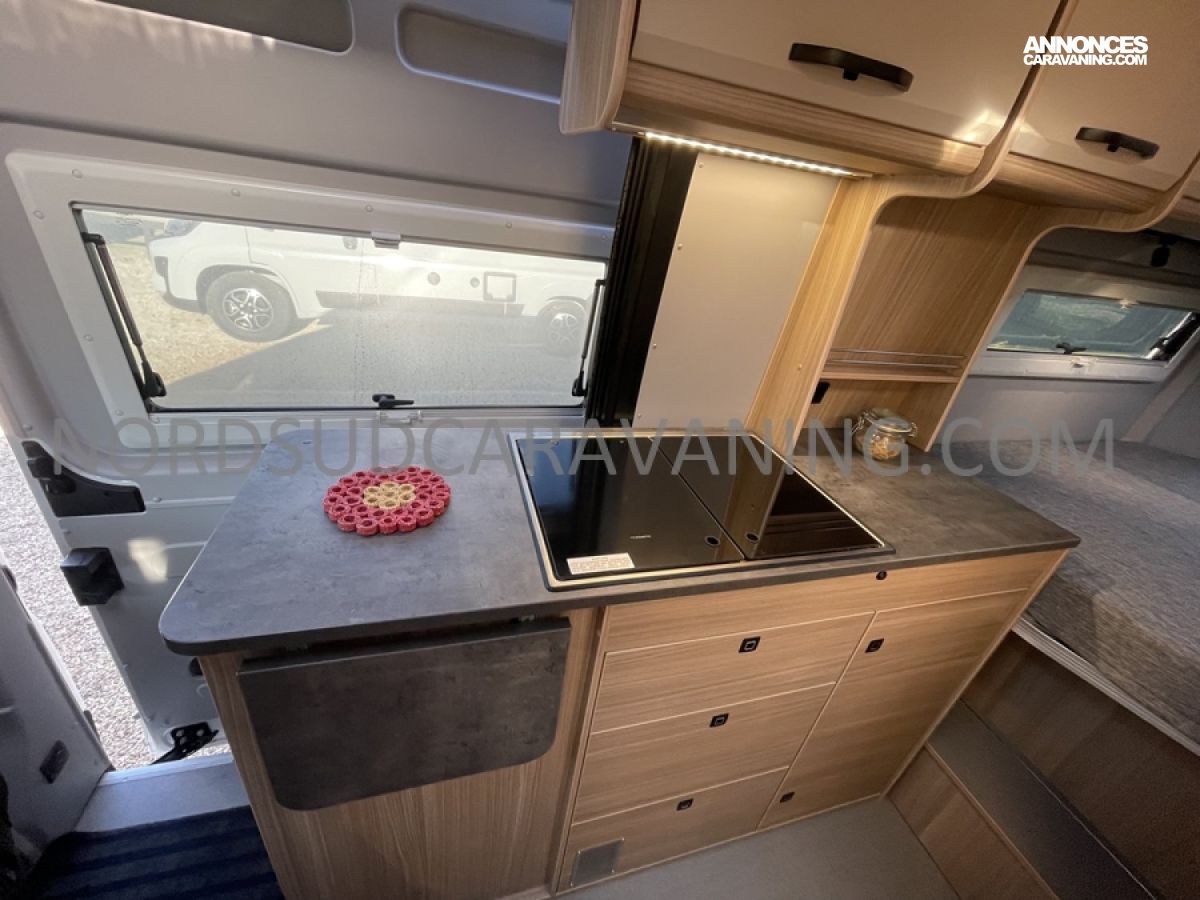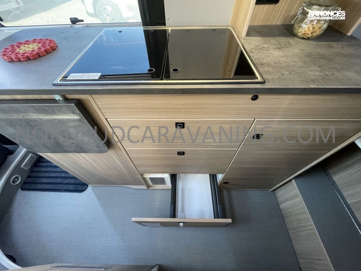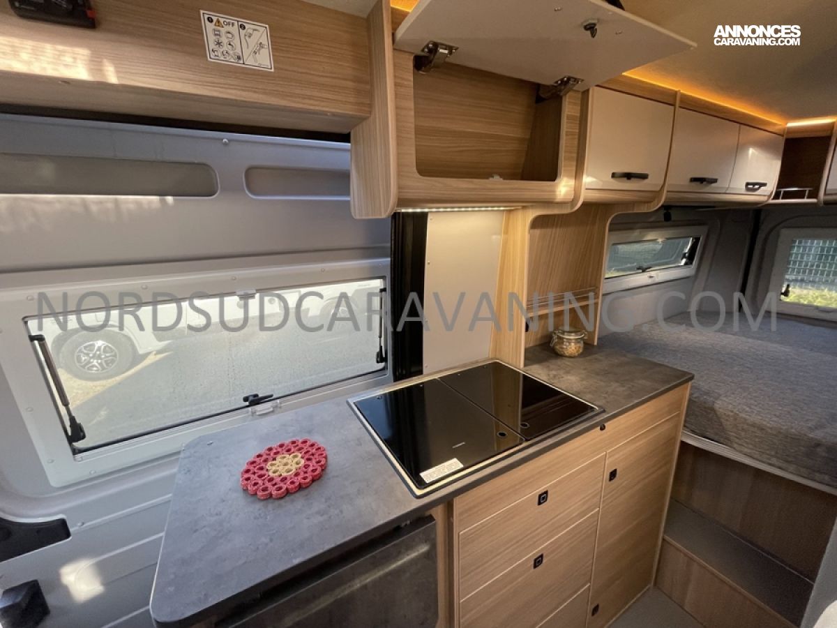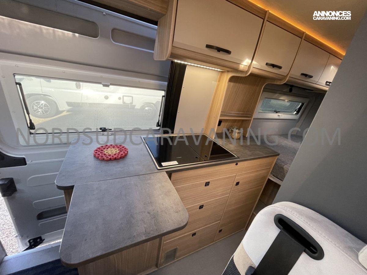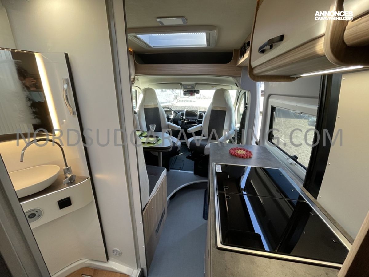 Alliant confort, innovation et design, ce modèle est parfait pour vos escapades. Imaginez partir à l’aventure avec tout le confort de chez vous : dinette agréable et lumineuse, cuisine équipée pratique et fonctionnelle, salle de bain moderne avec douche spacieuse, lit transversal confortable et nombreux rangements astucieux. Il est conçu pour ceux qui rêvent de liberté sans compromis sur le confort. Profitez de ses équipements haut de gamme et de ses finitions soignées pour vivre des moments inoubliables sur la route.