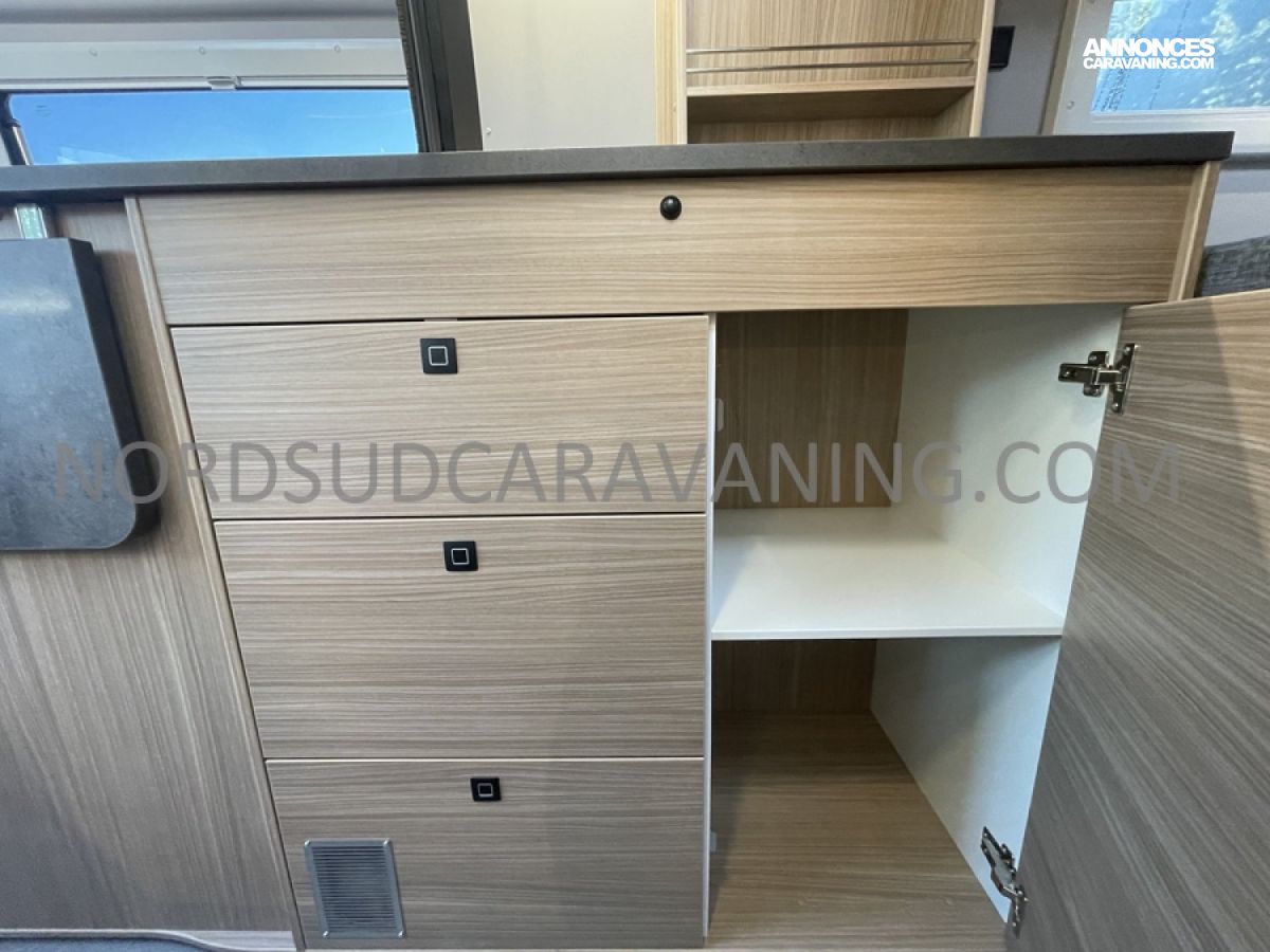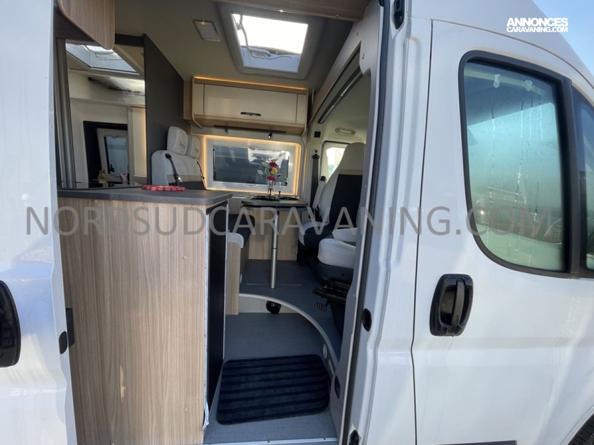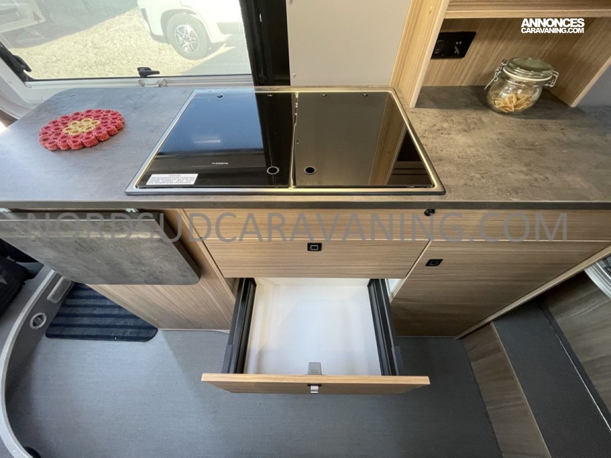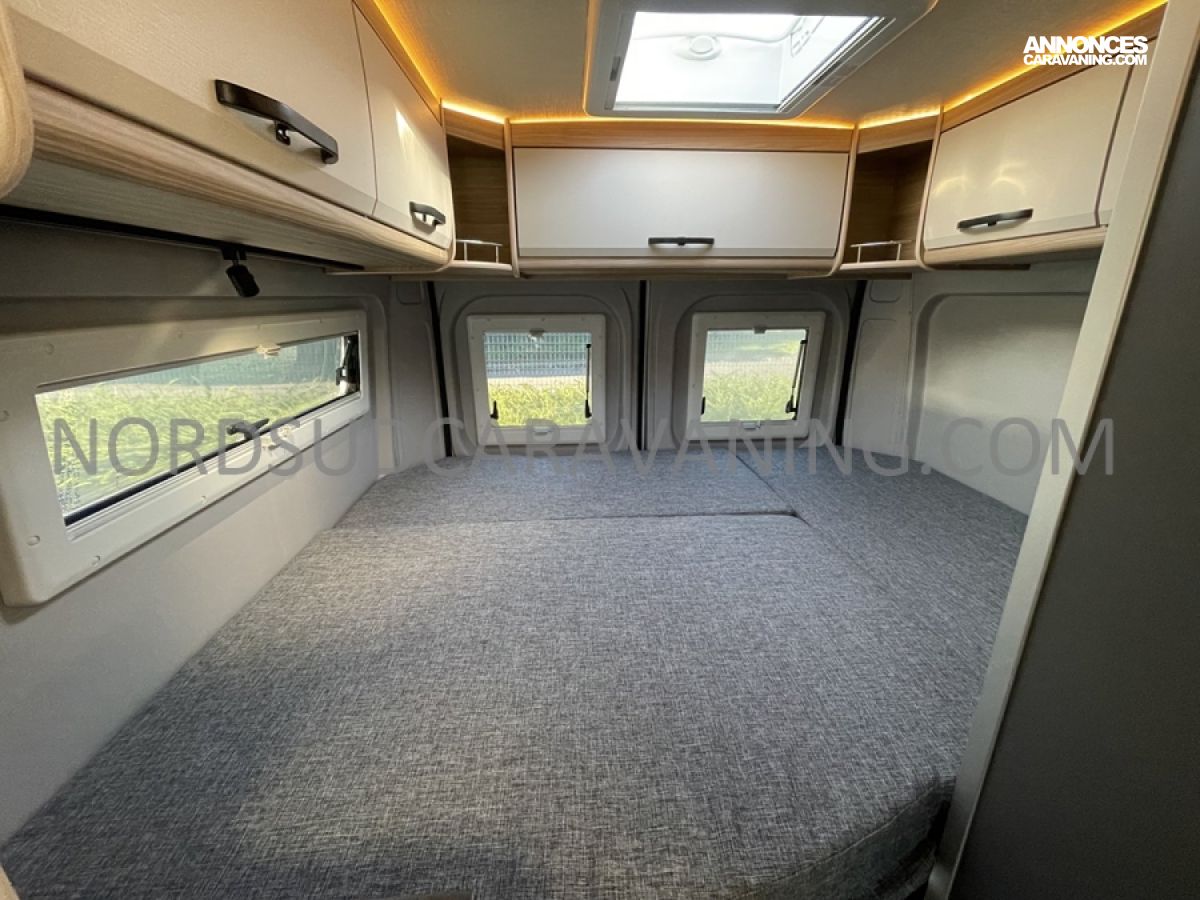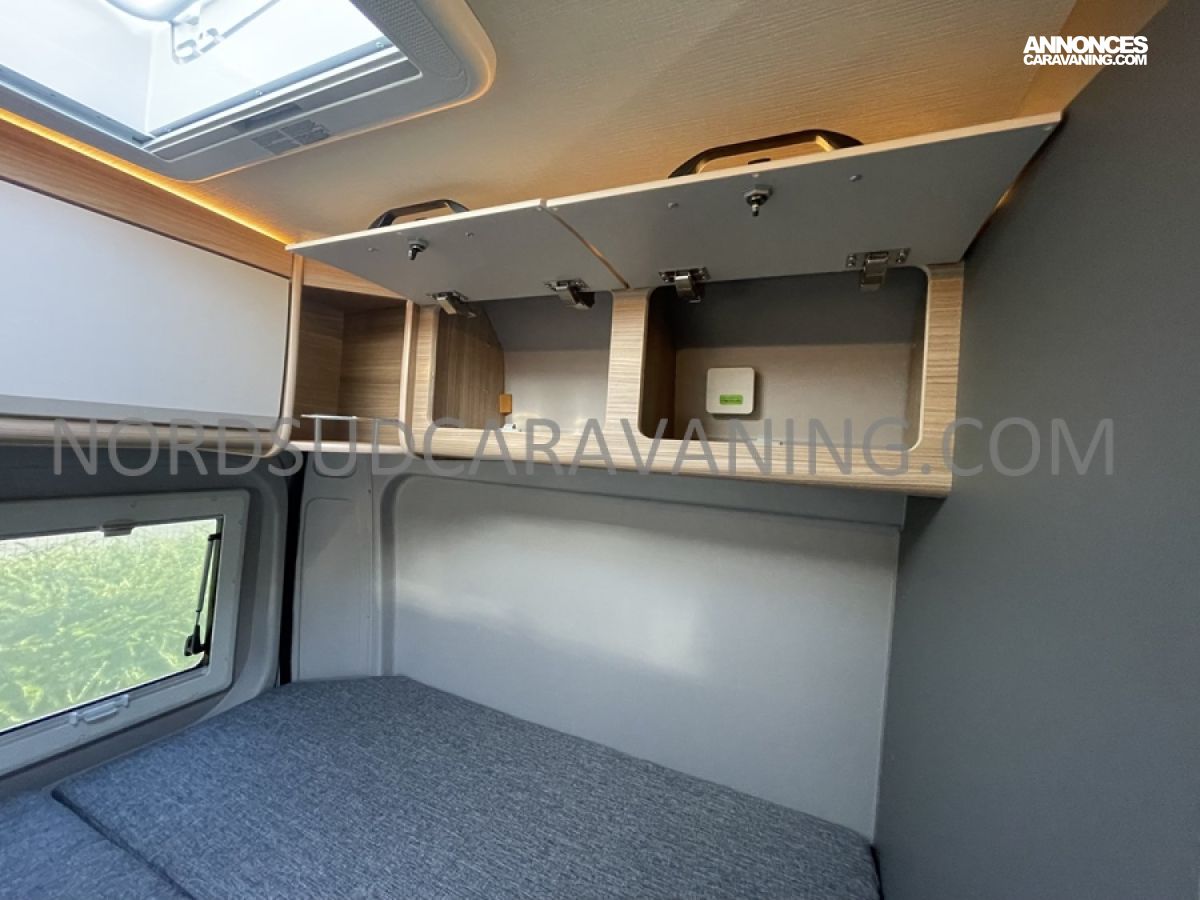 Alliant confort, innovation et design, ce modèle est parfait pour vos escapades. Imaginez partir à l’aventure avec tout le confort de chez vous : dinette agréable et lumineuse, cuisine équipée pratique et fonctionnelle, salle de bain moderne avec douche spacieuse, lit transversal confortable et nombreux rangements astucieux. Il est conçu pour ceux qui rêvent de liberté sans compromis sur le confort. Profitez de ses équipements haut de gamme et de ses finitions soignées pour vivre des moments inoubliables sur la route.