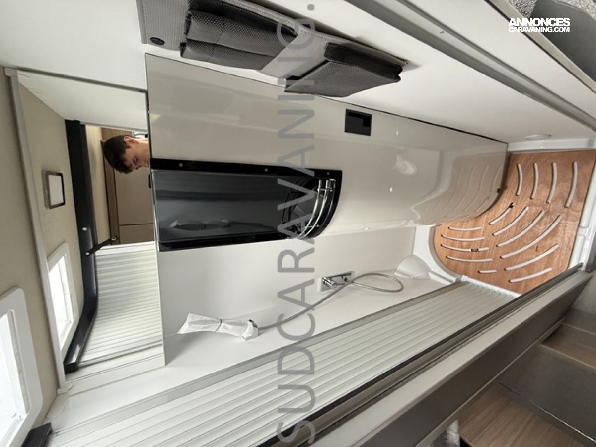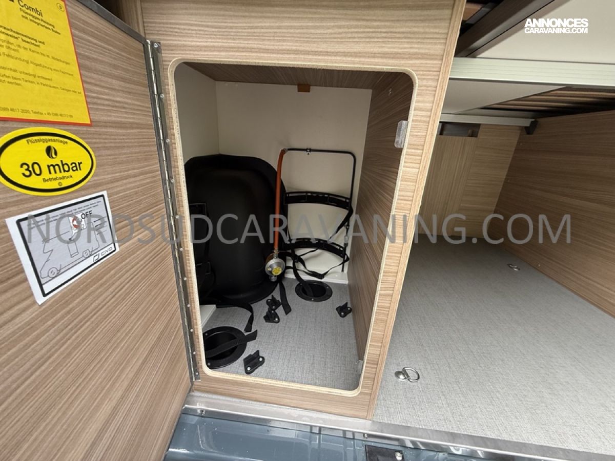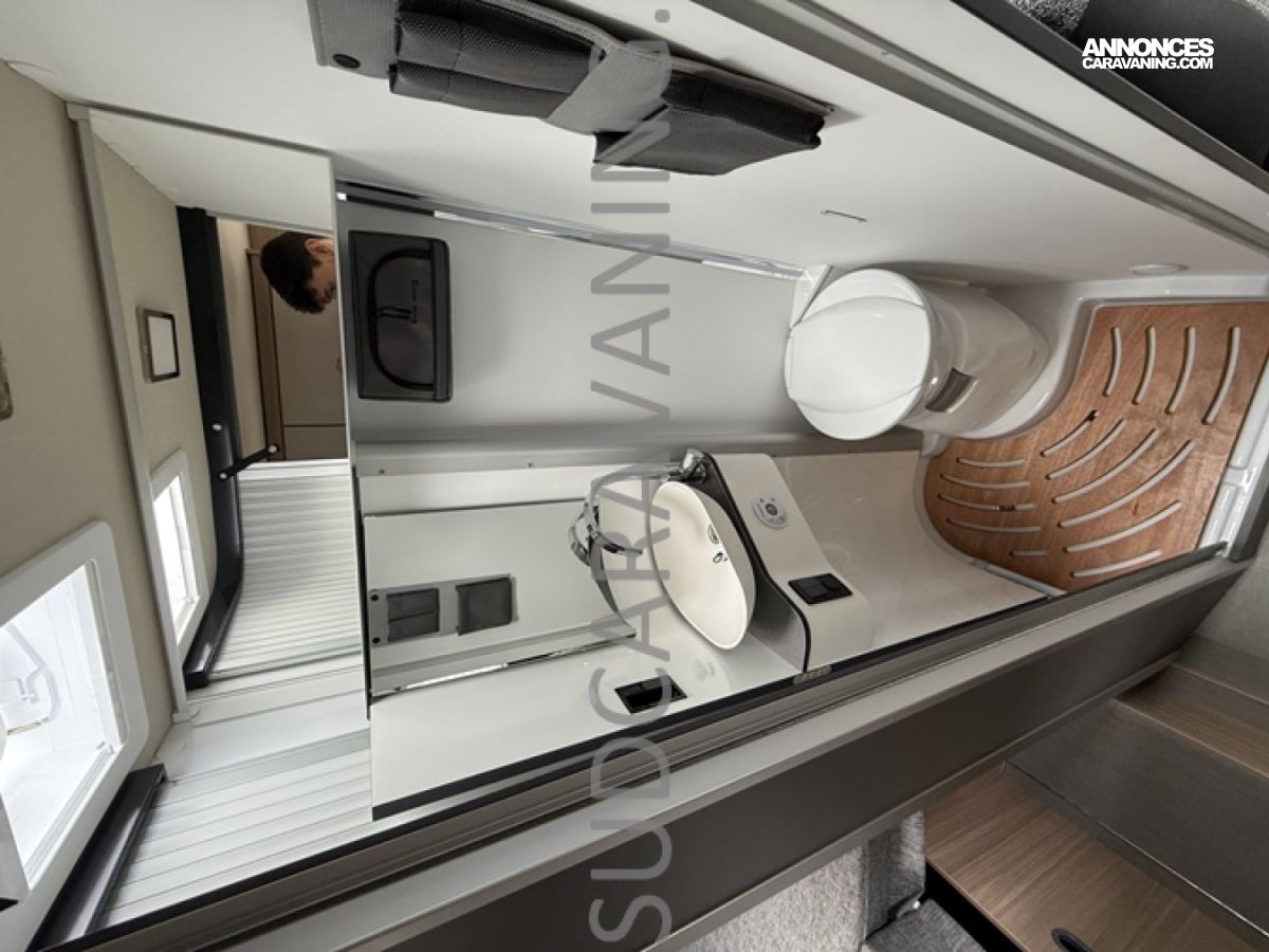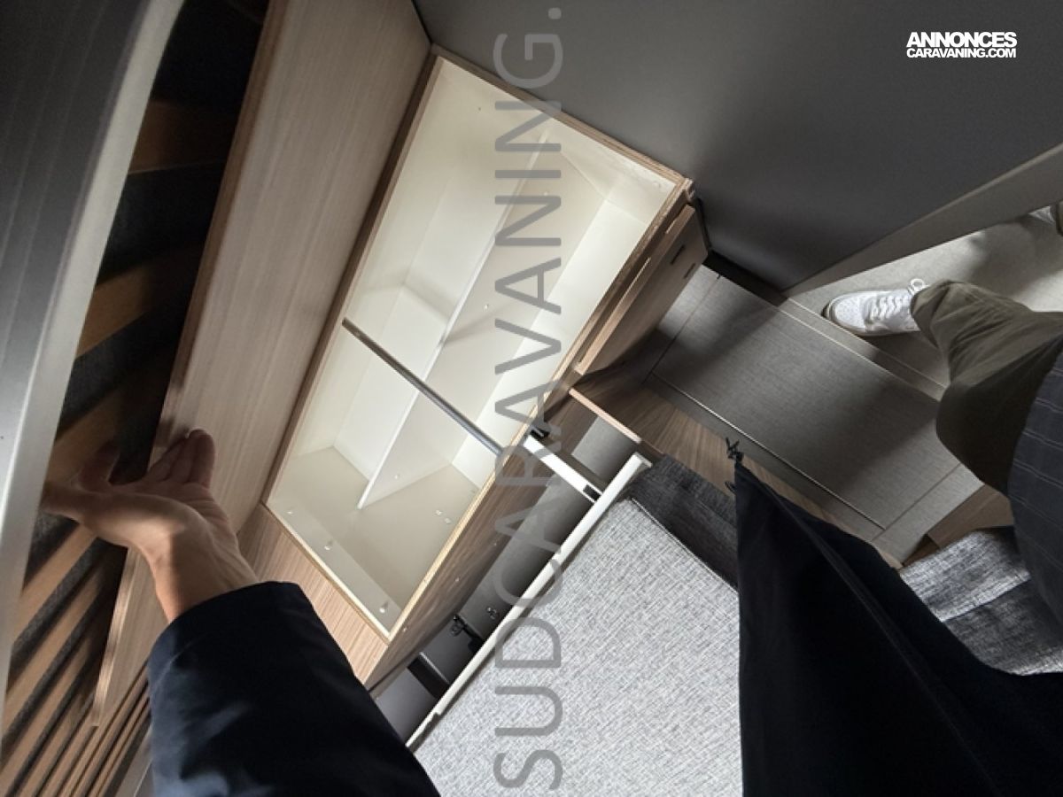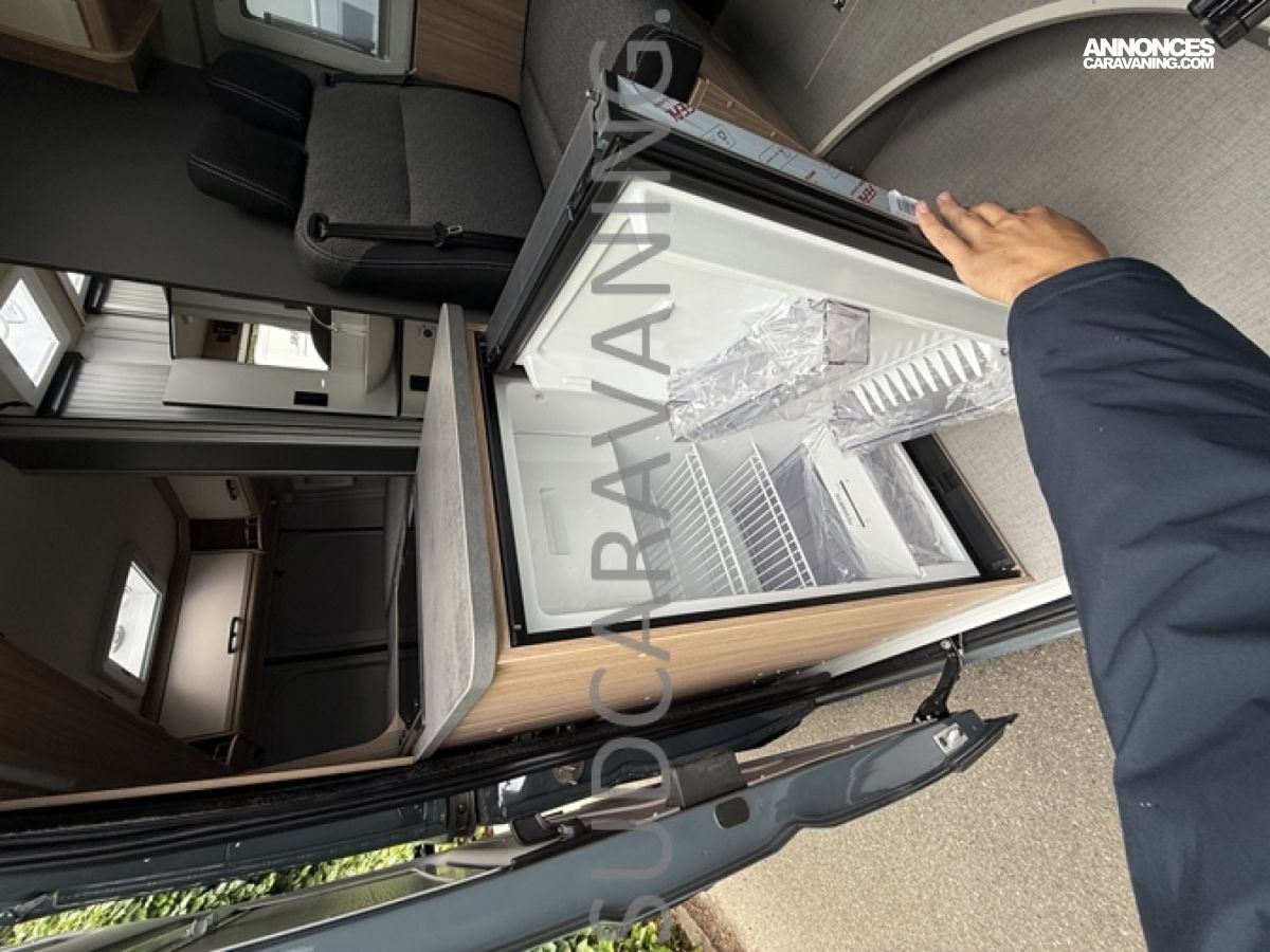 Sa dinette agréable et lumineuse pour une ambiance conviviale. Sa cuisine latérale, pratique et fonctionnelle est équipée d’un réchaud 2 feux, évier et plan de travail rabattable. En face, une salle d'eau avec WC, lavabo, et une douche spacieuse. A l’arrière, ce sont de lits jumeaux, pour plus d’espace. Sans oublier ses nombreux rangements astucieux !